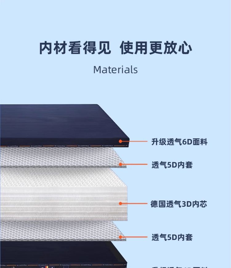 Толщина 6 см: 3D-шелк толщиной 4 см + съемная и моющаяся внутренняя куртка.; Толщина 8 см: 3D-шелк 6 см + съемная и моющаяся внутренняя куртка.; Толщина 14 см: 3D-шелк 12 см + съемная и моющаяся внутренняя куртка.; Толщина 16 см: 3D-шелк 14 см + съемная и моющаяся внутренняя куртка.; Толщина 18 см: 3D-шелк 16 см + съемная и моющаяся внутренняя куртка.; Толщина 22 см: 3D-шелк 20 см + съемная и моющаяся внутренняя куртка.; Толщина 24 см: 3D-шелк 22 см + съемная и моющаяся внутренняя куртка.