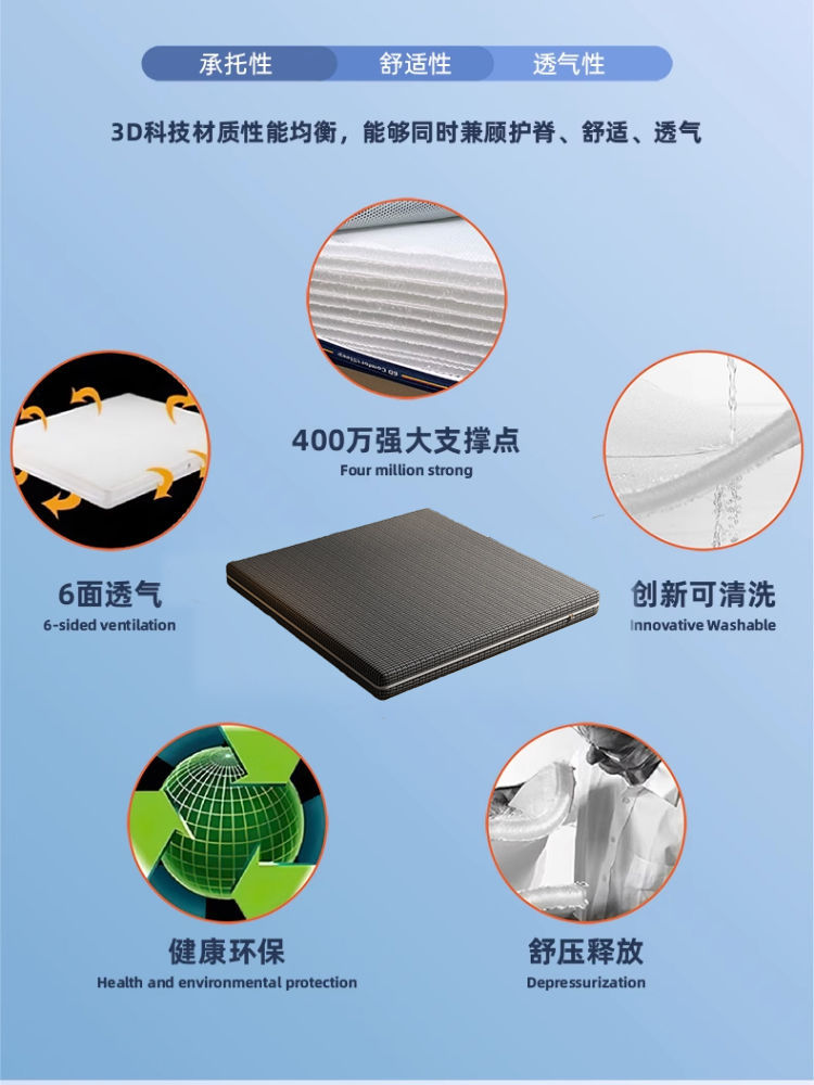 Полностью съемный матрас с внутренним сердечником из чистого 3D-шелка, воздушное волокно, защита талии и шейного отдела позвоночника, моющийся, бесшумный, внутренний и внешний двойной комплект 5D, 6D