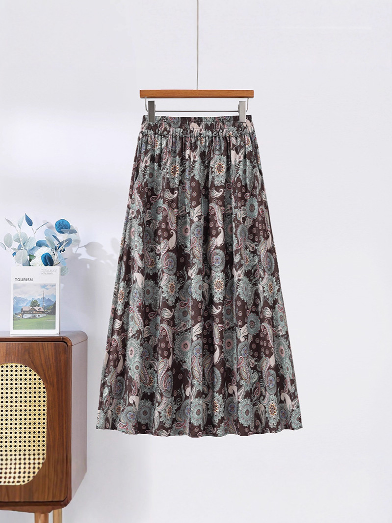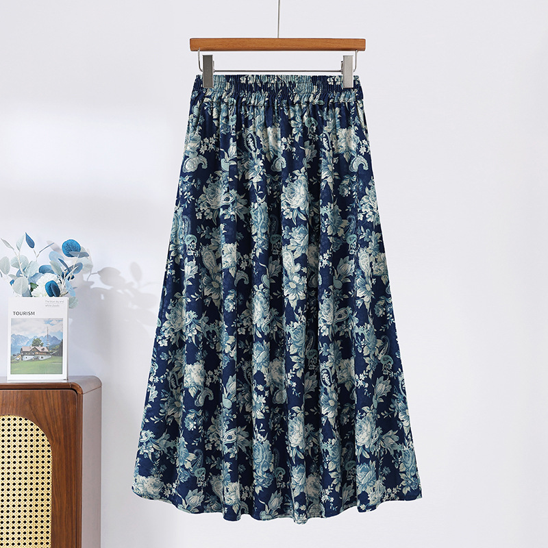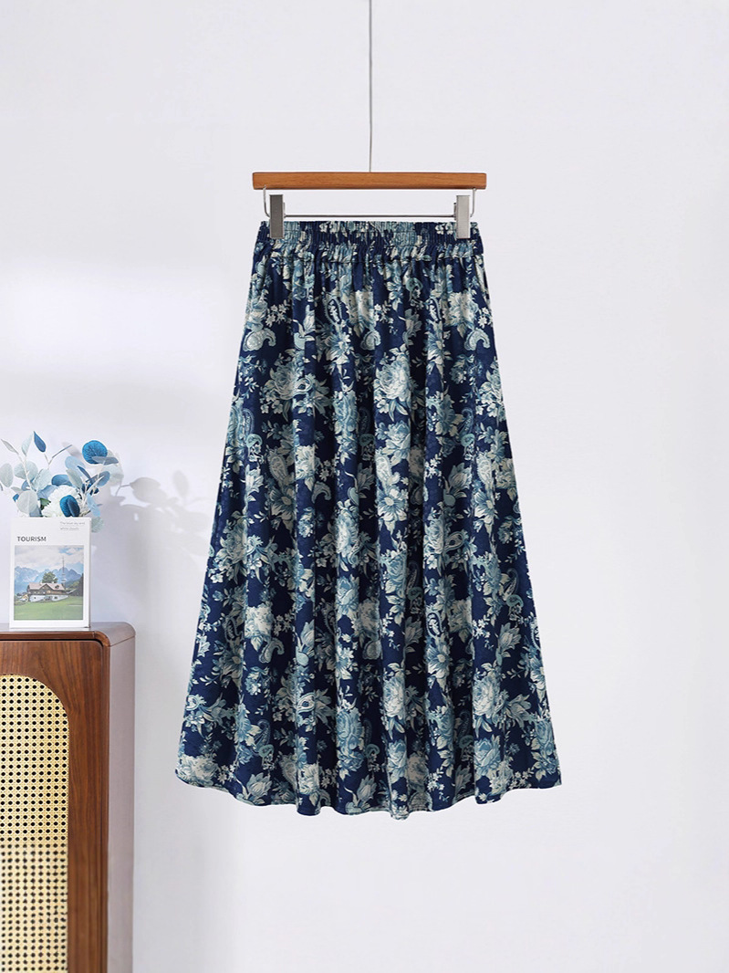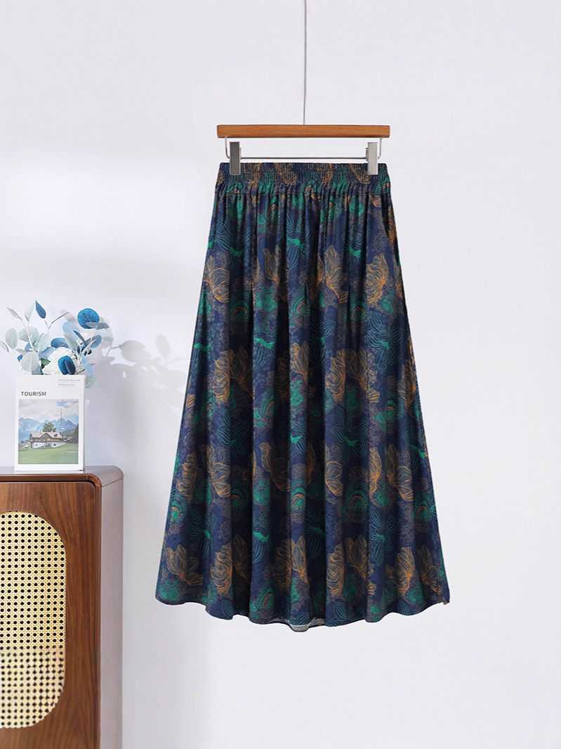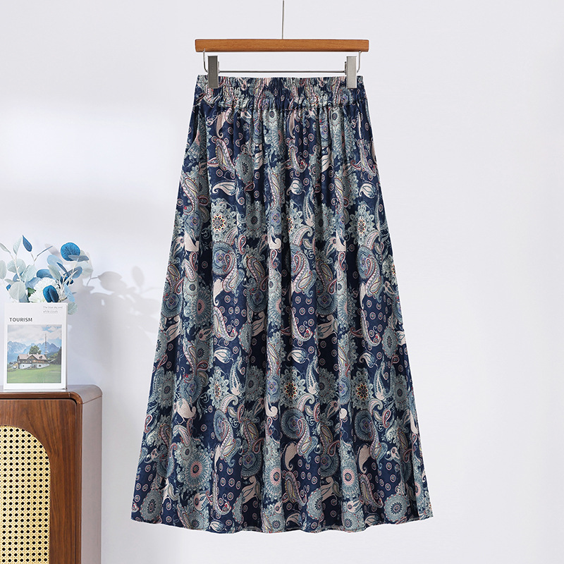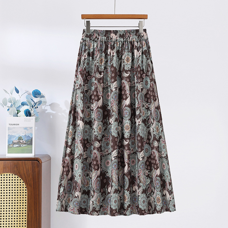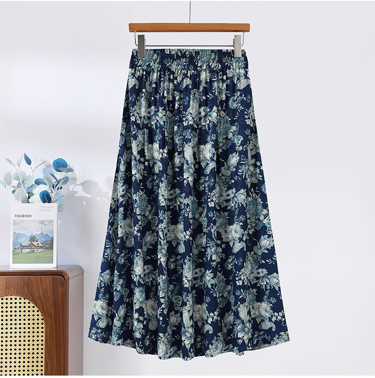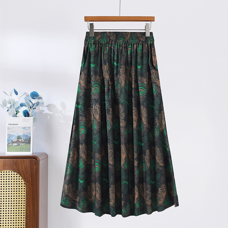 Модная летняя новая юбка с цветочным принтом для мам среднего и пожилого возраста, утягивающая тонкая юбка средней длины с высокой талией, уменьшающая возраст