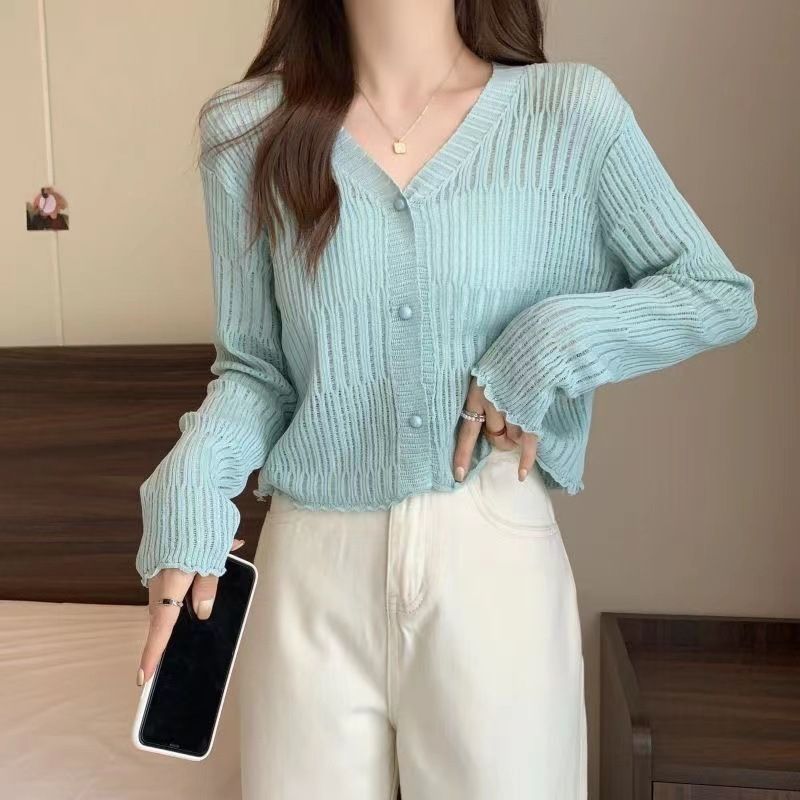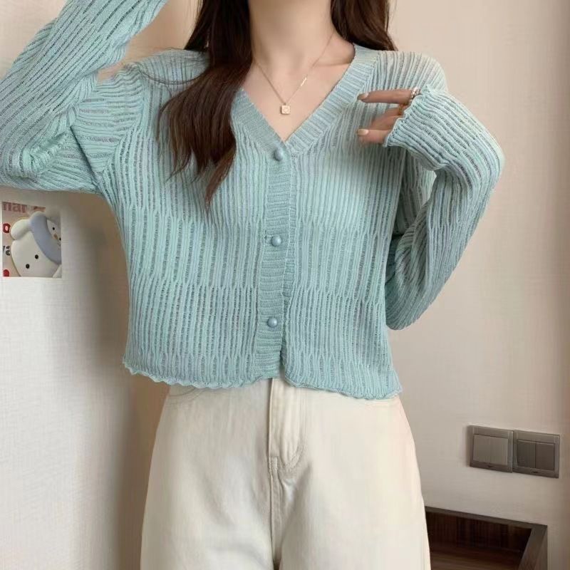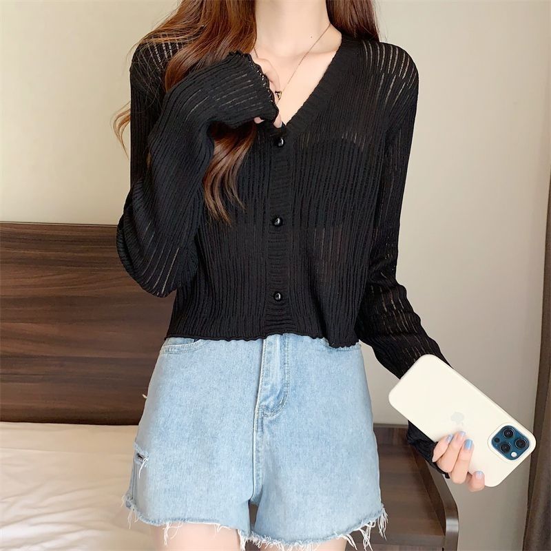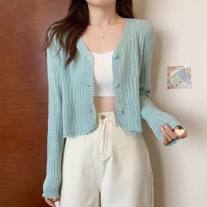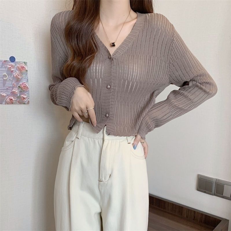 Летний кардиган из ледяного шелка с длинными рукавами, защита от солнца, женский, 2024, новинка, короткий топ, женская куртка