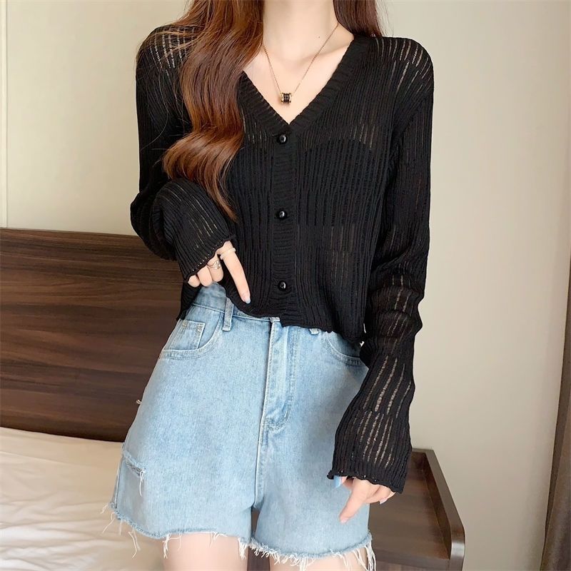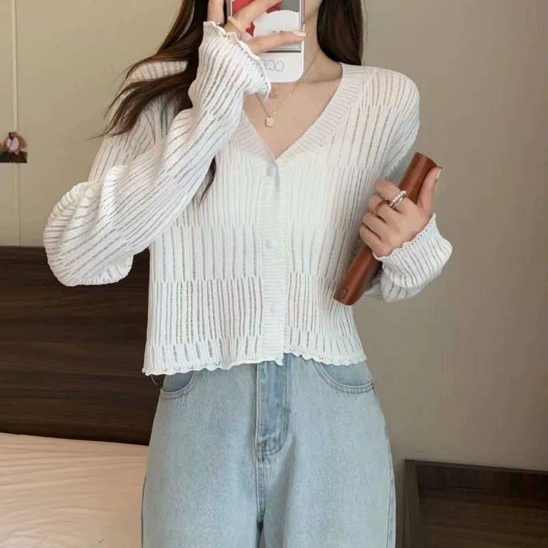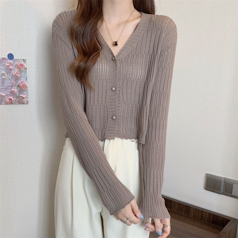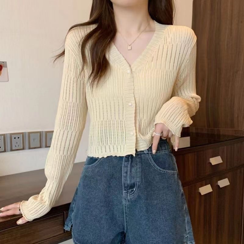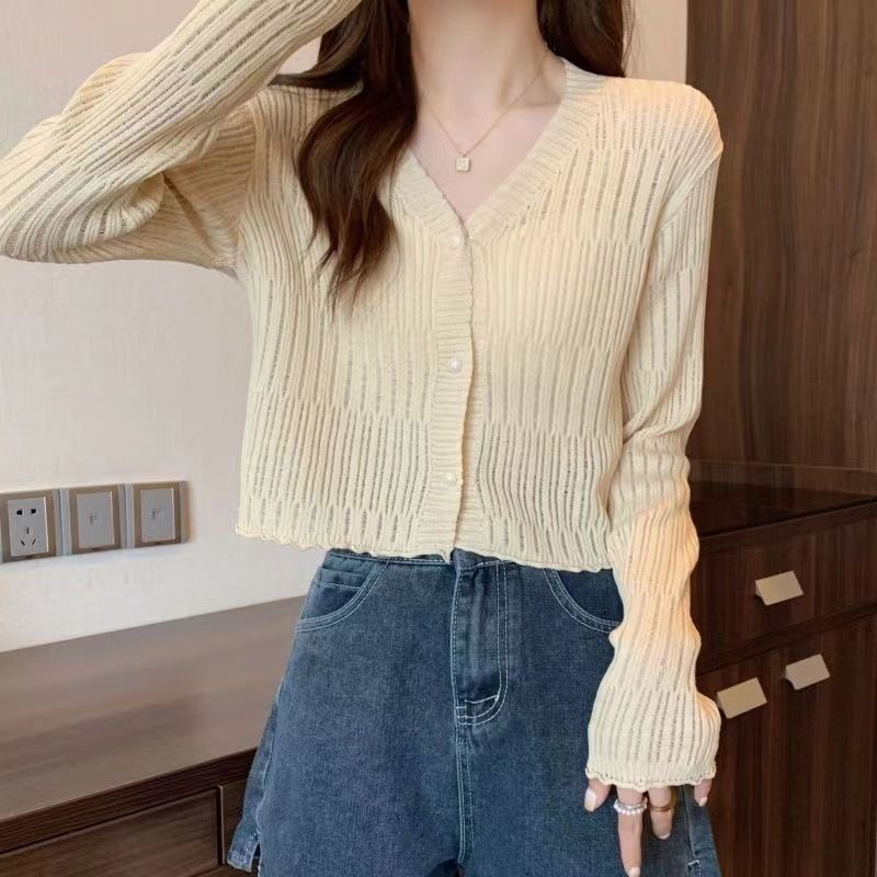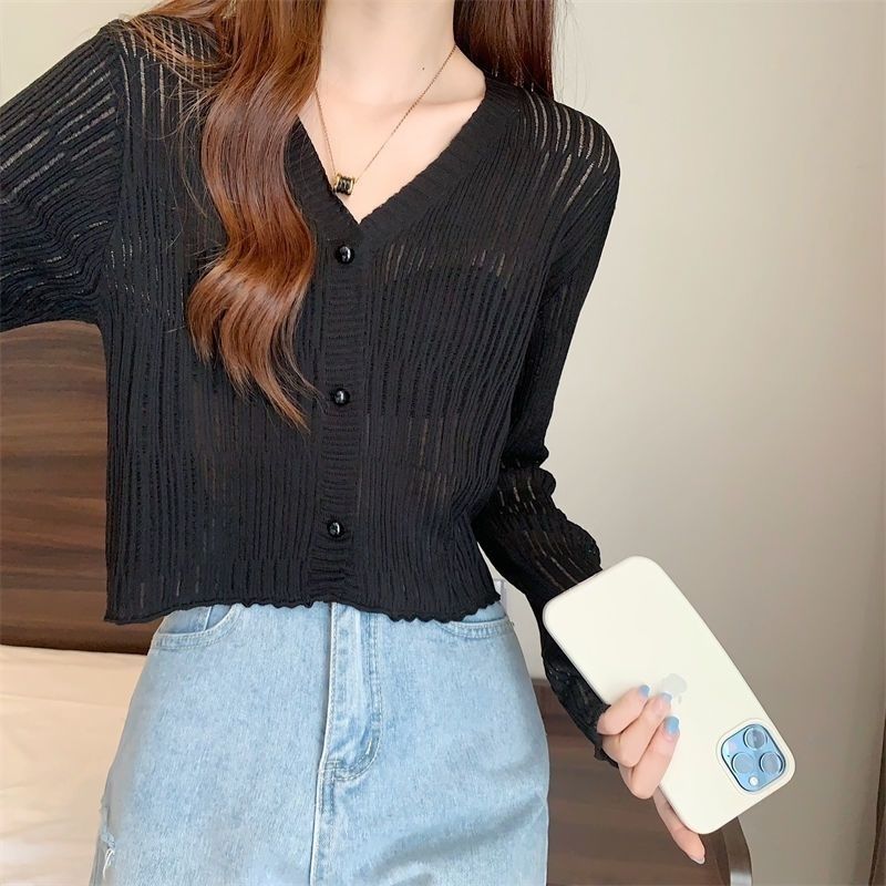 Летний кардиган из ледяного шелка с длинными рукавами, защита от солнца, женский, 2024, новинка, короткий топ, женская куртка