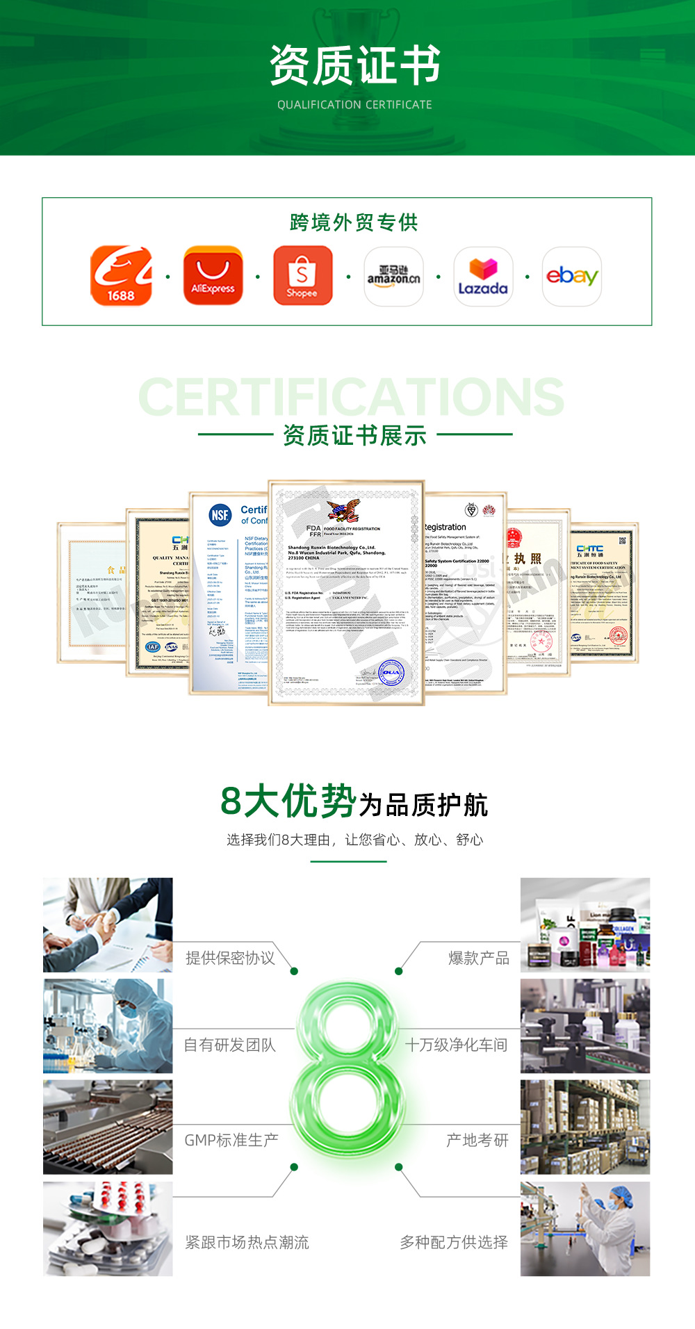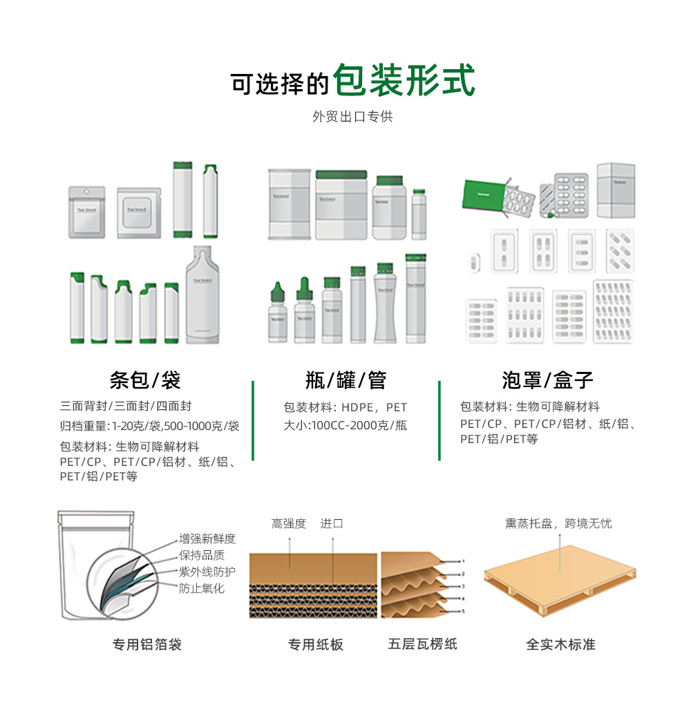 капсулы из морских водорослей; Капсулы растительного комплекса; Капсулы индийского женьшеня; Капсулы ашваганда; капсулы биотина; Капсулы с коллагеновыми пептидами; Капсулы глутатиона; над капсула; nr капсула; витаминные капсулы; Капсулы витаминов комплекса B; Многомерная капсула-мужчина; Многомерная капсула-женщина; Многомерные капсулы-дети; Капсулы мумие; капсулы мелатонина; Комбинированные магниевые капсулы; капсулы для сна; капсулы 5HTP; Капсулы листьев гинкго; Капсулы с ликопином; Капсулы с лutein и зеаксантином черники; Капсулы наттокиназы; кетогенные капсулы; Капсулы для плодородия-мужчины; Капсулы для плодородия-женские; Капсула ББЛ; капсулы для бедра; чистящие капсулы; DETOX капсулы для печени; Женские капсулы с комплексными растительными экстрактами; Твердые капсулы маки; Цинк-магниевые капсулы; Аминокислотные капсулы; Капсулы с растительными экстрактами; Капсулы витамина С; Капсулы витамина Е; Таблетки-конфеты с гиалуроновой кислотой натрия и коллагеновыми пептидами; Таблетки с устричным пептидом; Цинк-магниевые хлопья; Таблетки йода и калия; Таблетки с лuteином и черникой; Таблетки-конфеты с кальцием из коровьего сывороточного молока; Комплексные пастилки с пептидами фруктов и овощей; Таблетки для плодородия; Таблетки Шиладжит; таблетки витамина С; Таблетки клюквы; Таблетки биотина; мультивитаминные таблетки; Составные минеральные таблетки; таблетки витамина B; Креатиновые таблетки; Электролитическая соль в таблетках; таблетки глутатиона; ломтики женьшеня; Таблетки спирулины; Таблетки с экстрактом растений; таблетки мелатонина; таблетки для сна; Составные магниевые таблетки; таблетки йода