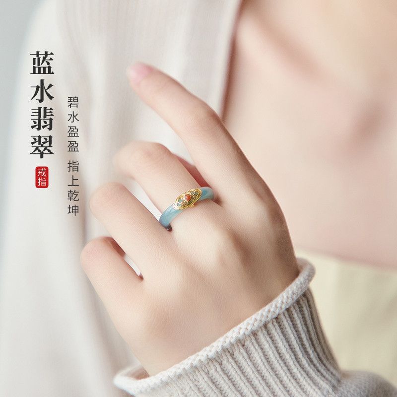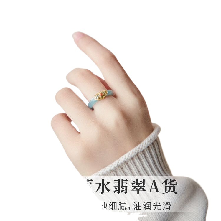 Популярное кольцо, притягивающее богатство, высококачественное женское кольцо из нефрита ледяного типа, легкое роскошное сменное кольцо, кольцо на указательный палец, нефритовое кольцо.