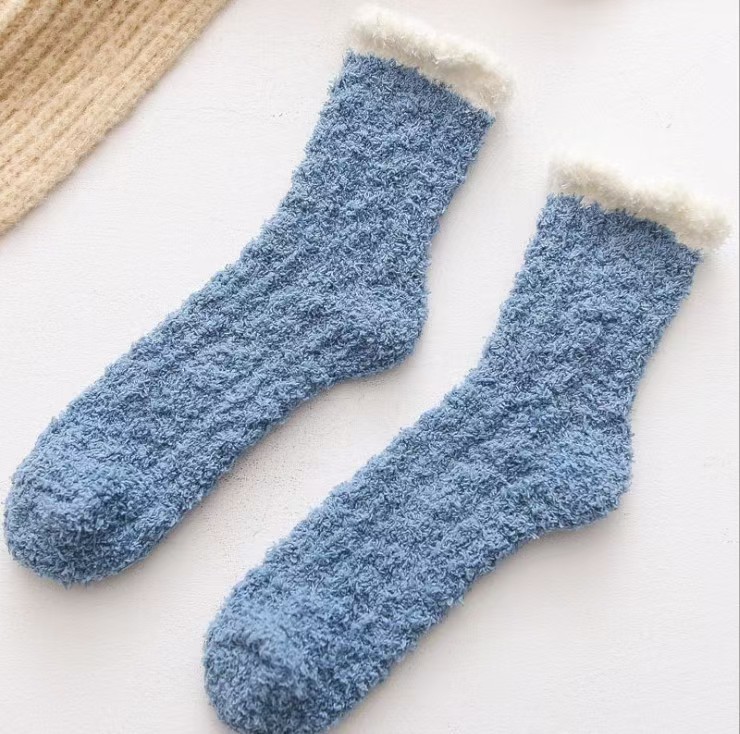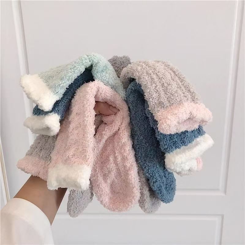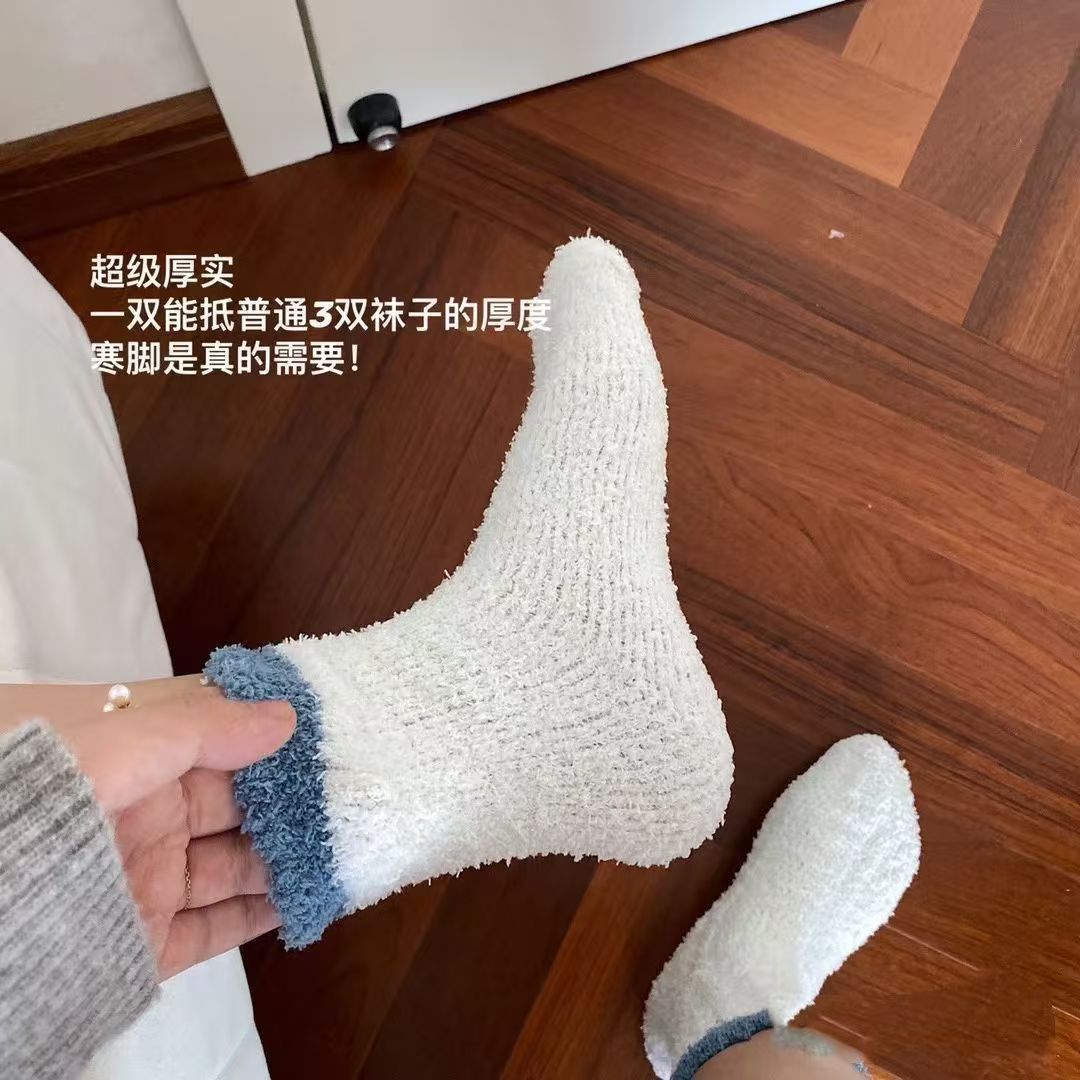 Носки из кораллового флиса для женщин, осенние и зимние утолщенные носки на флисовой подкладке, теплые домашние носки для сна на полу, пушистые носки.