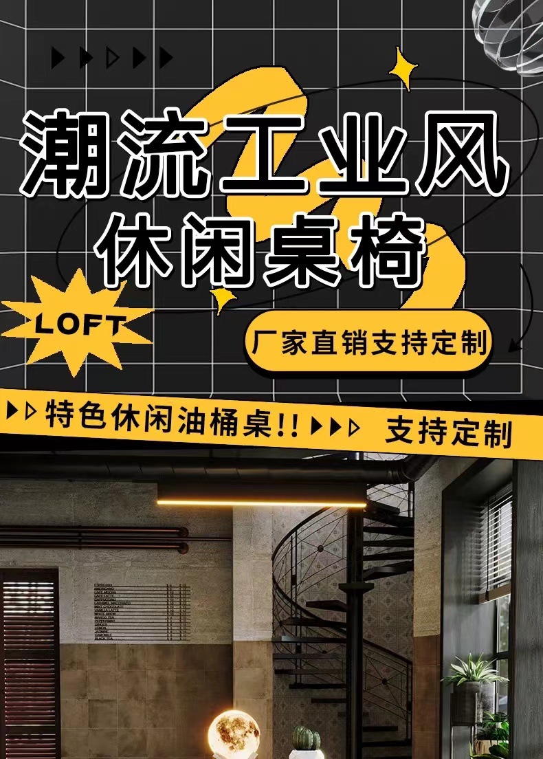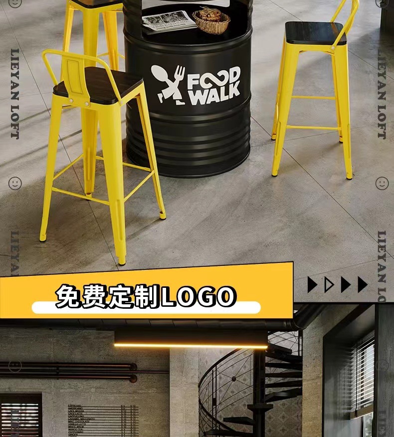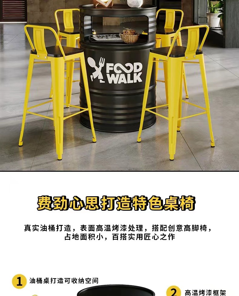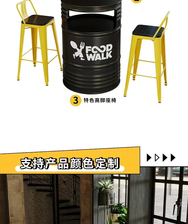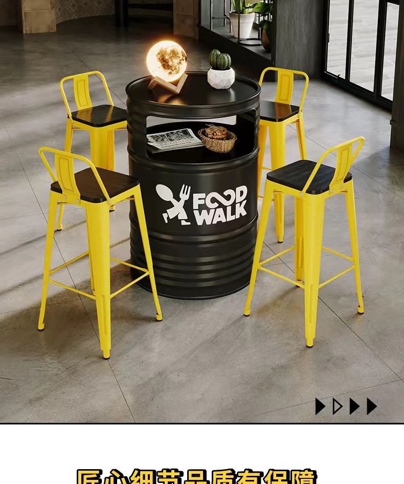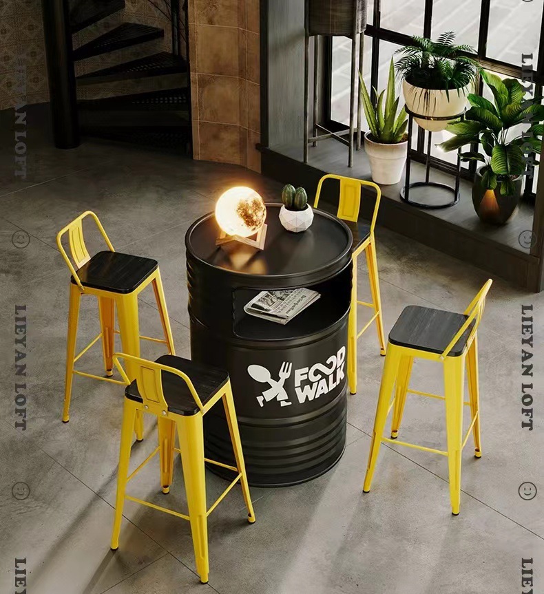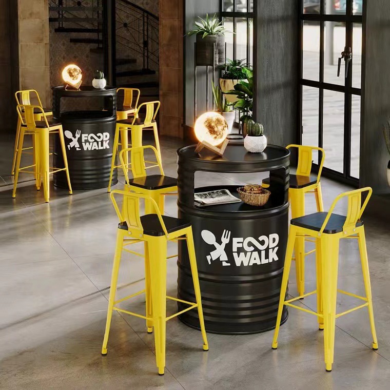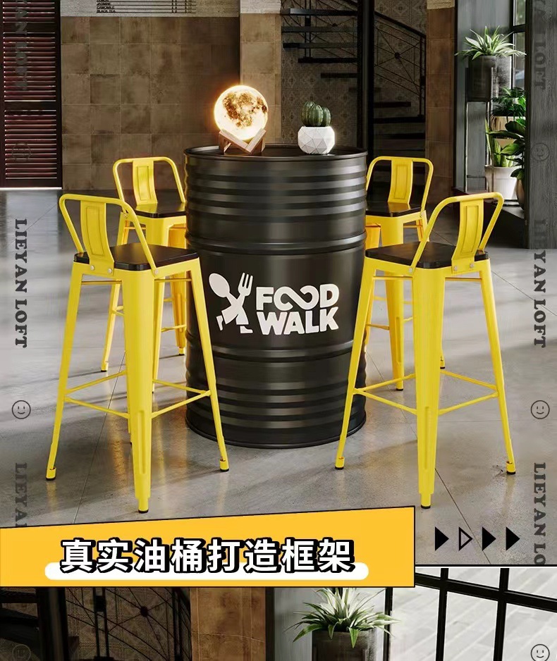 Барная стойка и стулья в индустриальном стиле, магазин молочного чая и барбекю, караоке-бар, креативные ретро-столы и стулья из железных масляных бочек