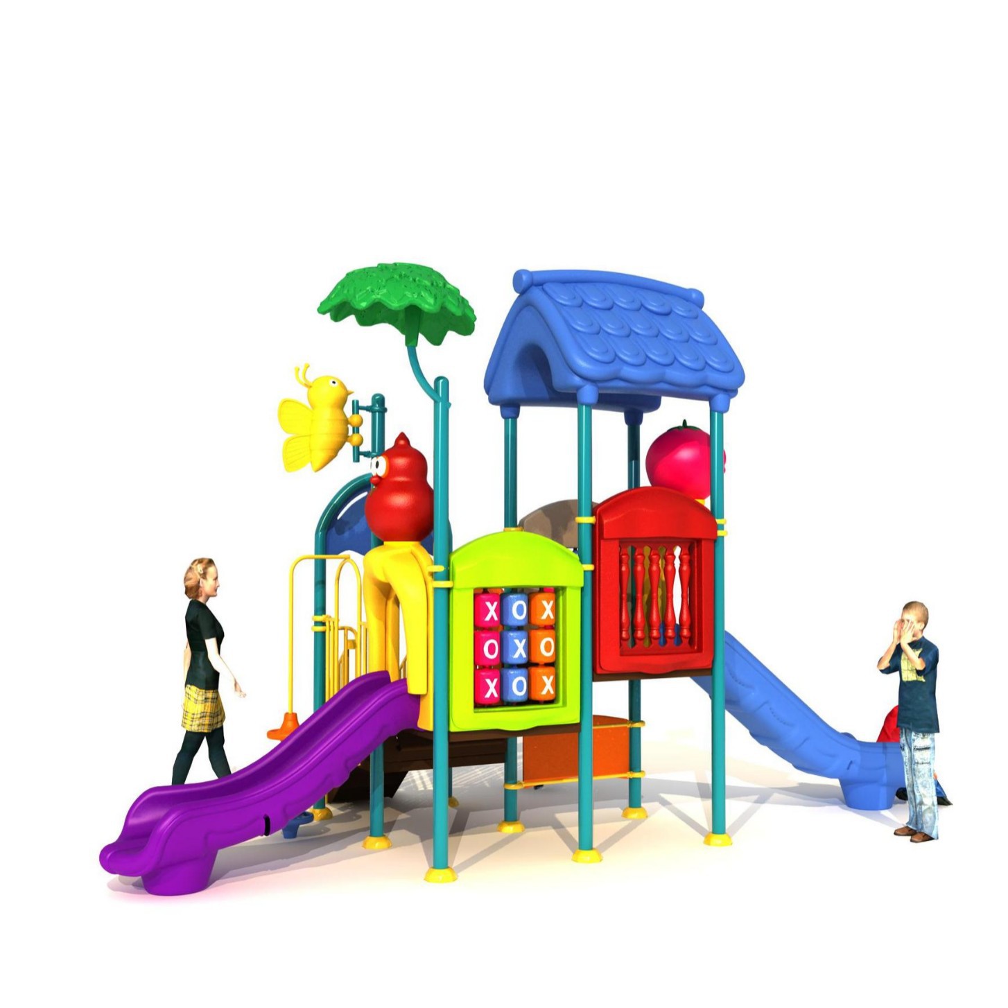 Детская игровая площадка с горкой и качелями для нескольких человек, 89-секционная пластиковая горка для парков и общественных мест, уличная комбинированная горка