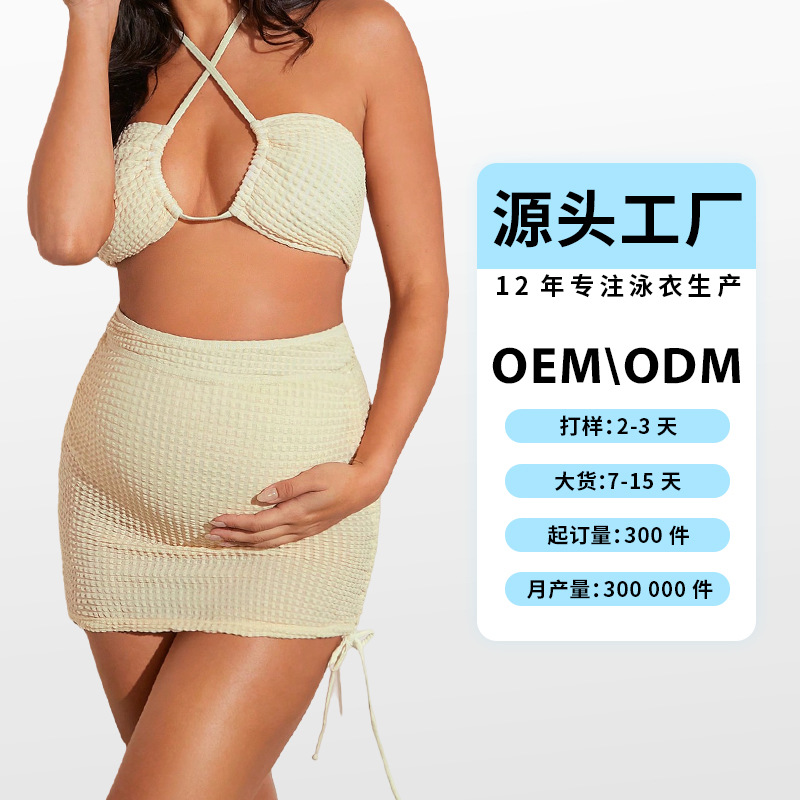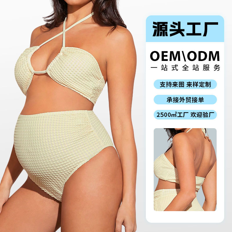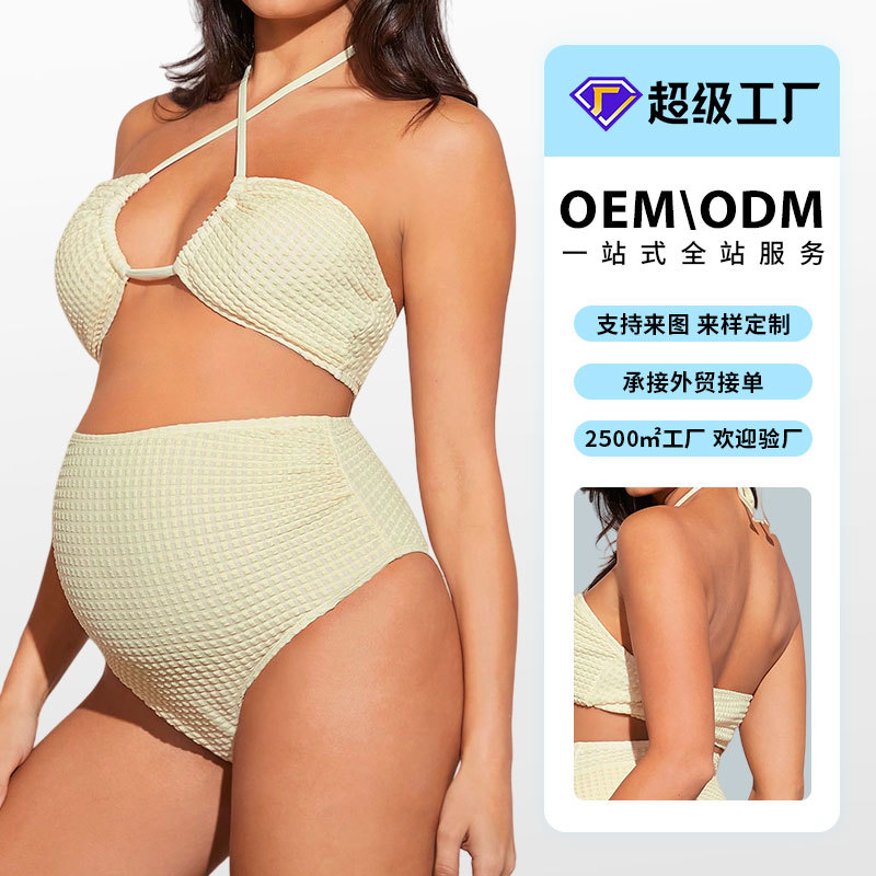 Комплект для беременных из двух частей: однотонный купальник с завязками и сетчатыми вставками, с эффектом поддержки живота, бесшовный, сексуальный бикини, 2026 год.