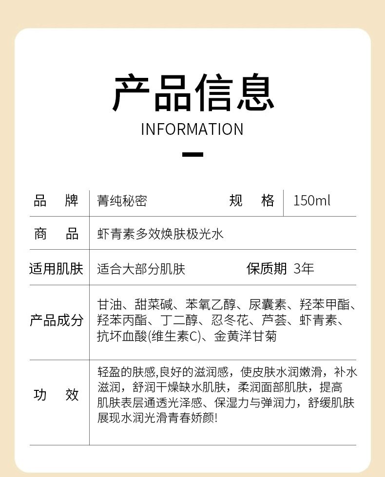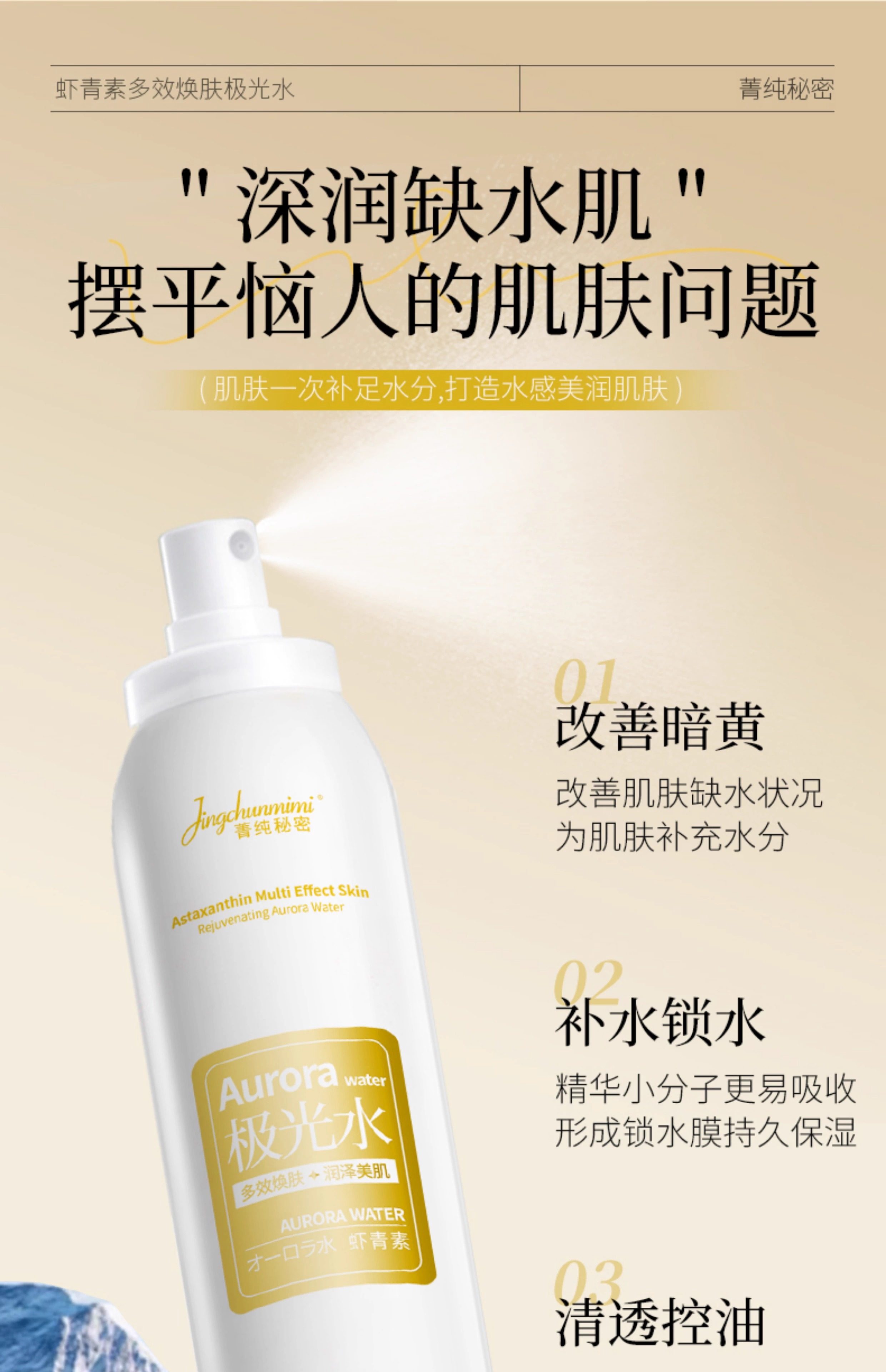 Jingchun Secret Astaxanthin Aurora Water Увлажняющий, осветляющий и улучшающий тоник для больших пор, готовый к доставке