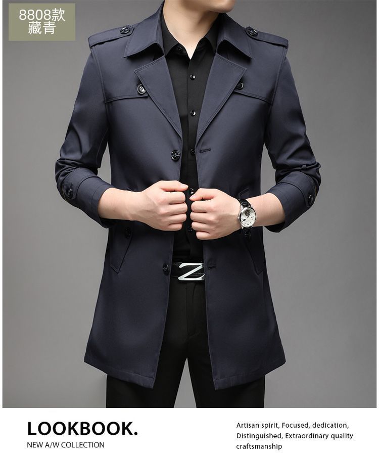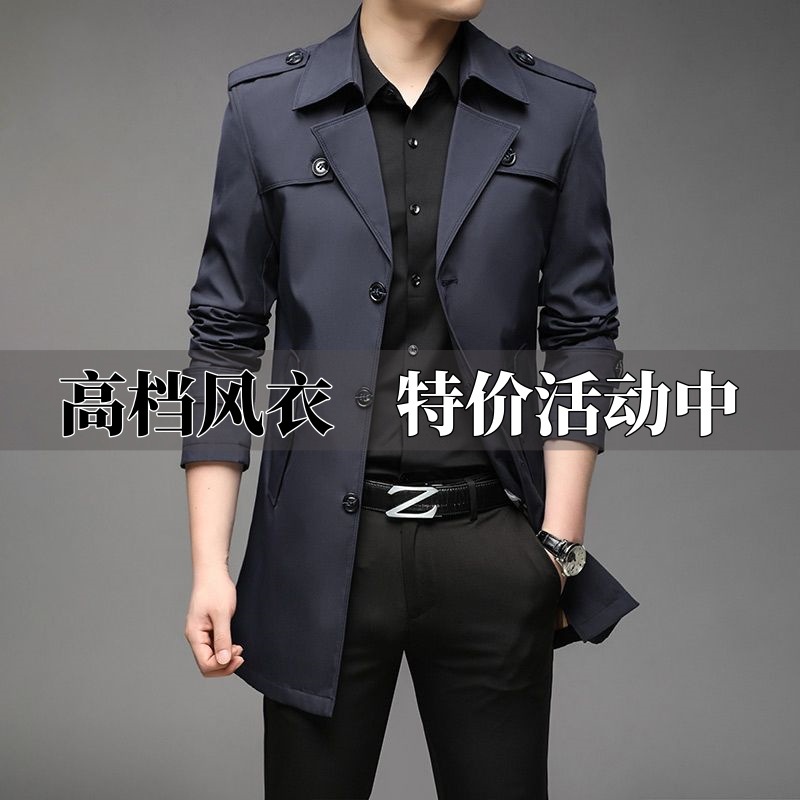 Новая мужская ветровка средней длины весна-осень 2025, повседневная, премиум-класса, с воротником-стойкой для мужчин среднего возраста