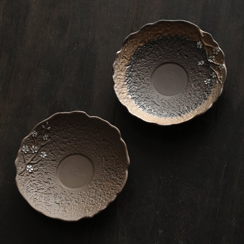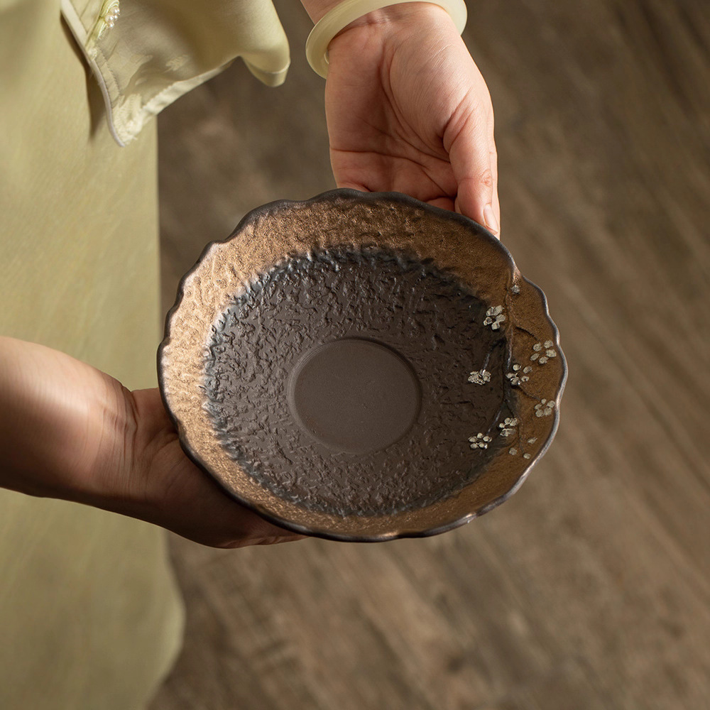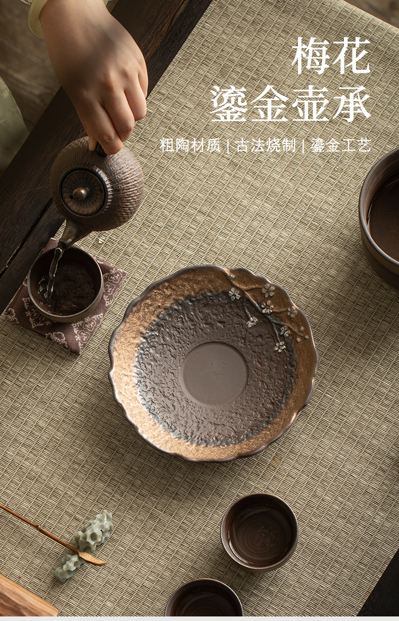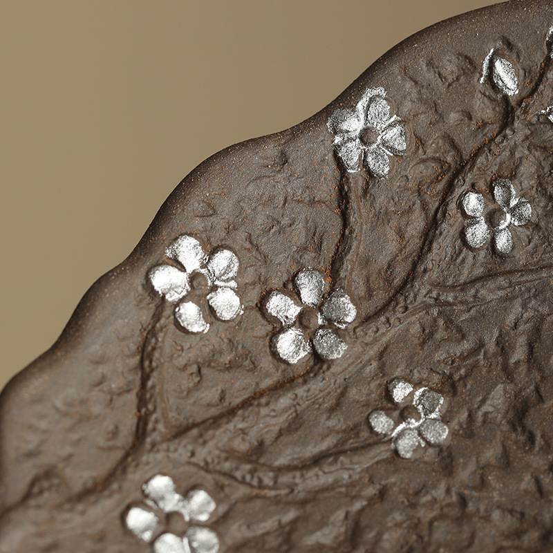 Подставка для горшка из керамогранита - цвет сливы; Держатель для горшка из керамогранита с позолотой - Цветок сливы
