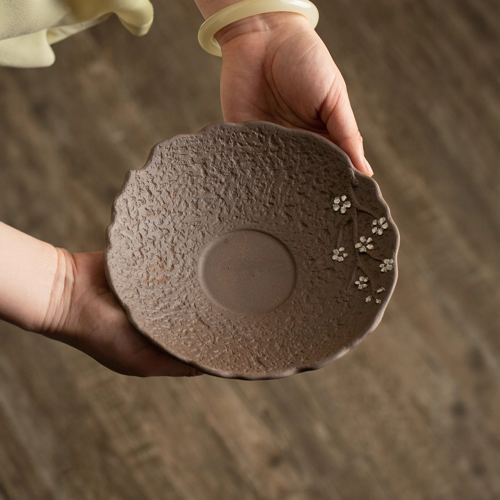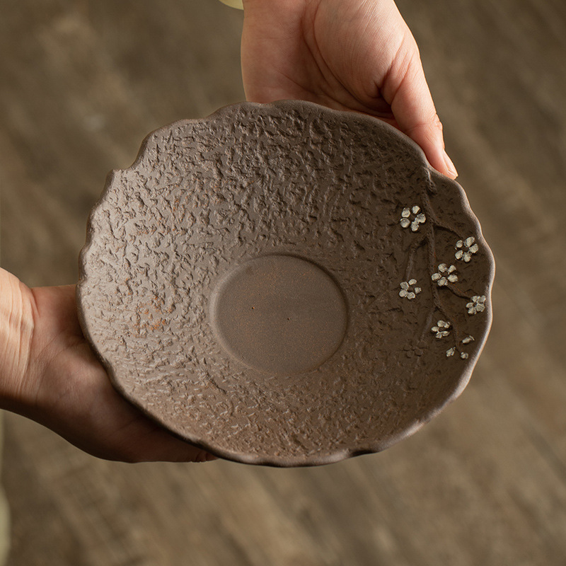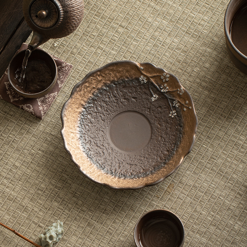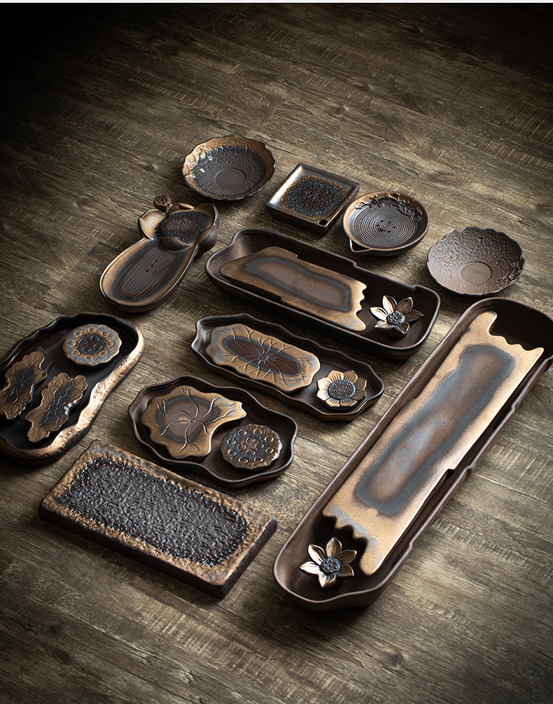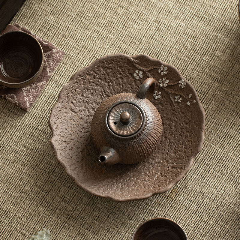 Грубая керамика, не глазурованный сухой поднос для чая, чайный столик для хранения воды, китайский ретро бытовой поднос для кастрюли, поднос для фруктов, тарелка для фруктов