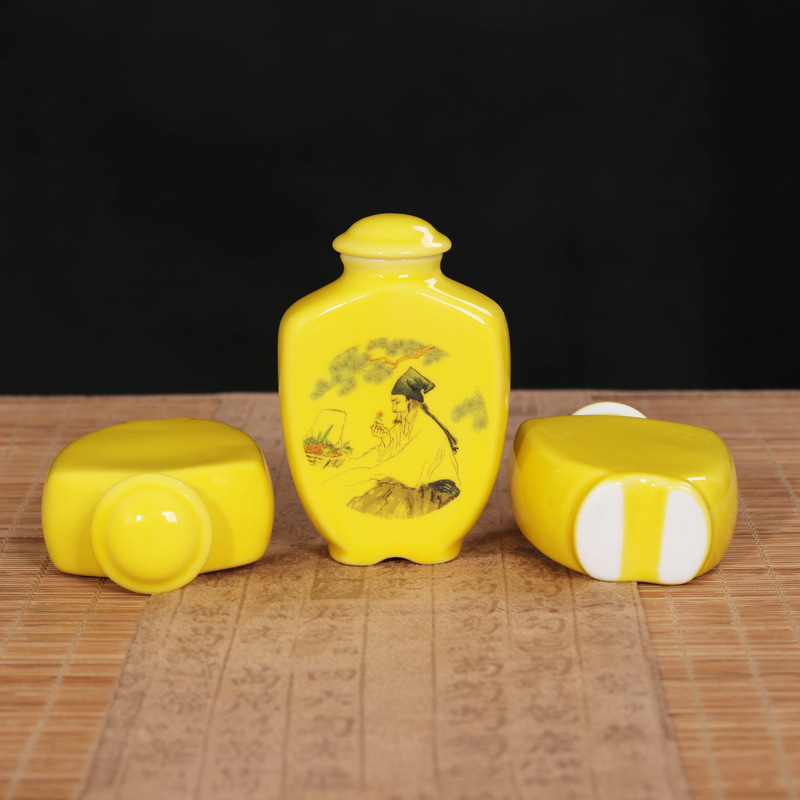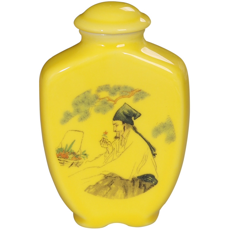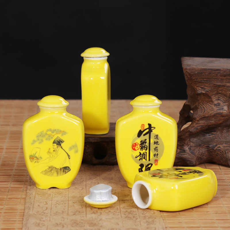 Флакон для порошка лекарств, антикварная банка для лекарственных материалов, керамическая банка для таблеток китайской медицины, герметичная маленькая фарфоровая бутылочка, желтая баночка для табака, герметичная банка