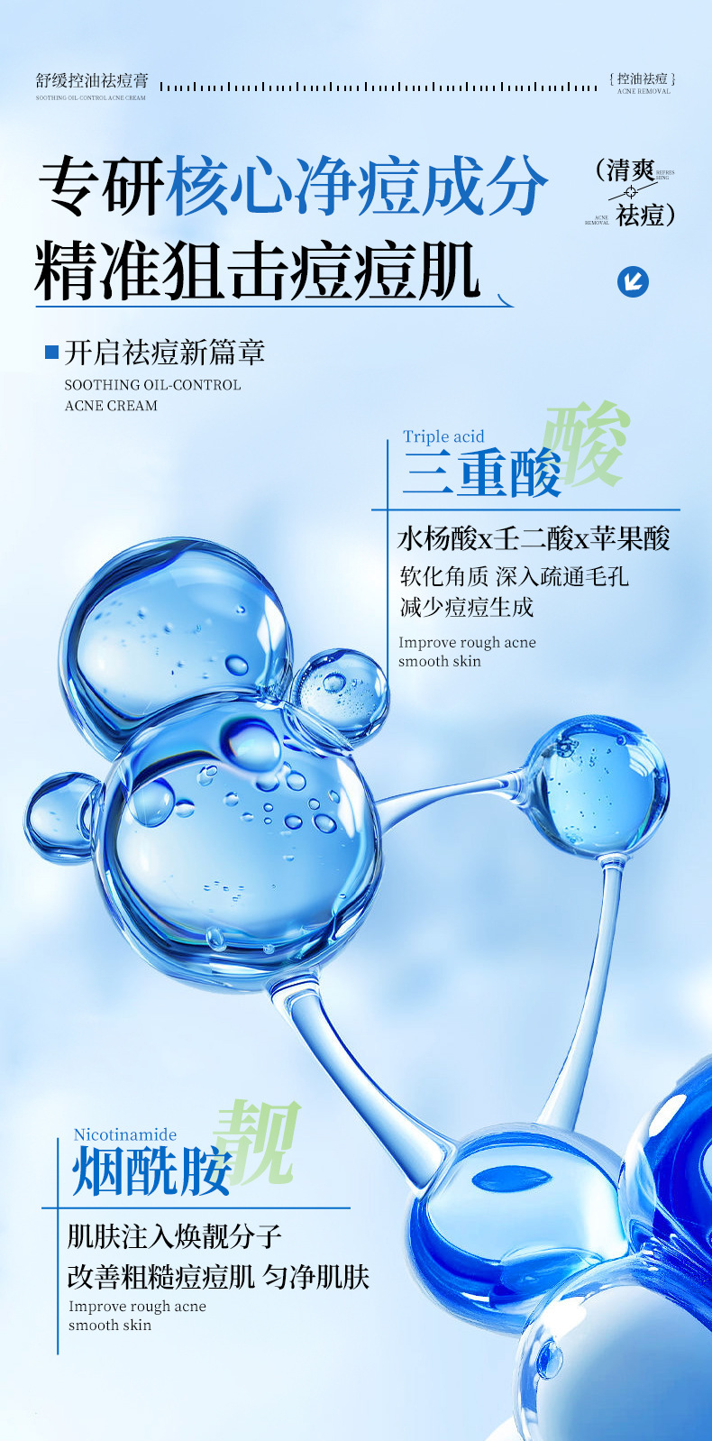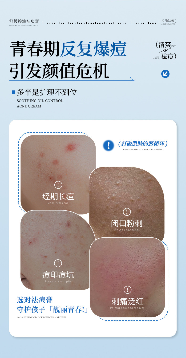 Успокаивающий крем от прыщей для подростков, специализирующийся на успокаивающем и удалении прыщей, освежающем, нежирном, увлажняющем, контролирующем жирность и удаляющем прыщи креме для замены волос.