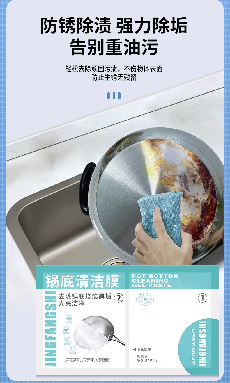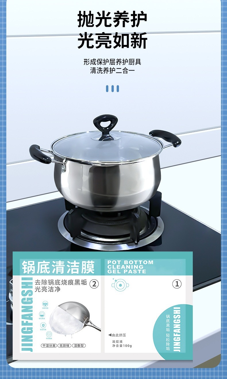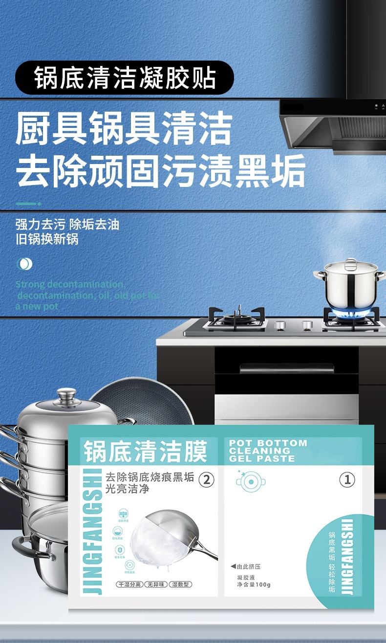 Наклейка для чистки дна кастрюли, гель для удаления тяжелого черного налета, маска для очистки кухонной посуды, средство для удаления накипи с чугунных кастрюль.