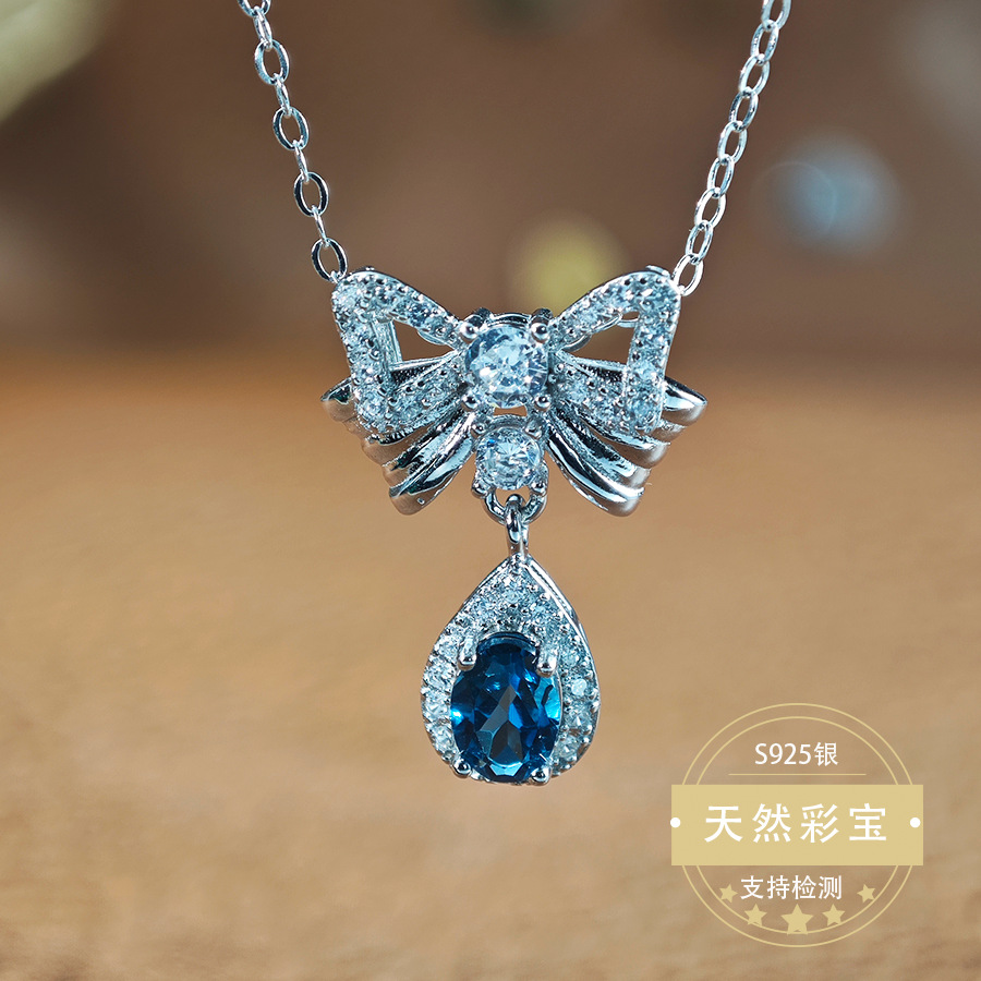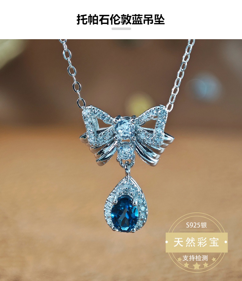 Европейское и американское трансграничное ожерелье с подвеской в форме капли воды из натурального цветного драгоценного камня, инкрустированное серебром S925, доступное роскошное и высококачественное ощущение