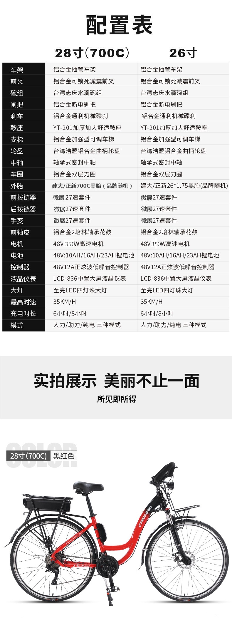 Литиевая батарея, 48 В, для путешествий на большие расстояния, с электроприводом, 700C, городской отдых, электрический дисковый тормоз с регулируемой скоростью, 27-скоростной транспорт для прогулок
