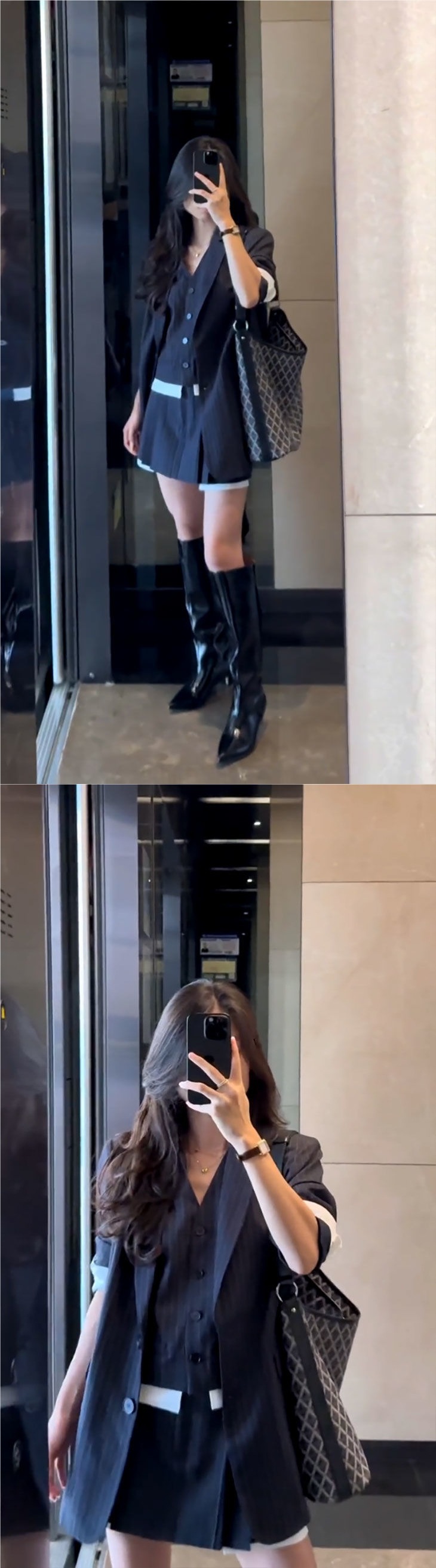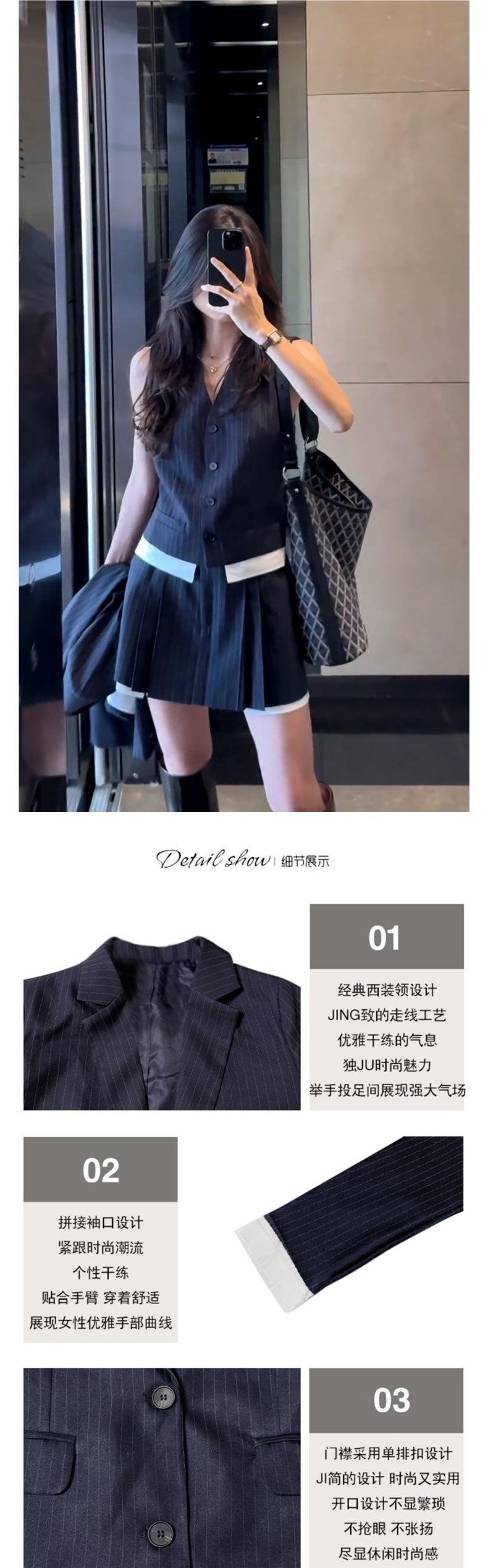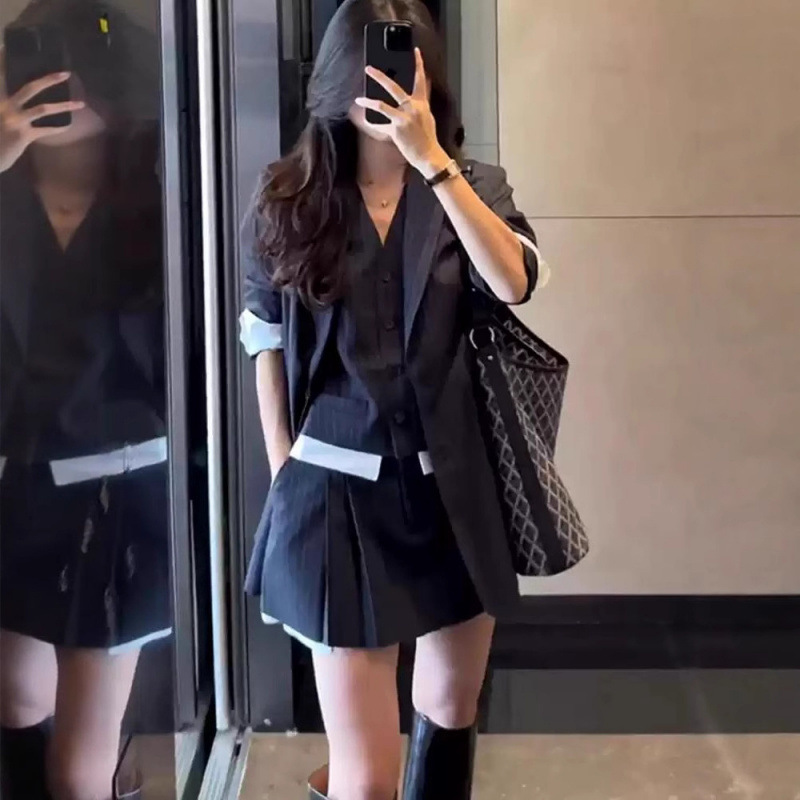 Черно-синяя куртка + жилет + брюки-кюлоты [высокое качество]
