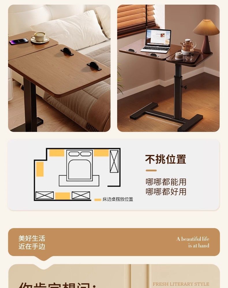 Деревянный подвижный подъемный боковой столик, прикроватный столик для спальни, дома, складной компьютерный стол, стол для гостиной, офиса, дивана
