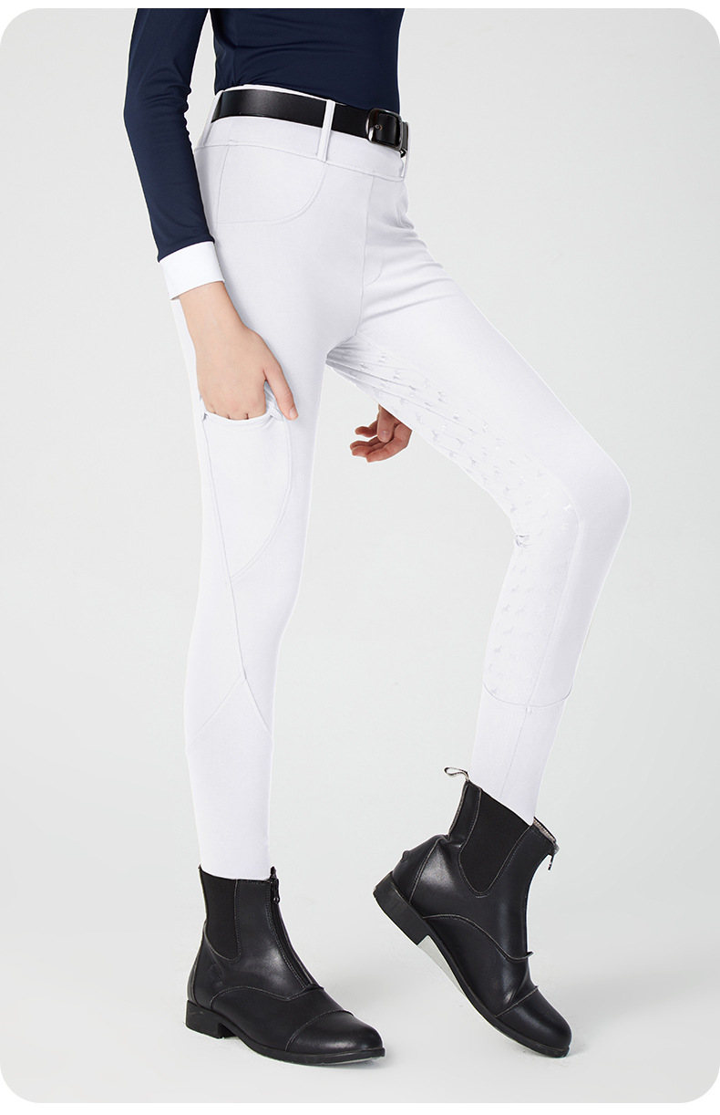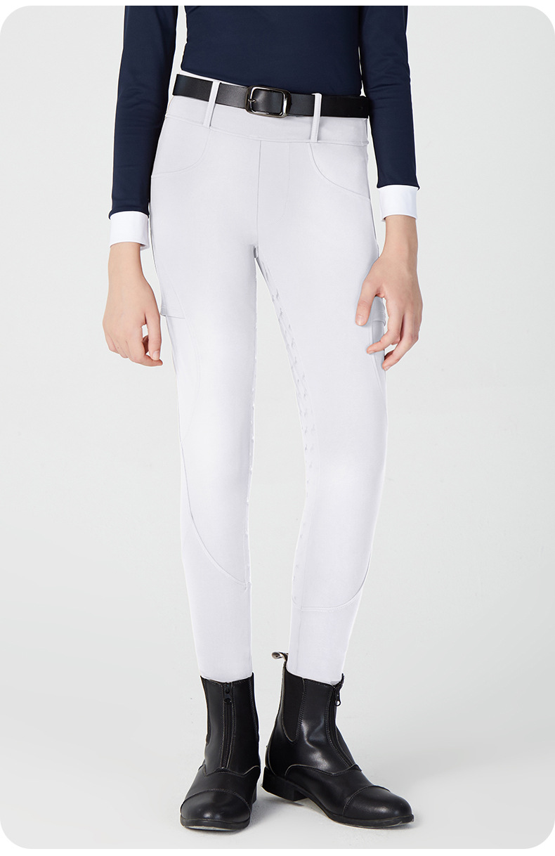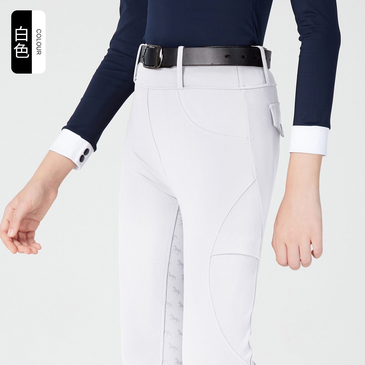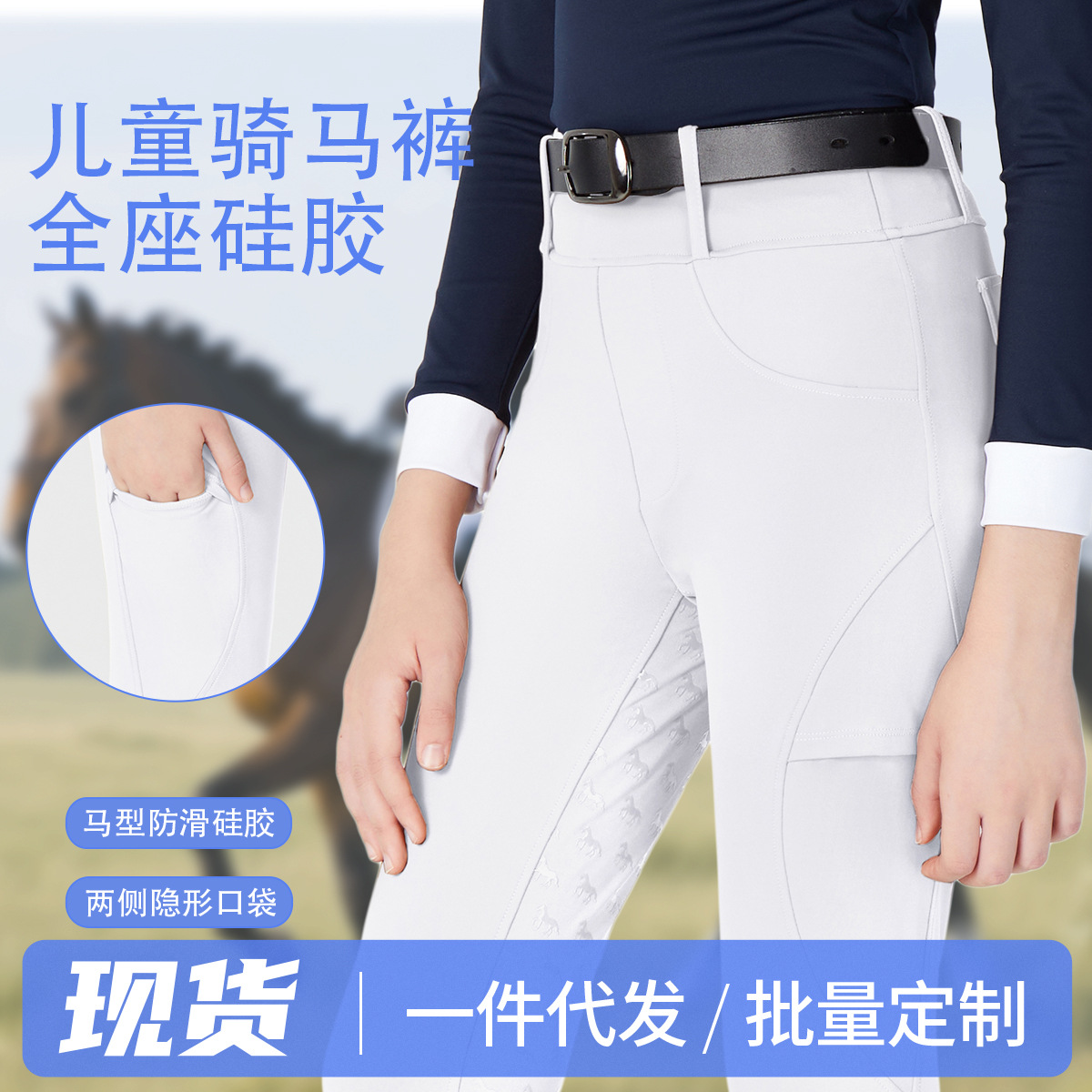 Детские бриджи для верховой езды белые, одежда для соревнований по конному спорту, силиконовые карманы, высокая талия, обтягивающие бриджи для верховой езды