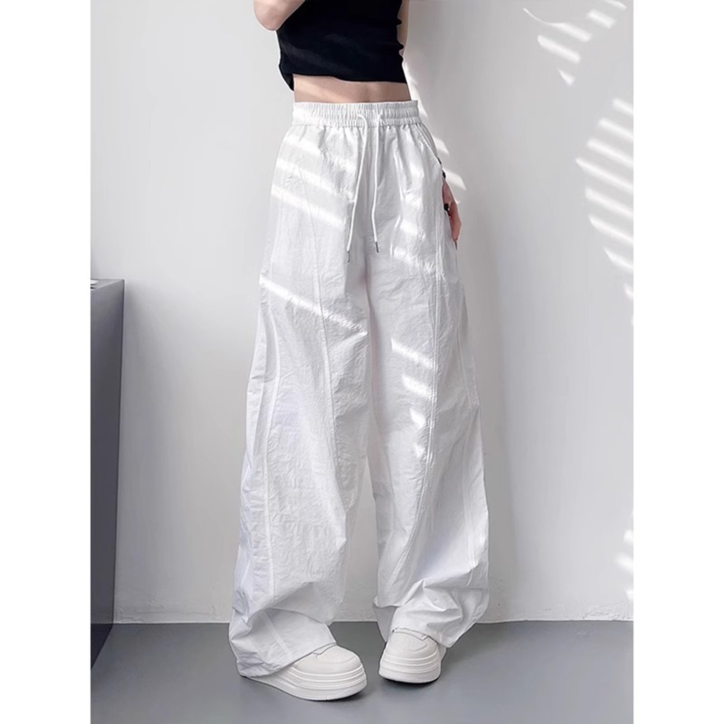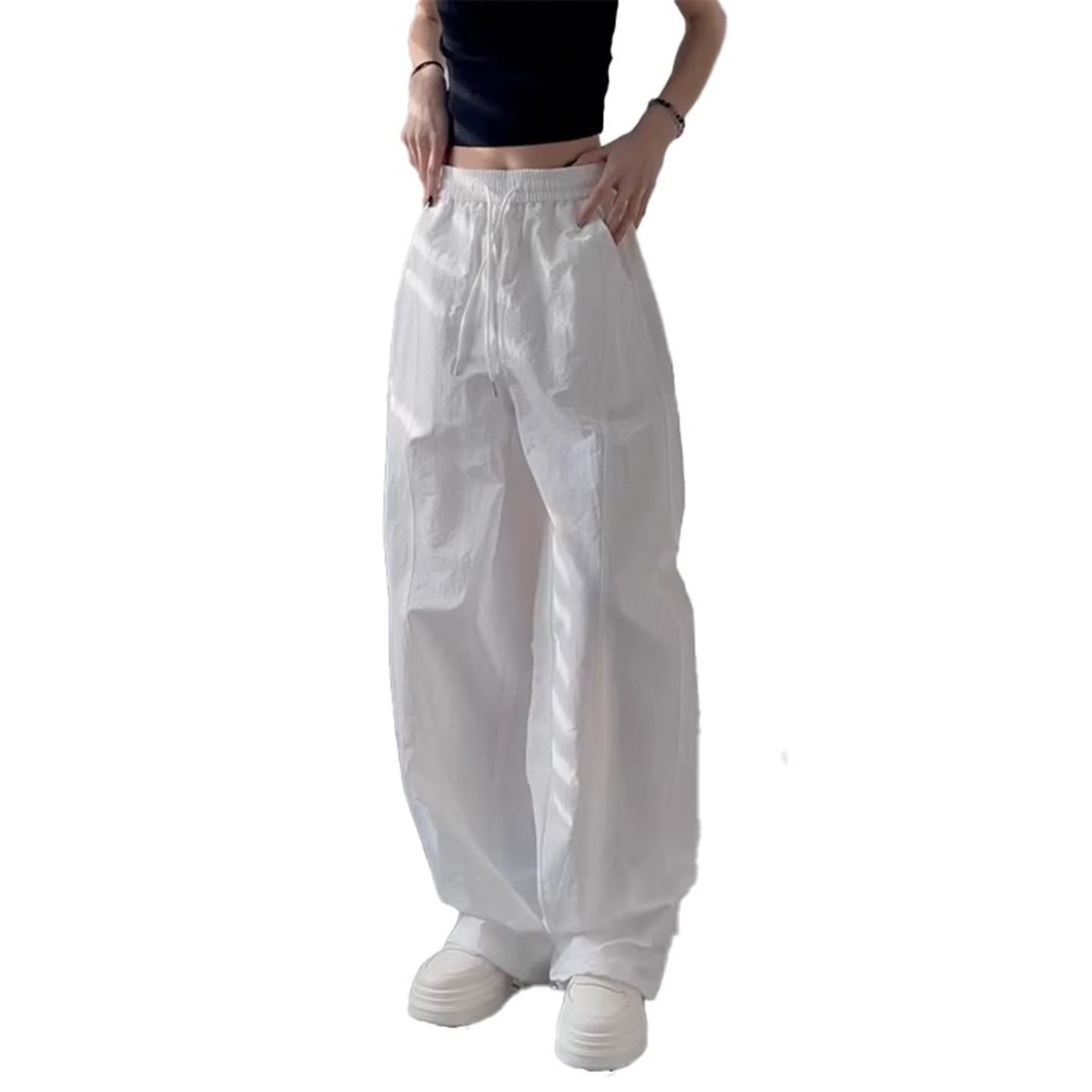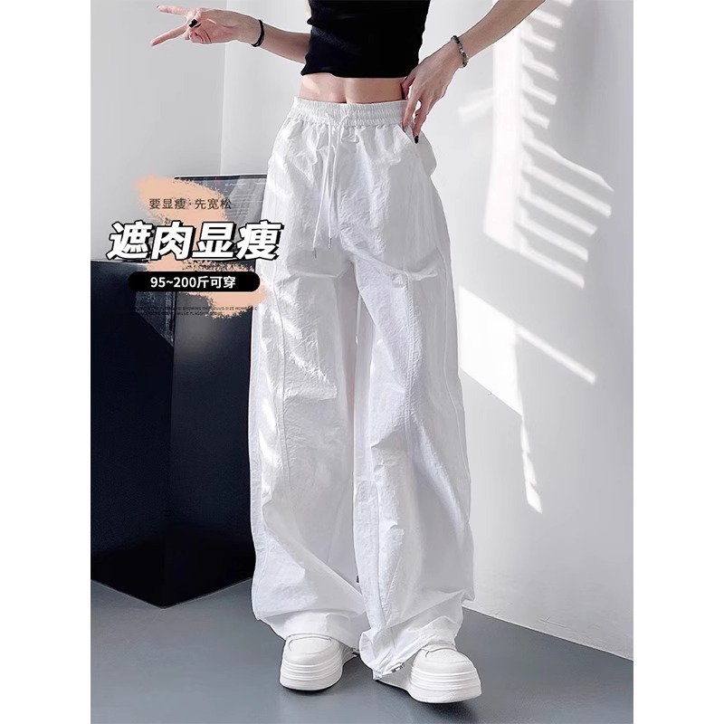 Белые непрозрачные быстросохнущие брюки для женщин 2025 лето тонкие плюс размер миниатюрные плиссированные спортивные карго широкие брюки