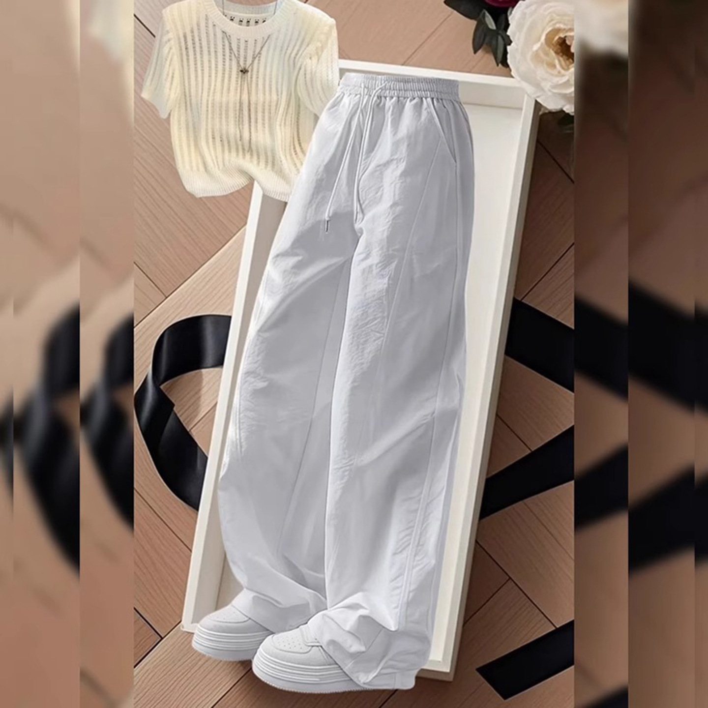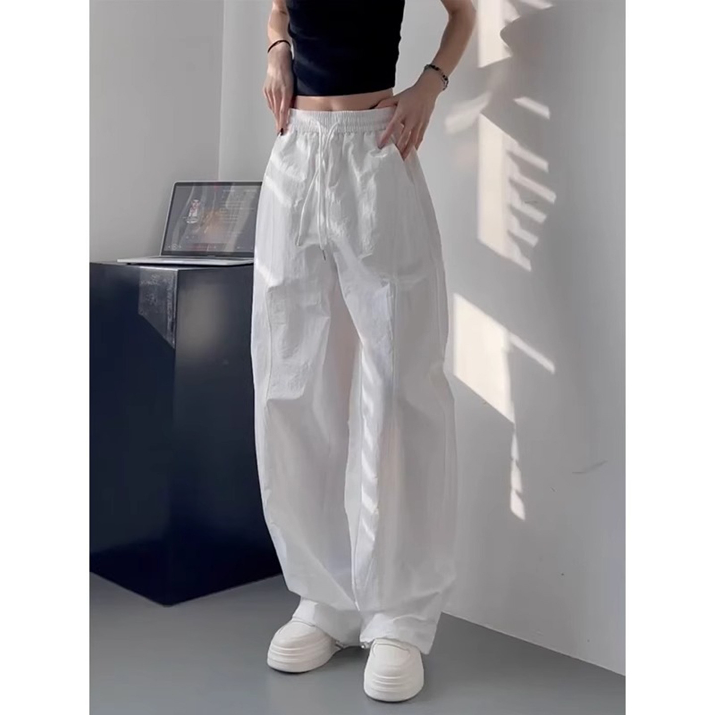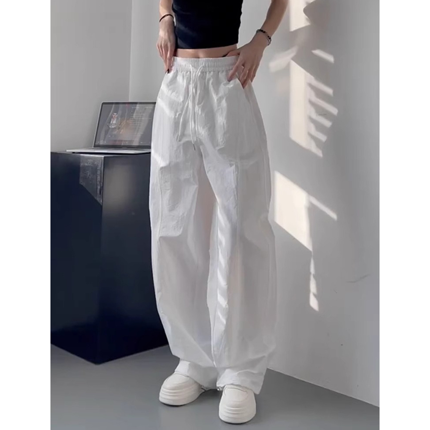 Белые непрозрачные быстросохнущие брюки для женщин 2025 лето тонкие плюс размер миниатюрные плиссированные спортивные карго широкие брюки