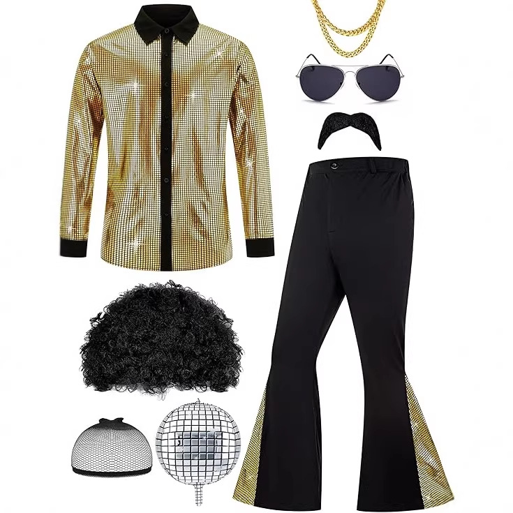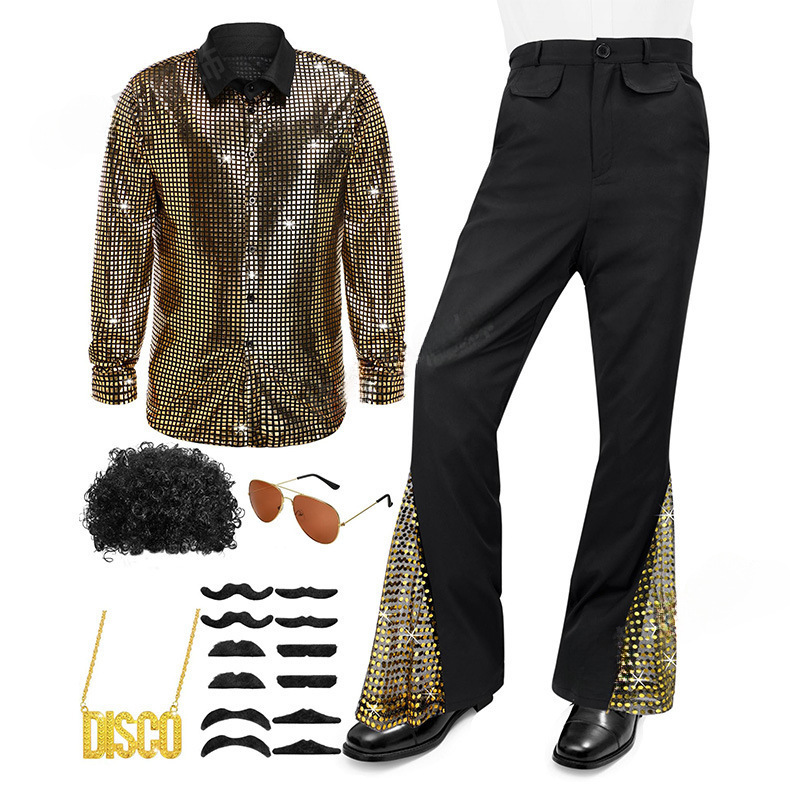 Дискотечная мужская одежда для выступлений 2025: мужская рубашка с длинным рукавом, брюки, ретро-костюм для сцены и косплея.