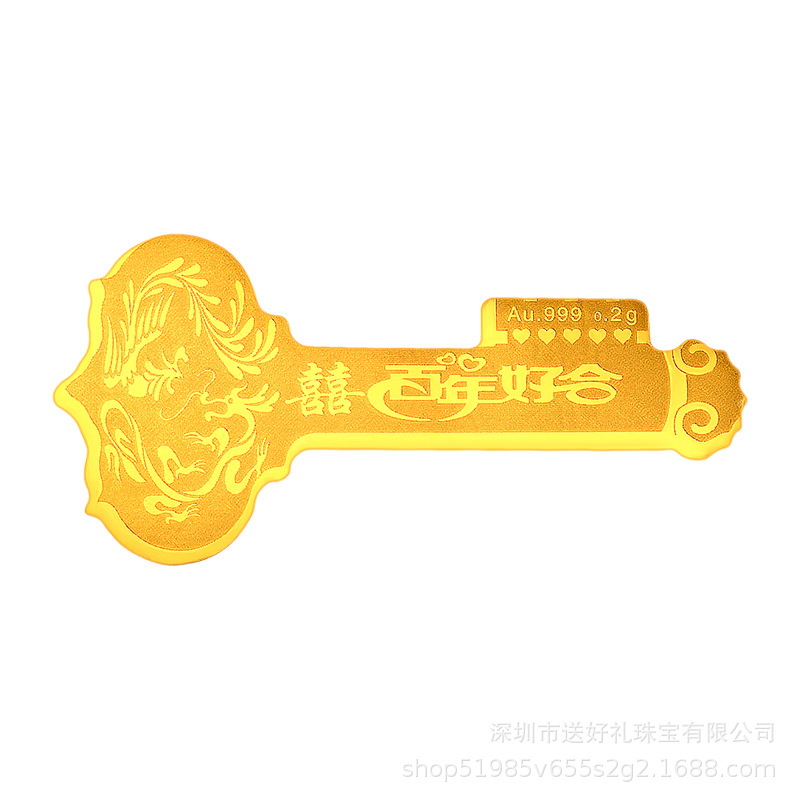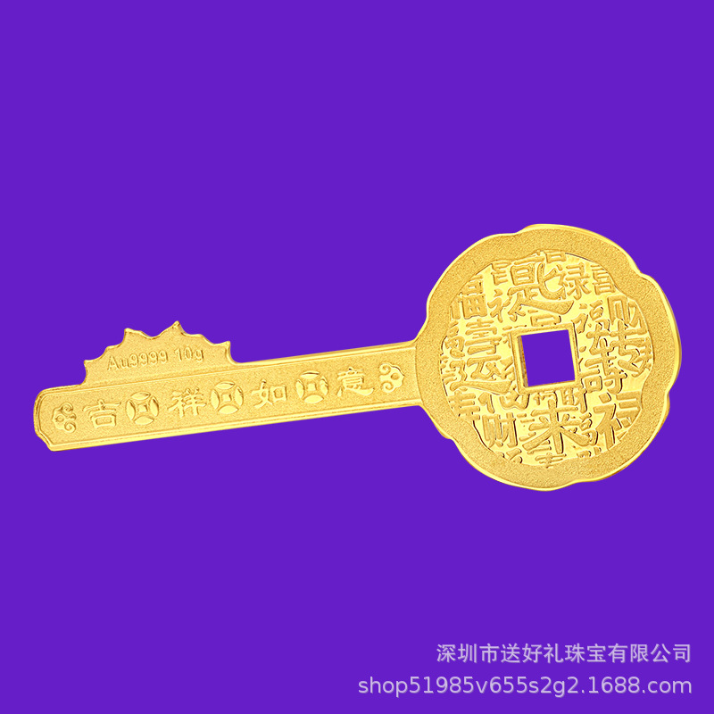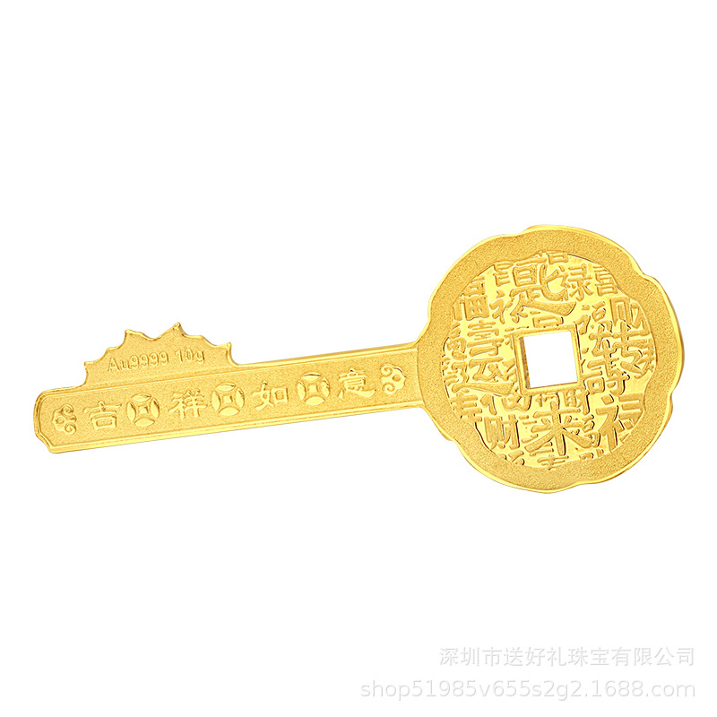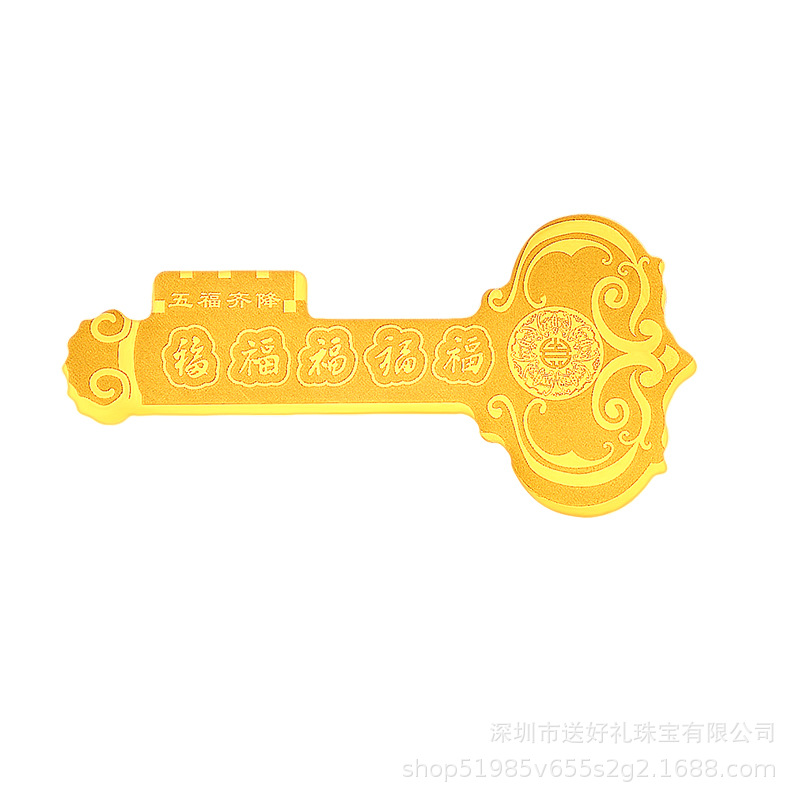 Золотой ключ с символом «Фу» фиксирован, золотой ключ с символом «Си» оптом, благоприятный и желаемый золотой ключ весом 0,3 грамма, памятный подарочный золотой ключ запускается.