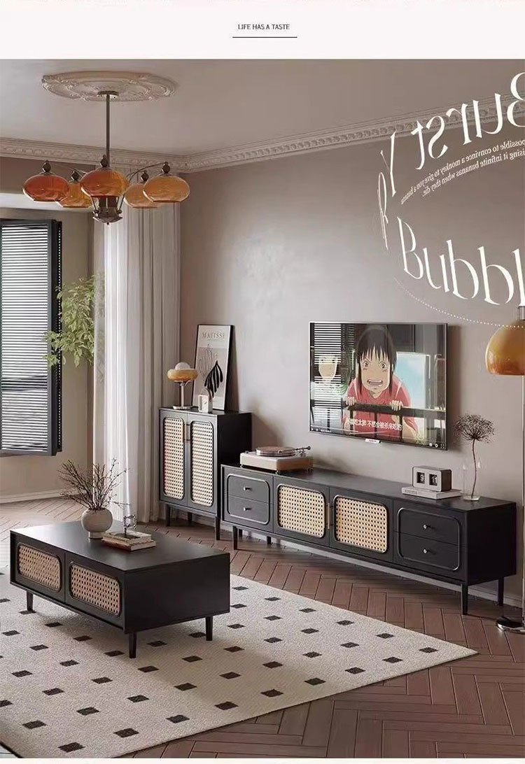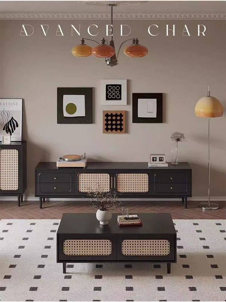 Современный ретро ТВ-шкаф, журнальный столик, комбинация для гостиной, домашний свет, роскошный простой современный новый черный ТВ-шкаф, шкаф