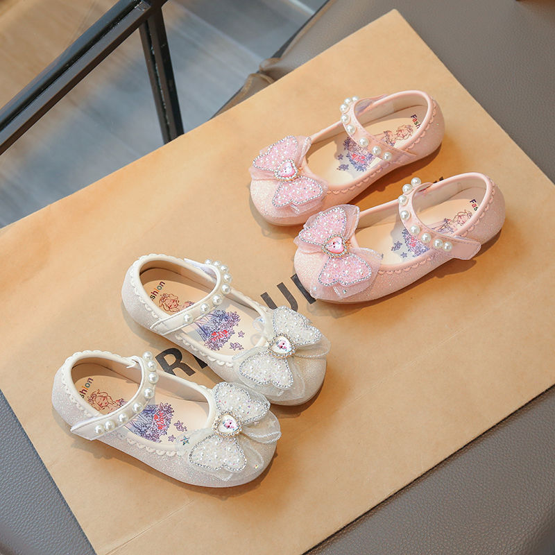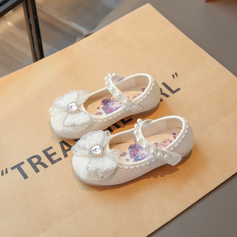 Обувь для девочек Princess 2025, новые летние детские туфли с кристаллами, туфли на мягкой подошве, маленькие кожаные туфли для маленьких девочек, весенне-осенний стиль