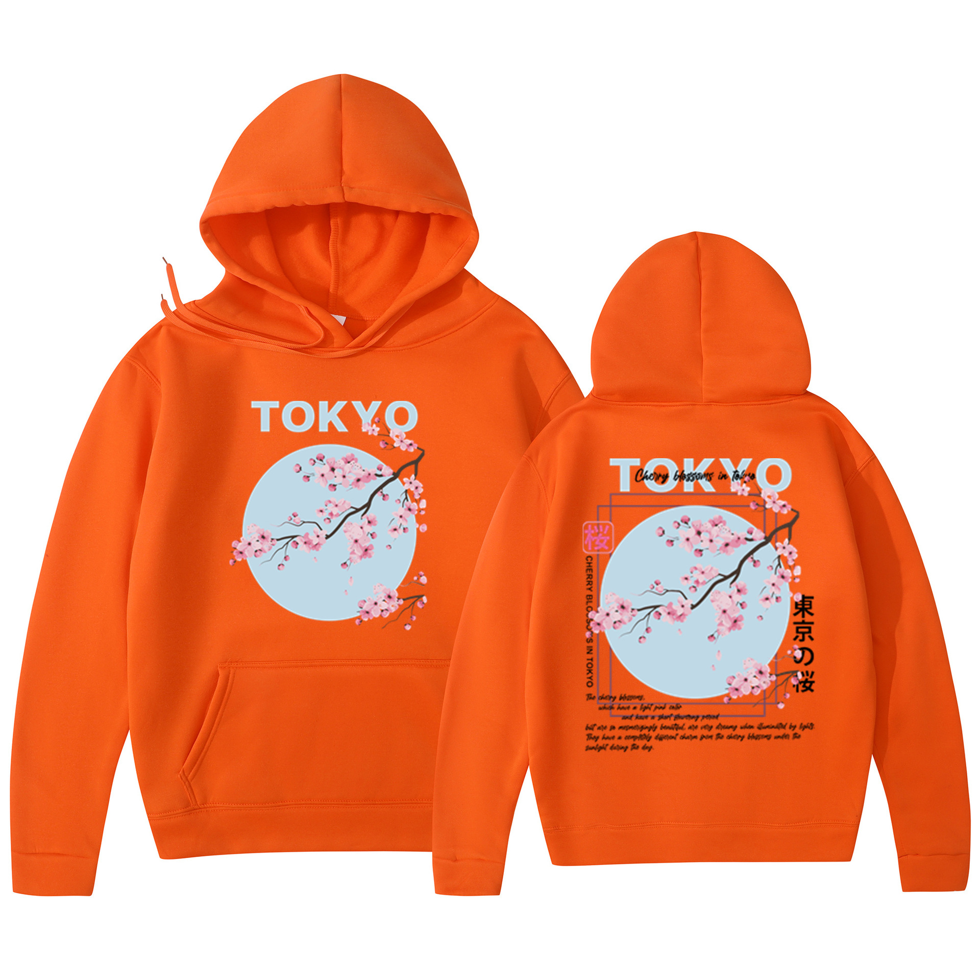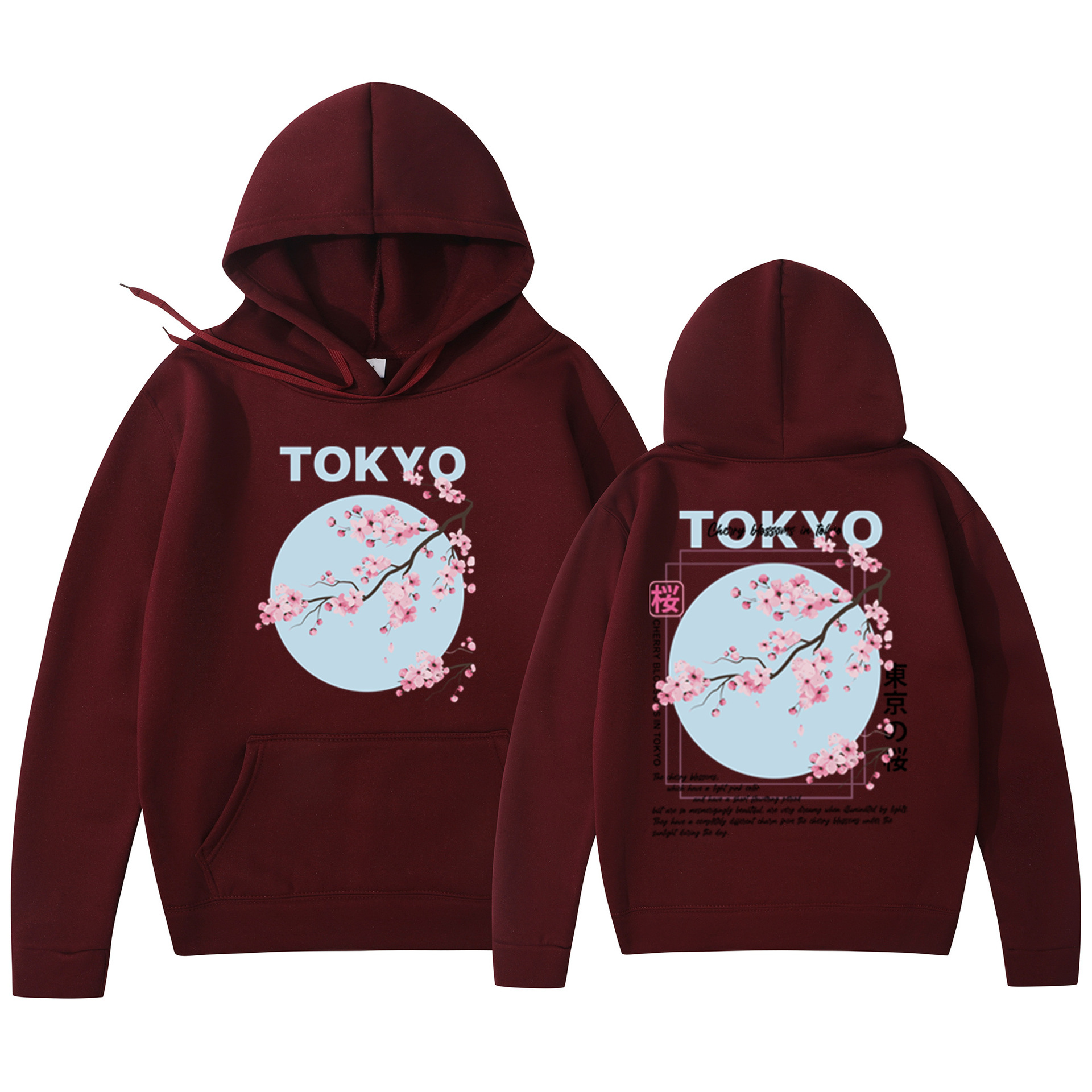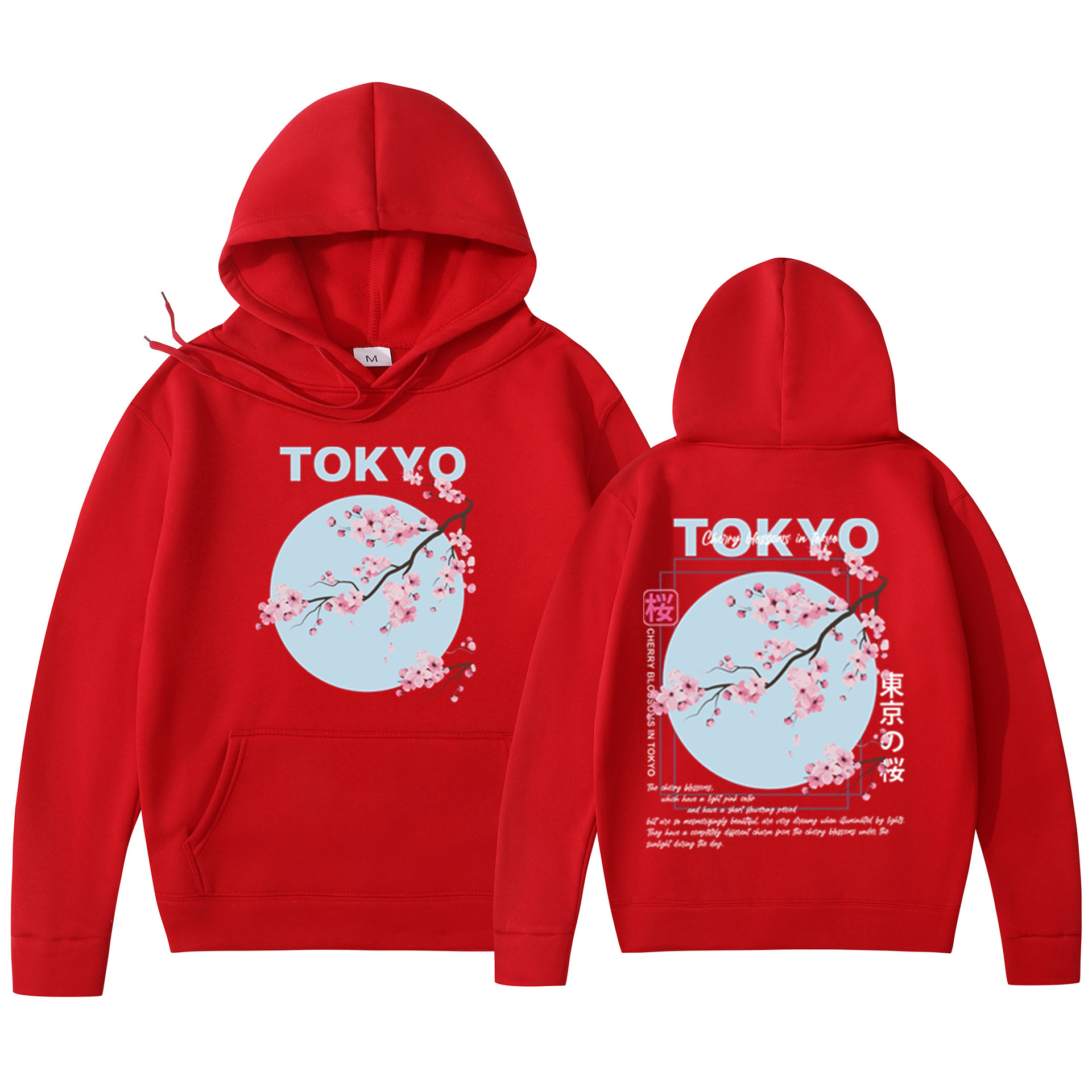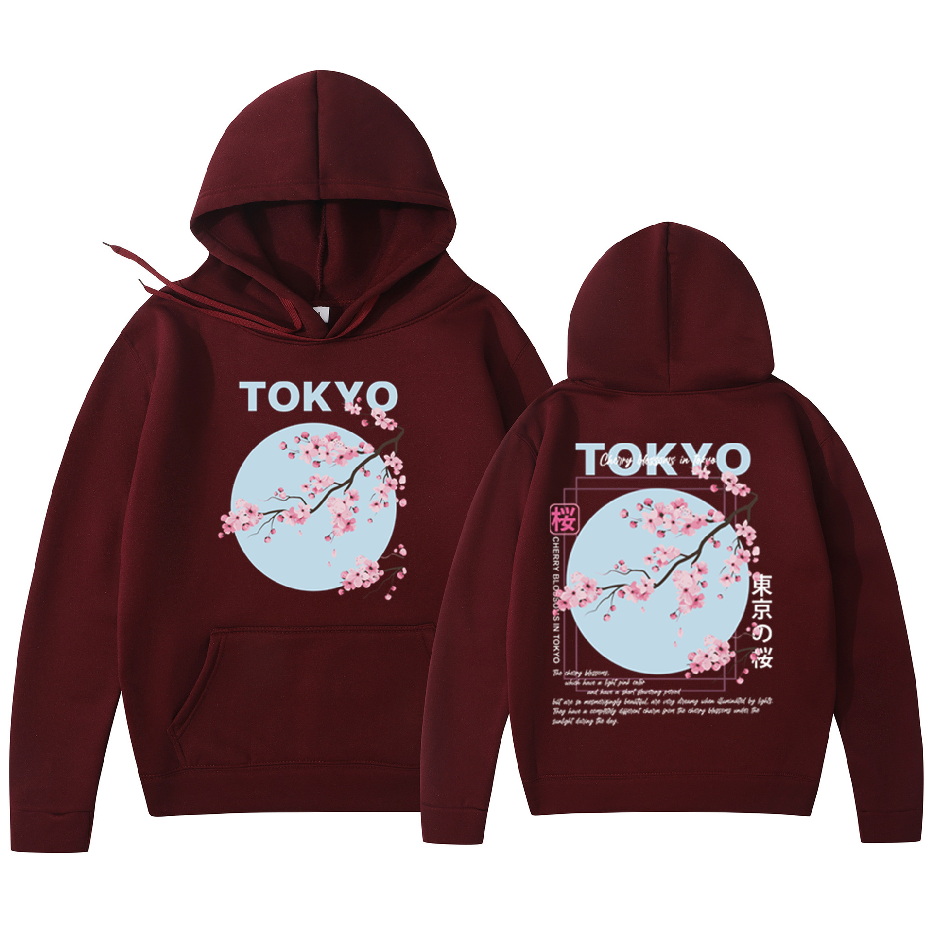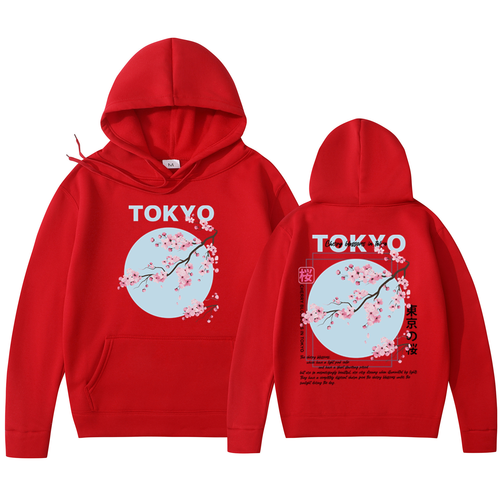 Мужская толстовка с принтом вишневого цвета в японском стиле, толстовка с капюшоном, повседневная толстовка из полиэстера, трикотажная ткань, пуловер, стандартная посадка