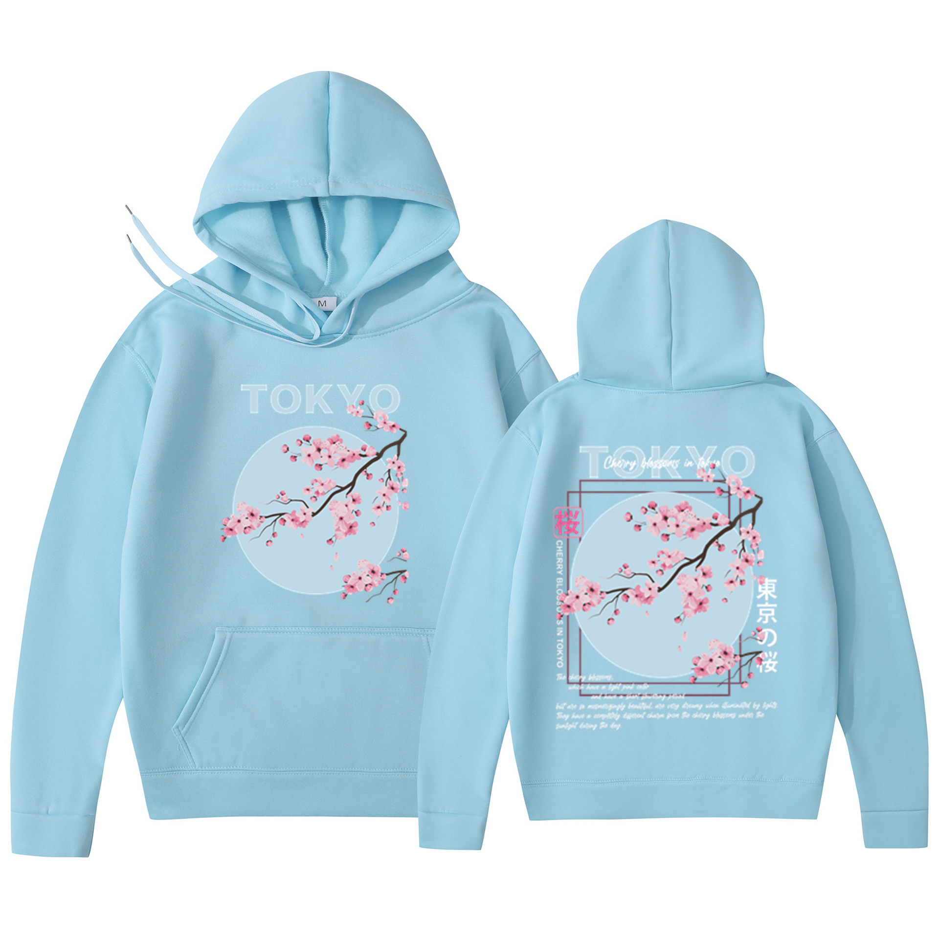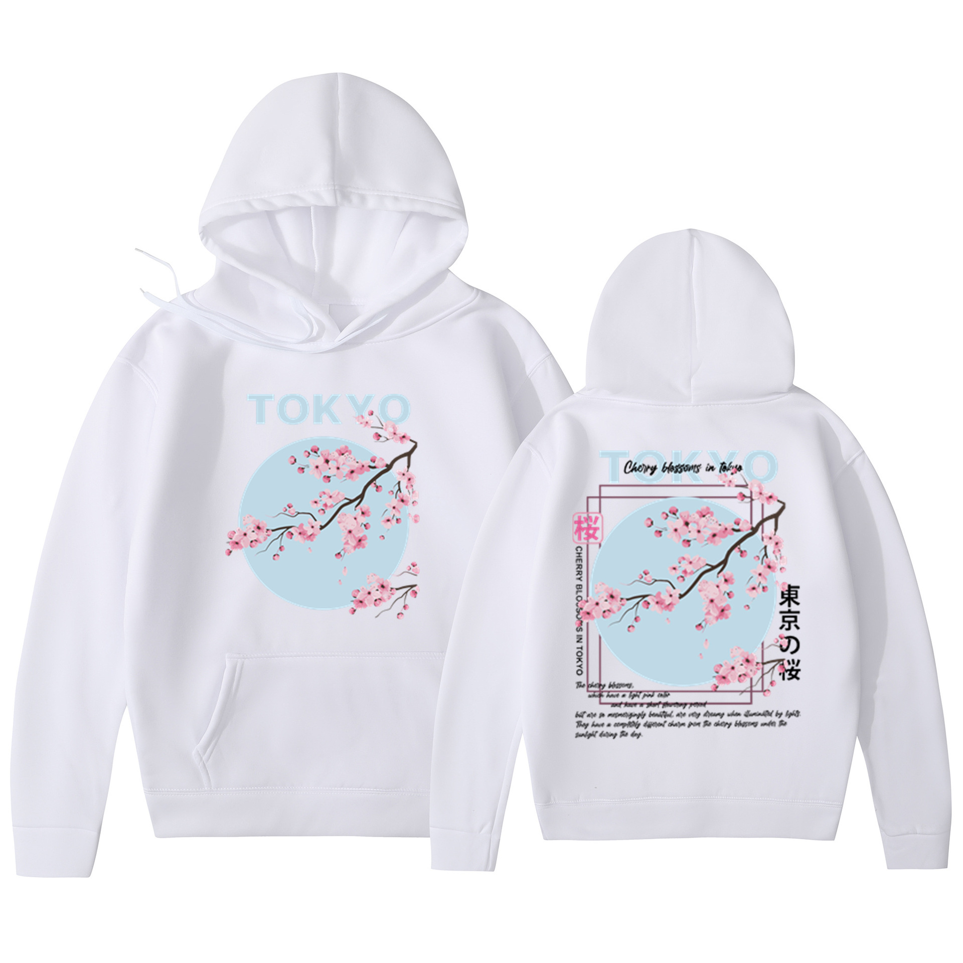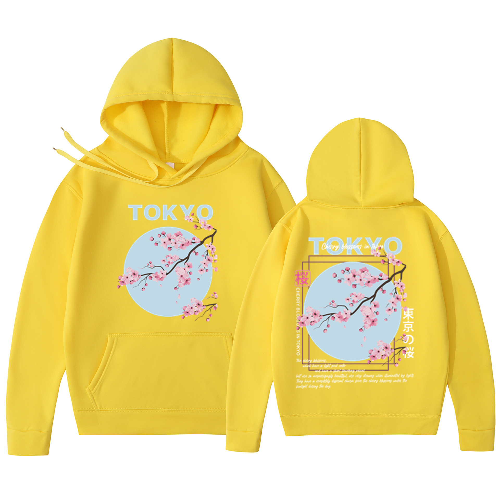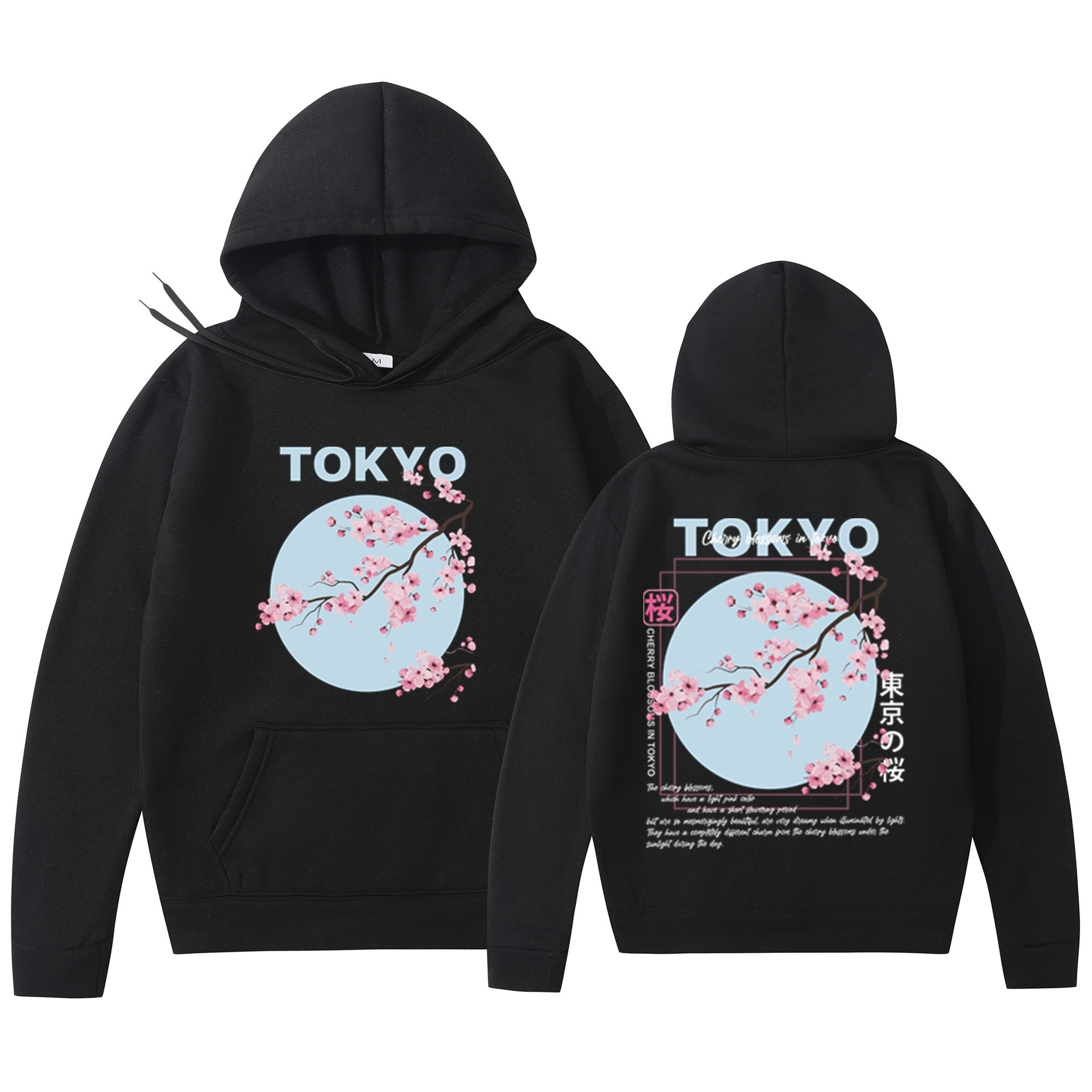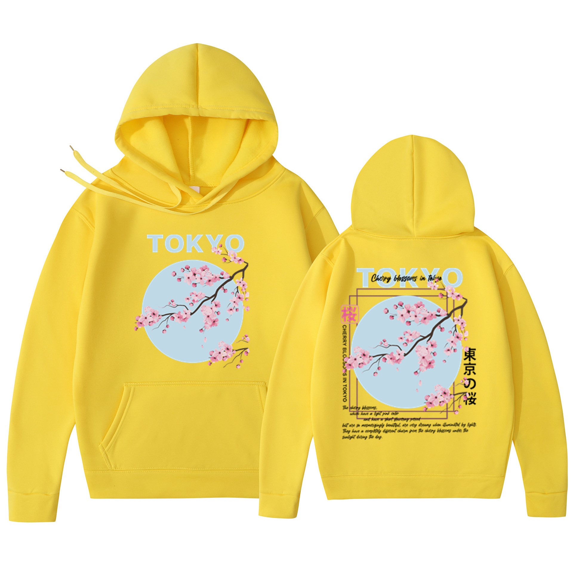 Мужская толстовка с принтом вишневого цвета в японском стиле, толстовка с капюшоном, повседневная толстовка из полиэстера, трикотажная ткань, пуловер, стандартная посадка