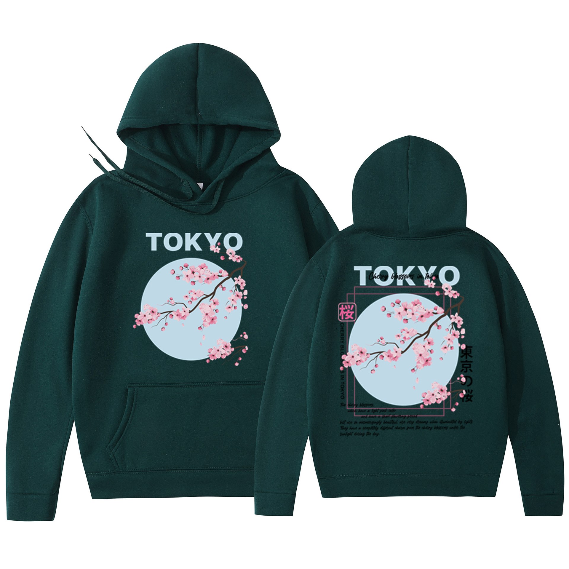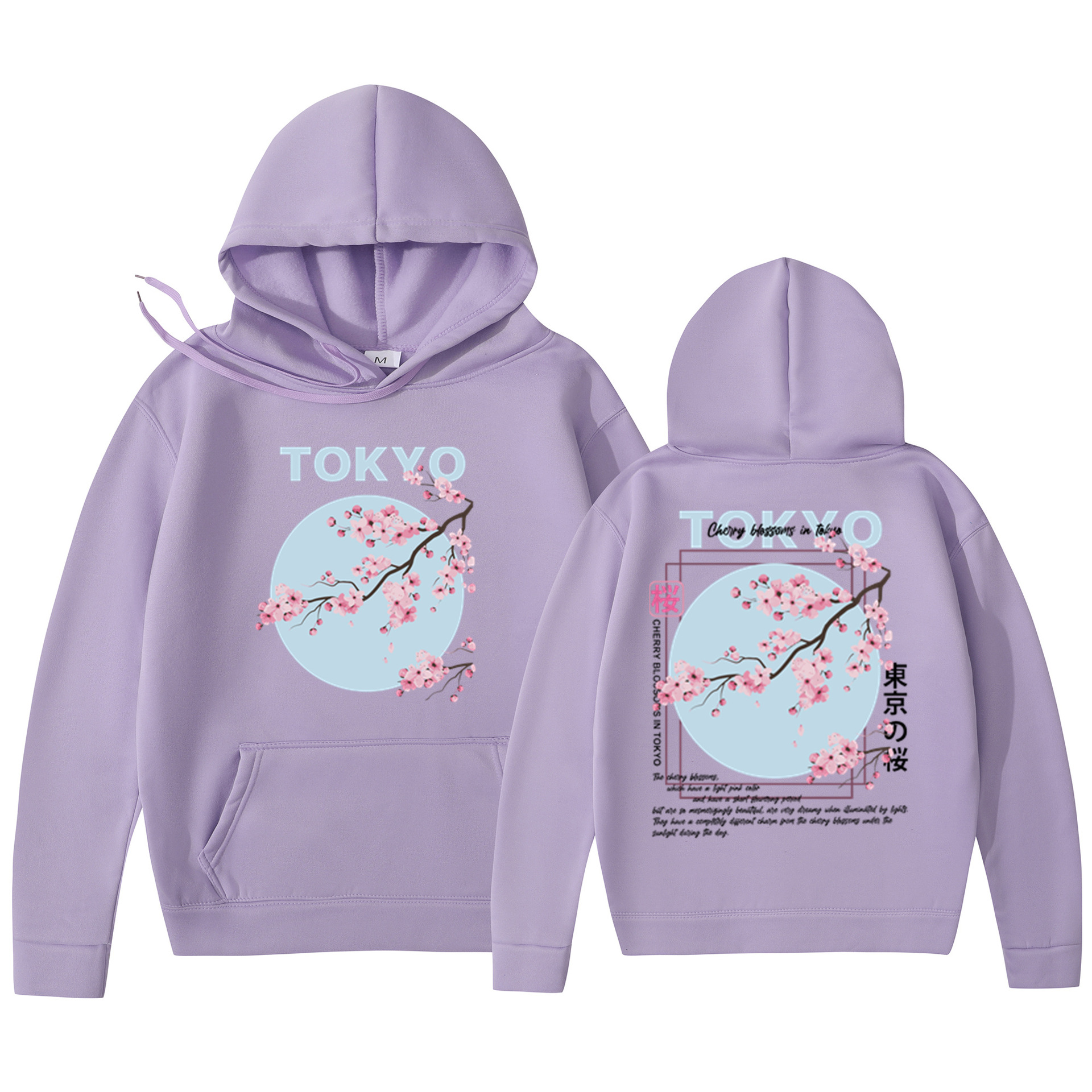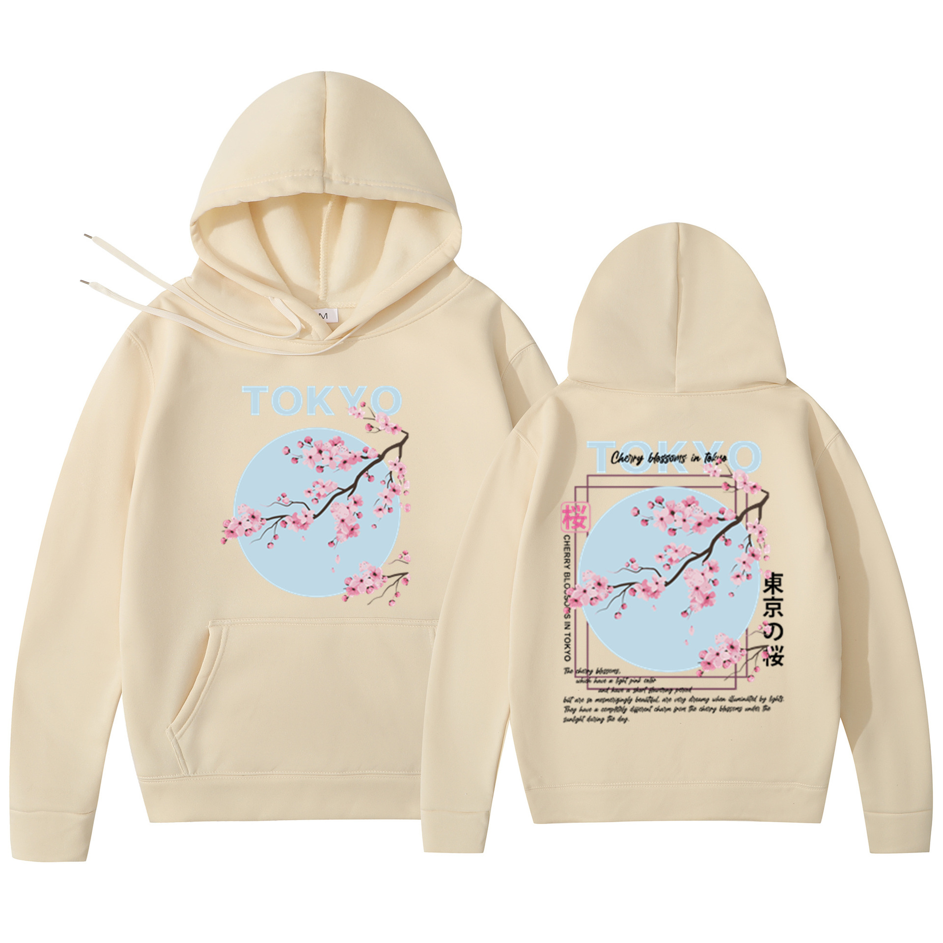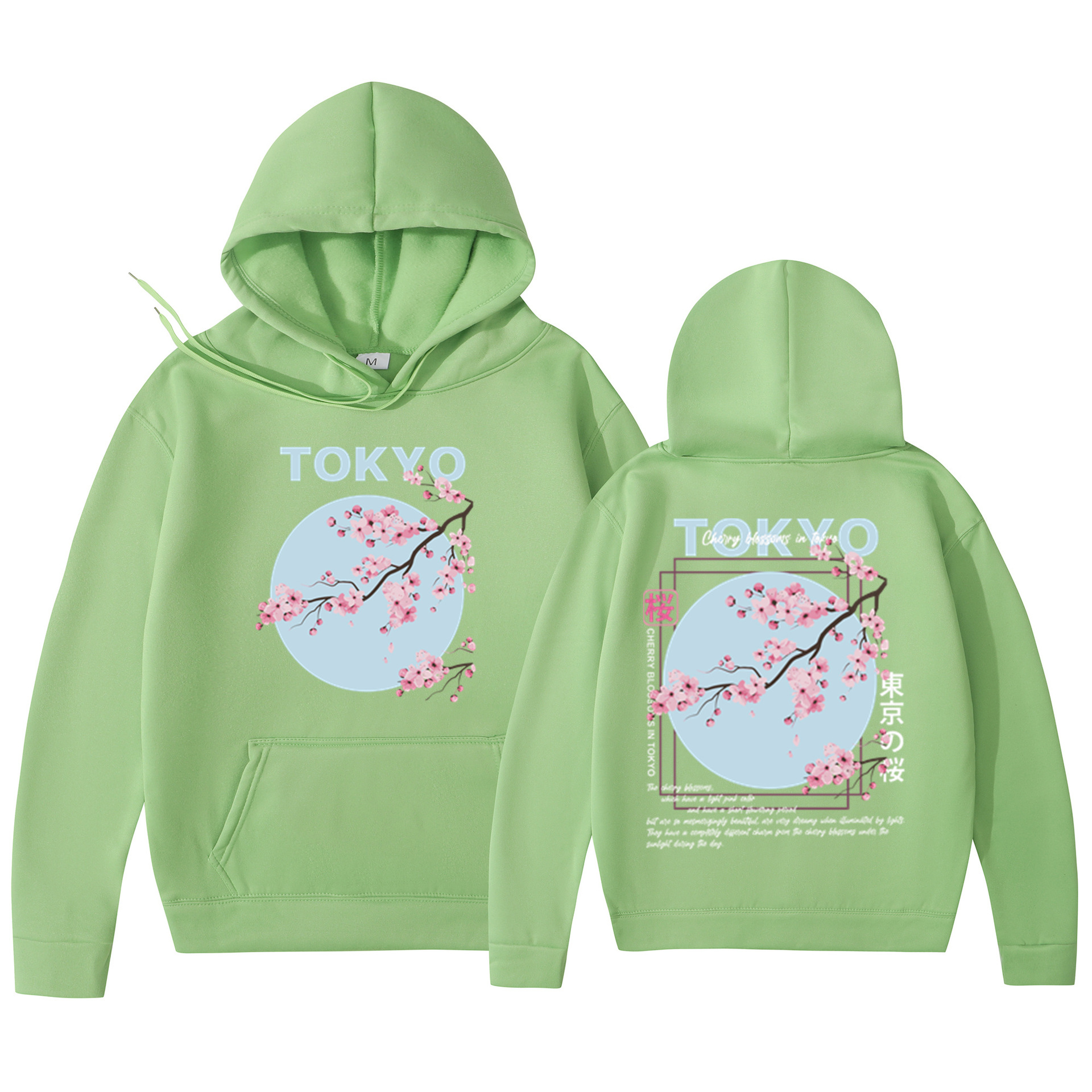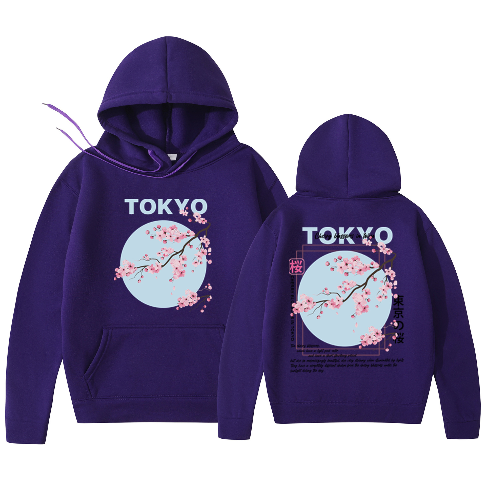 Мужская толстовка с принтом вишневого цвета в японском стиле, толстовка с капюшоном, повседневная толстовка из полиэстера, трикотажная ткань, пуловер, стандартная посадка