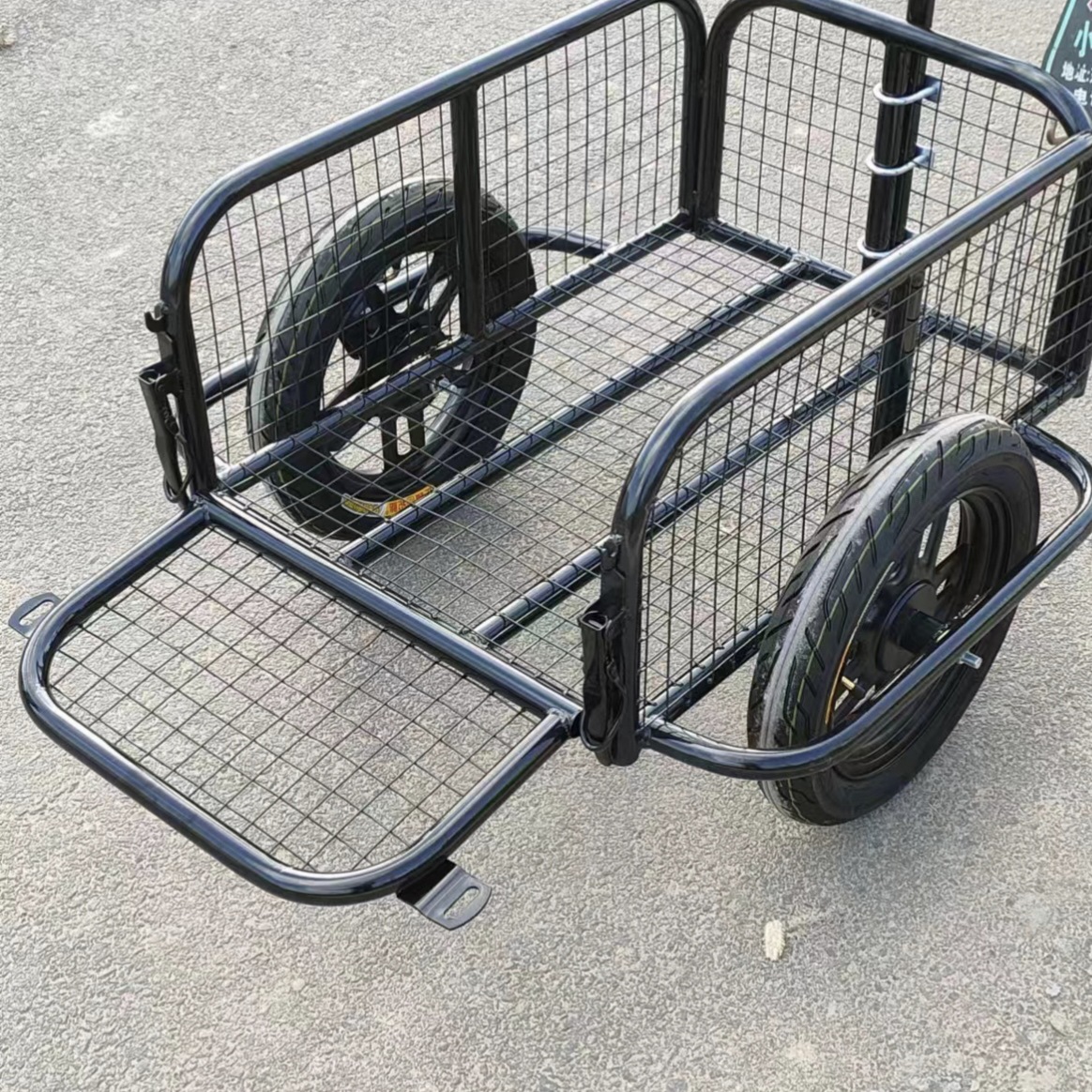 Новый электрический мотоциклетный велосипед с задним маленьким прицепом для кемпинга и рыбалки, трехколесный.