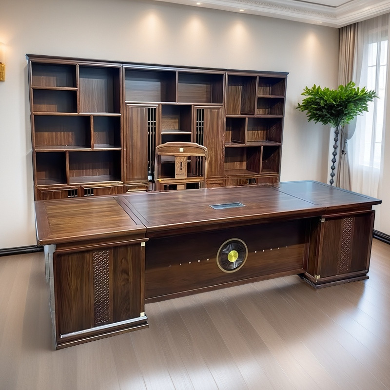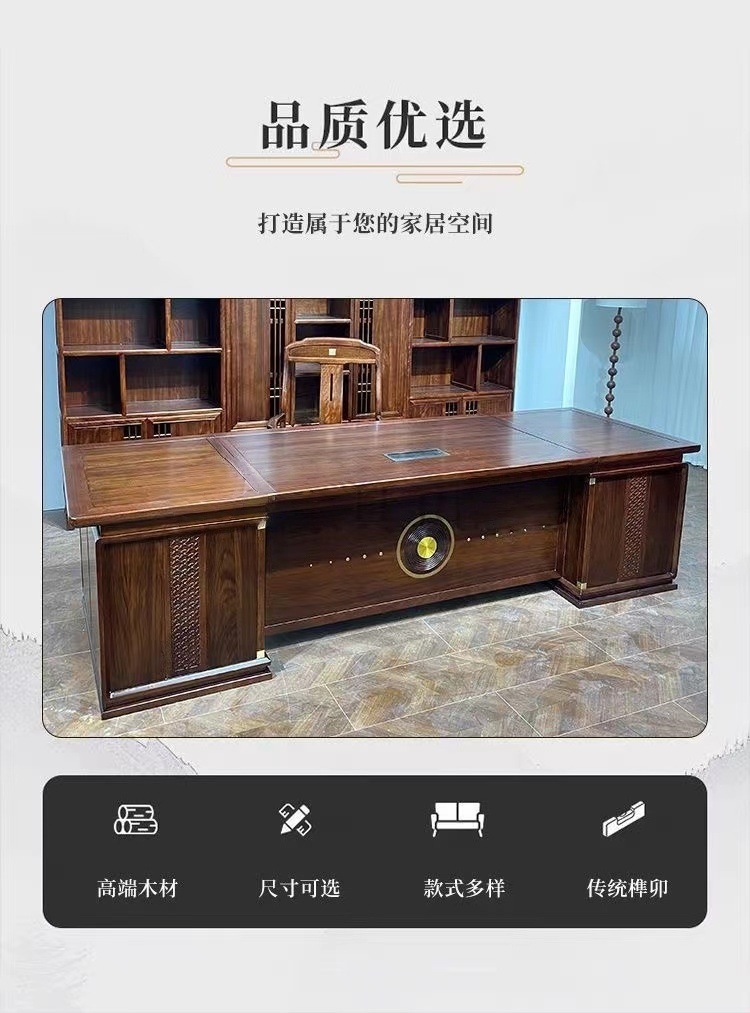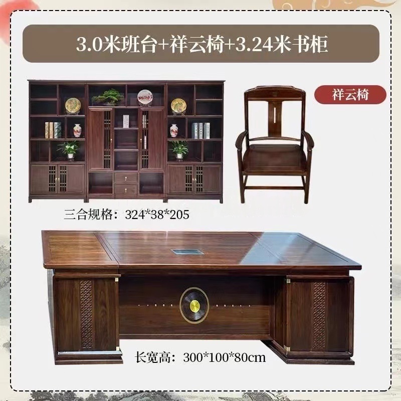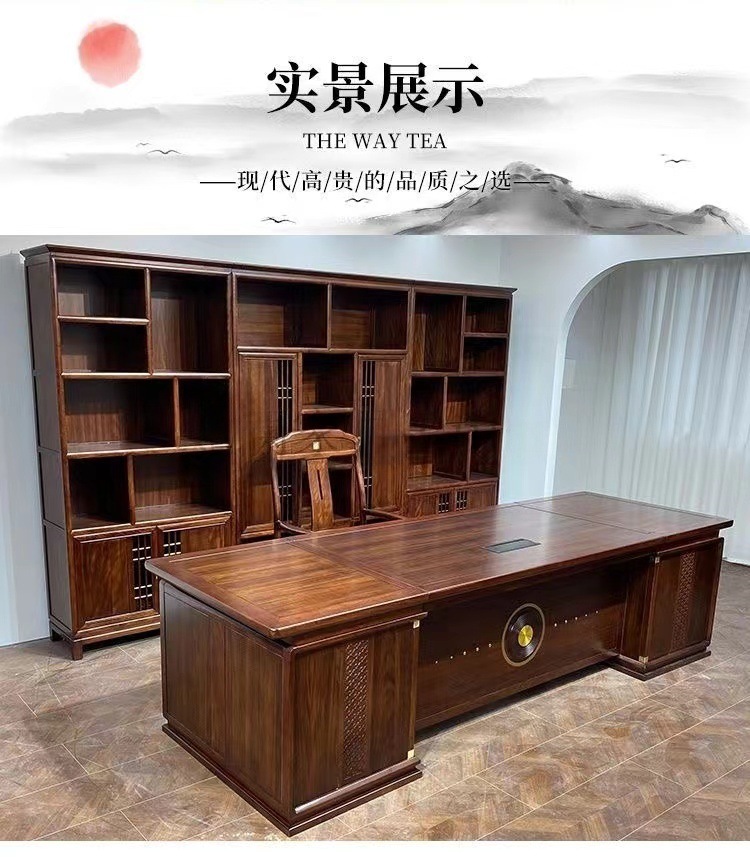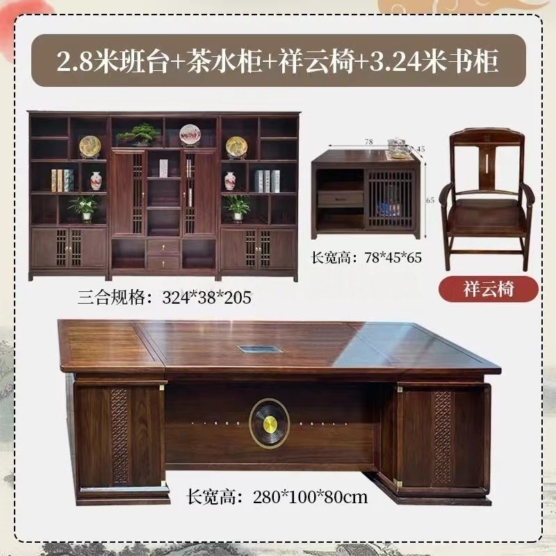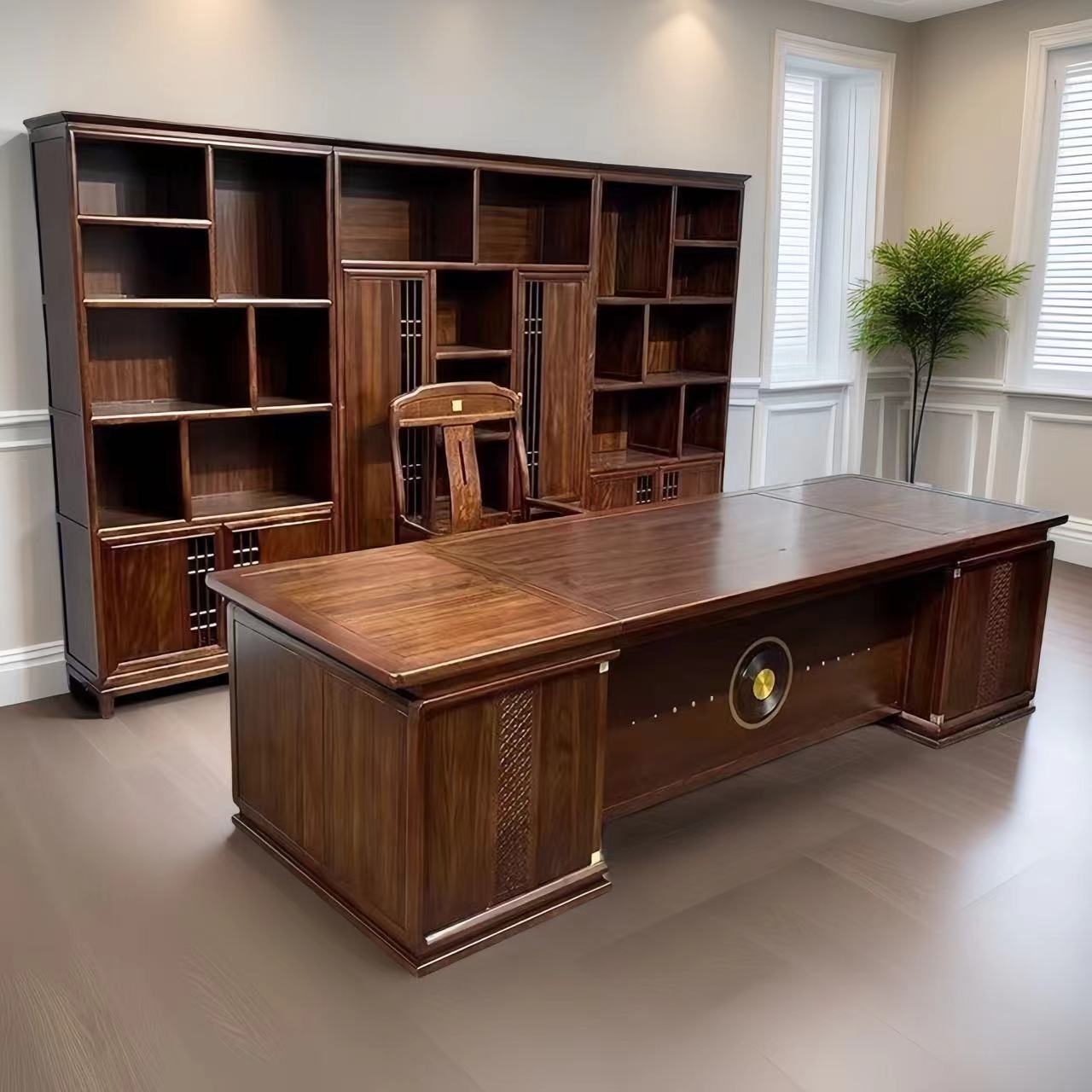 Новый офисный стол в китайском стиле, стол босса, стол руководителя из цельного дерева, комбинация высококачественной офисной мебели из черного дерева