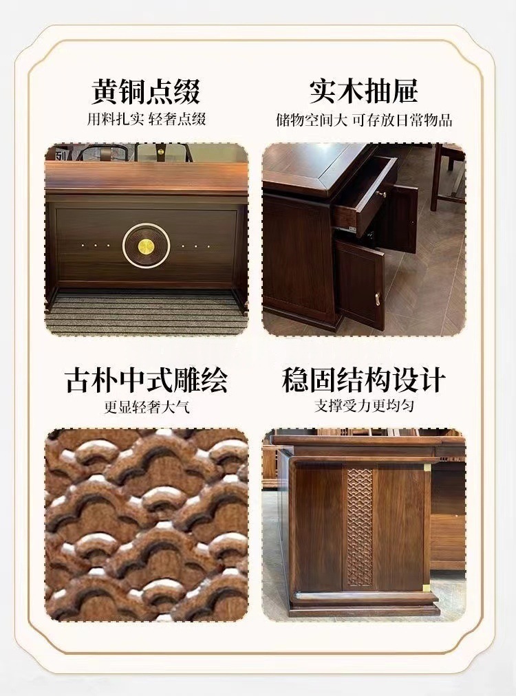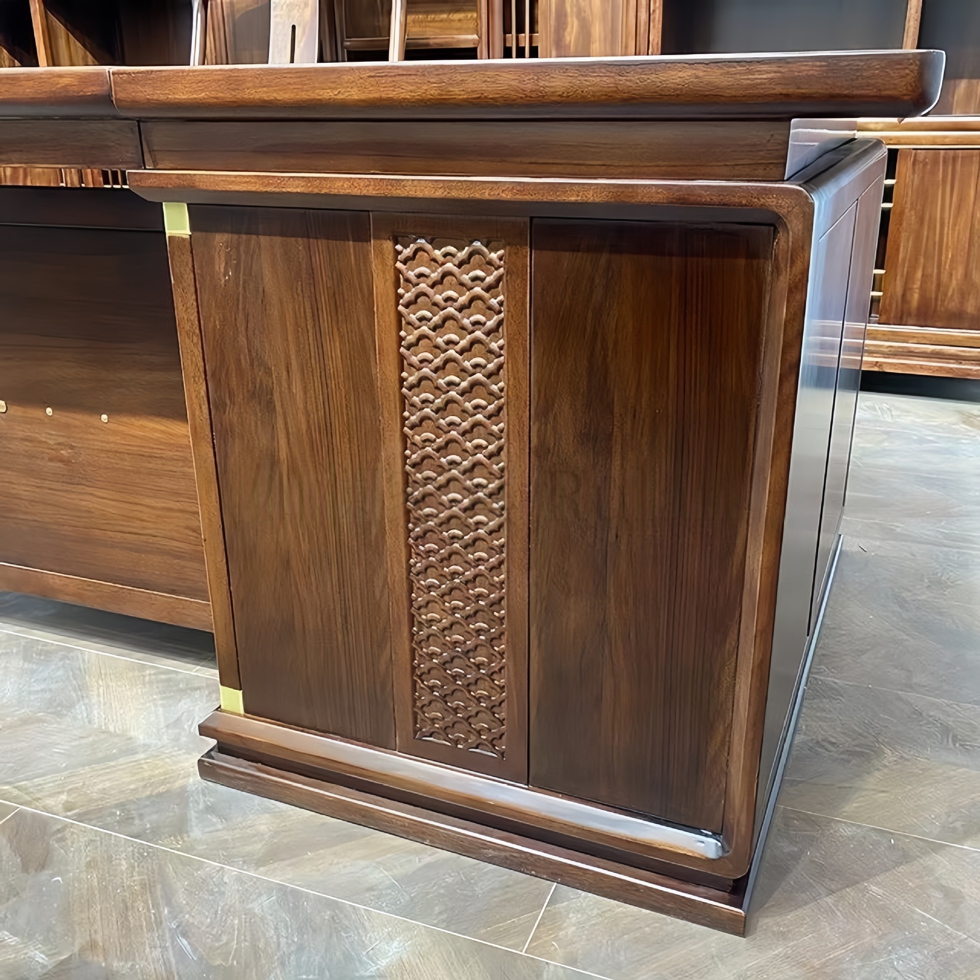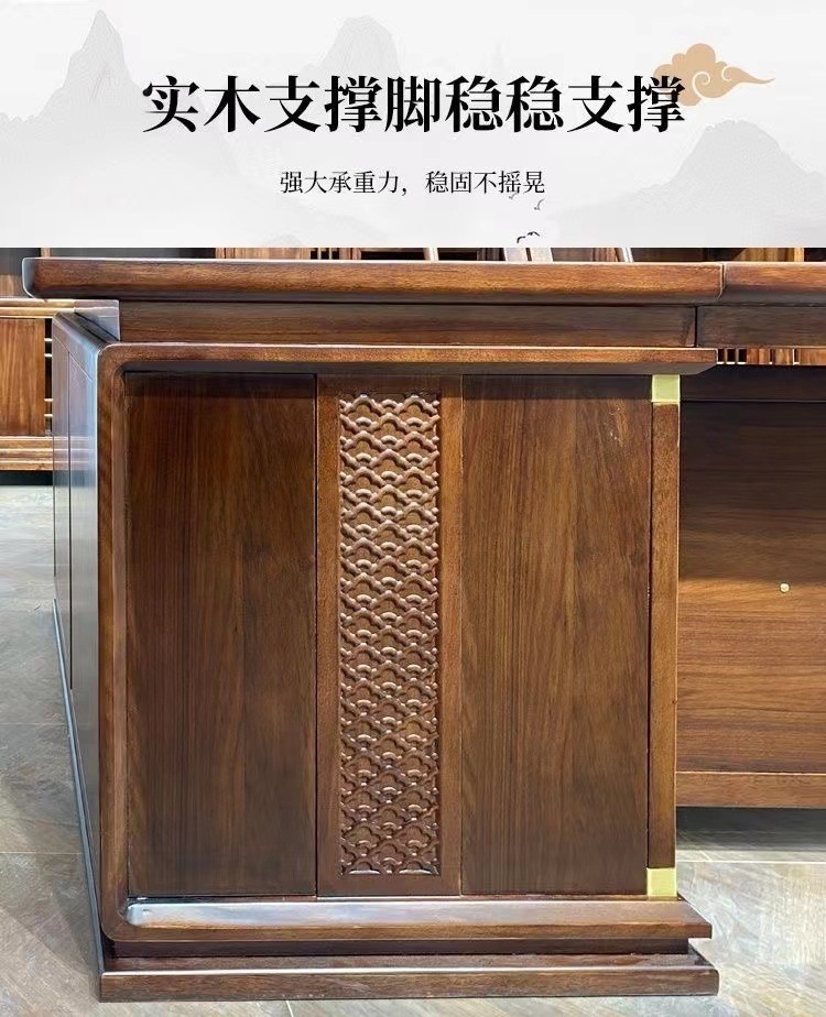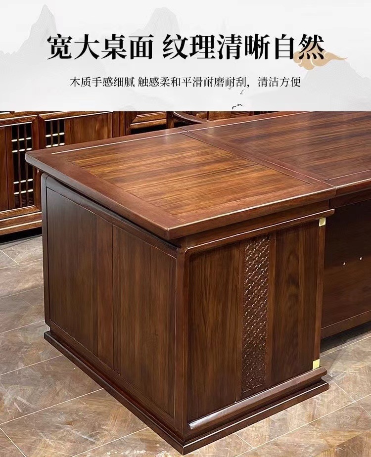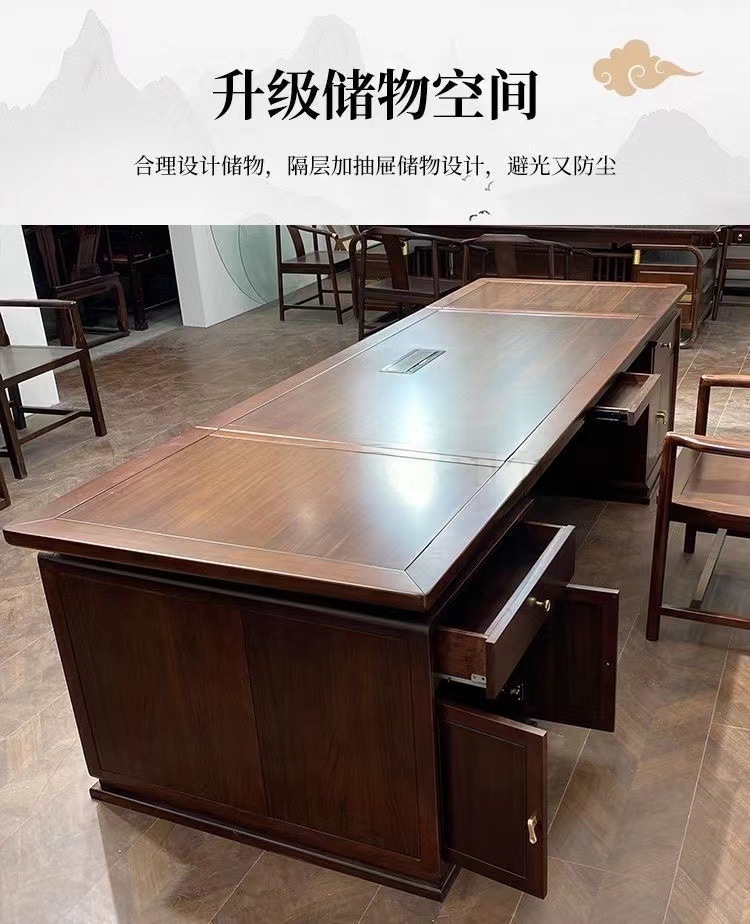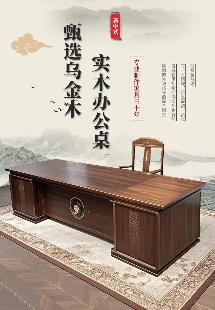 Новый офисный стол в китайском стиле, стол босса, стол руководителя из цельного дерева, комбинация высококачественной офисной мебели из черного дерева