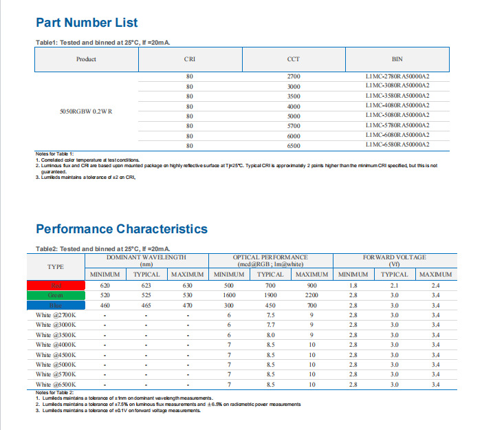 LUMILDES5050RGBW,0.2W/0.5W/2W