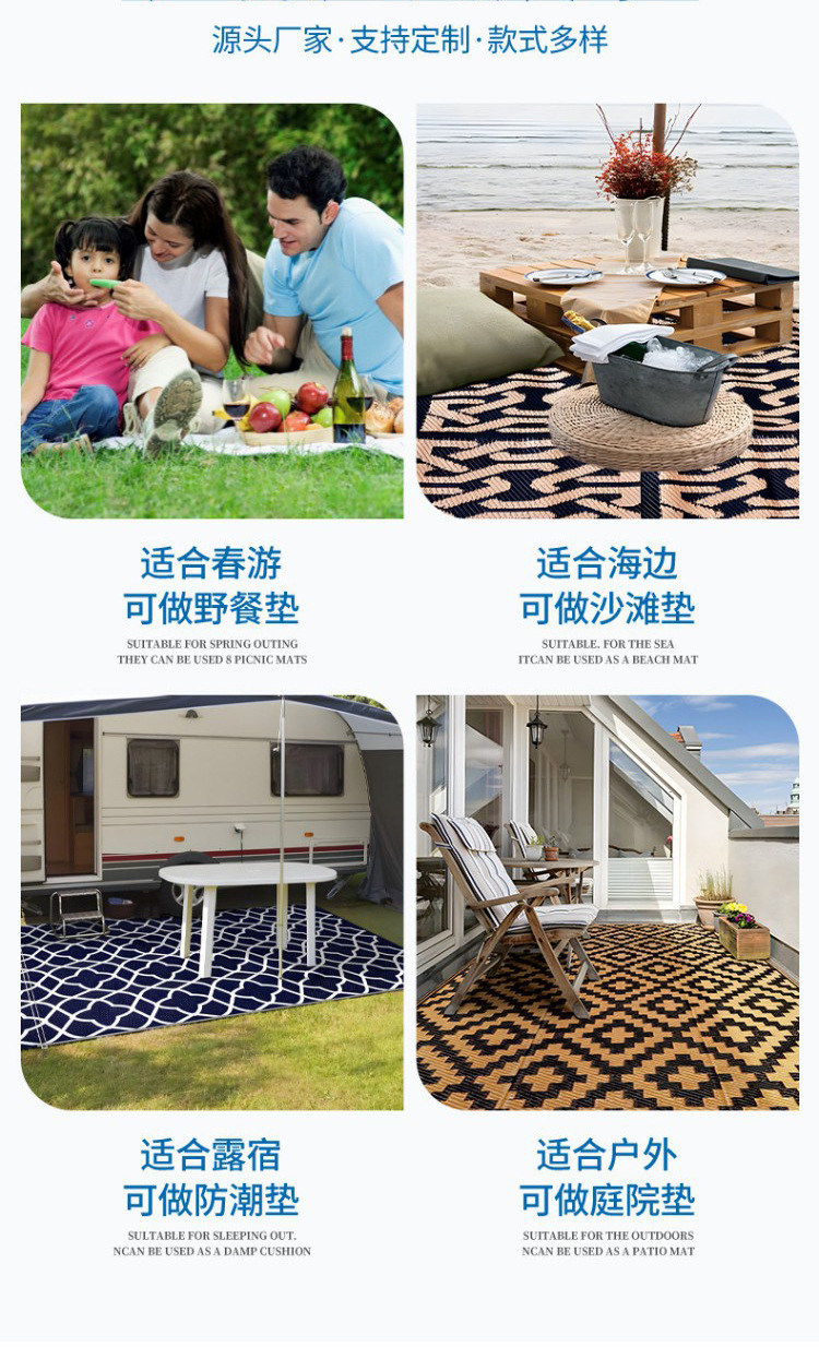 Кемпинговый коврик из полипропилена, индивидуальный уличный ковер, тканый пластиковый коврик для пляжного отдыха, утолщенный влагостойкий складной коврик для пикника, трансграничный
