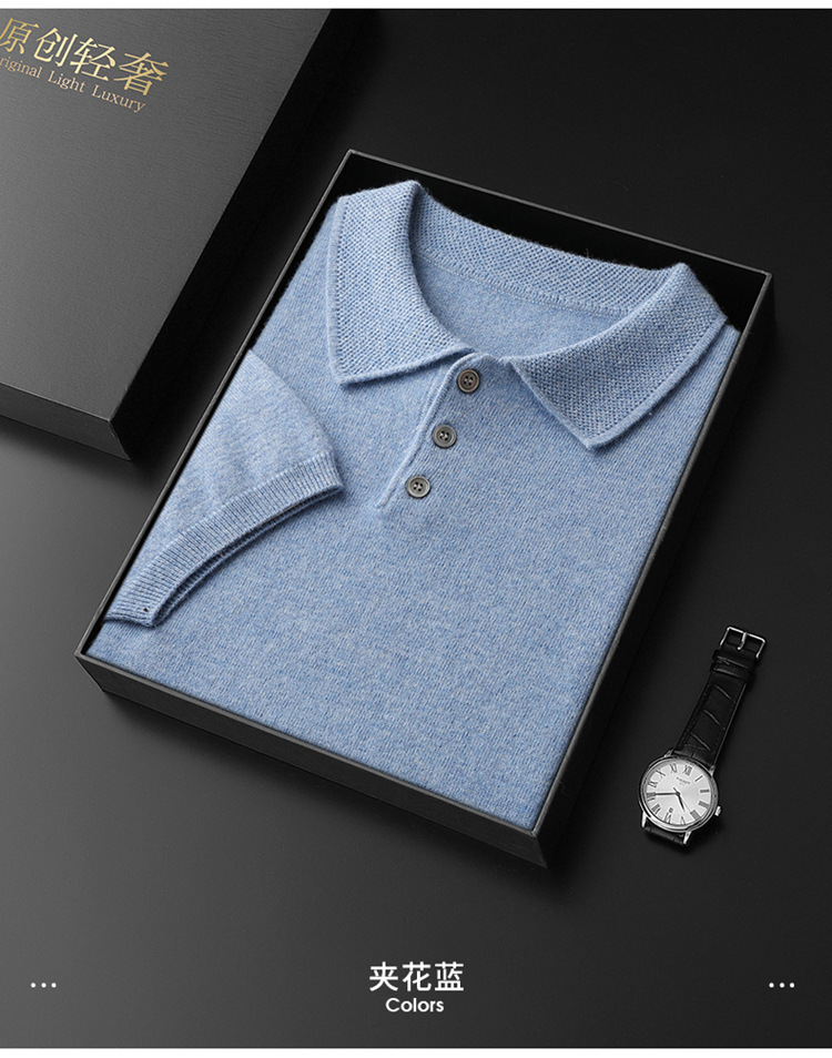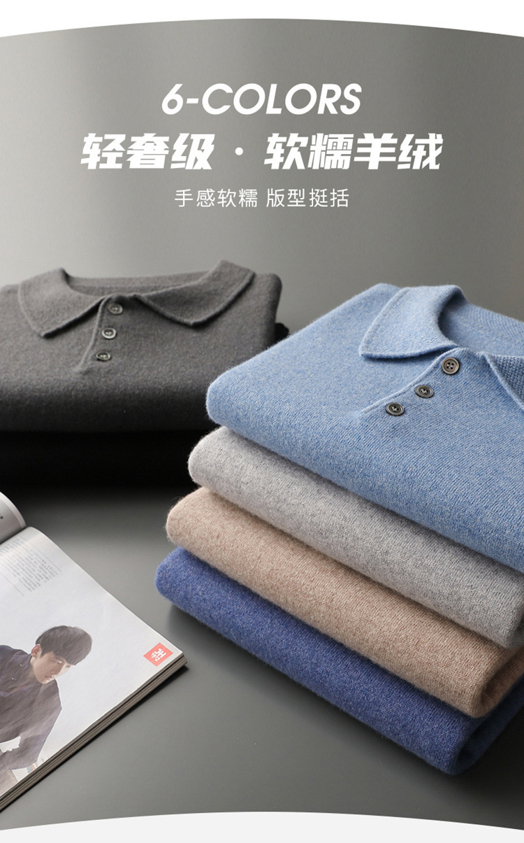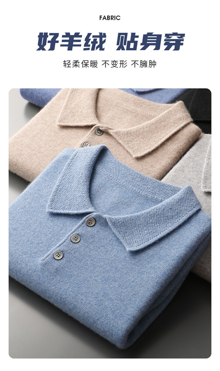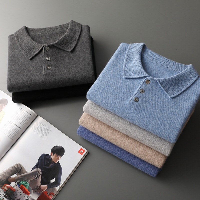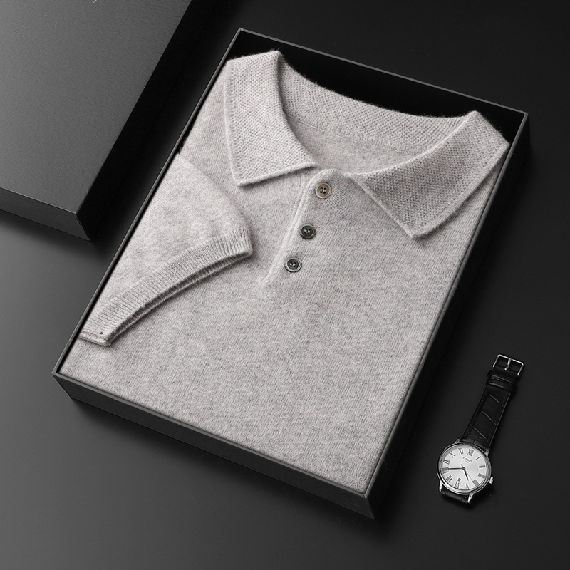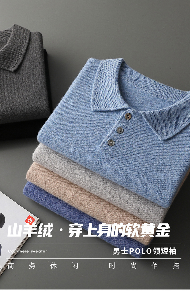 2025 новый большой размер кашемировый свитер с коротким рукавом, шерсть, однотонный, базовый, осенне-зимний свитер с воротником-поло, мужской вязаный