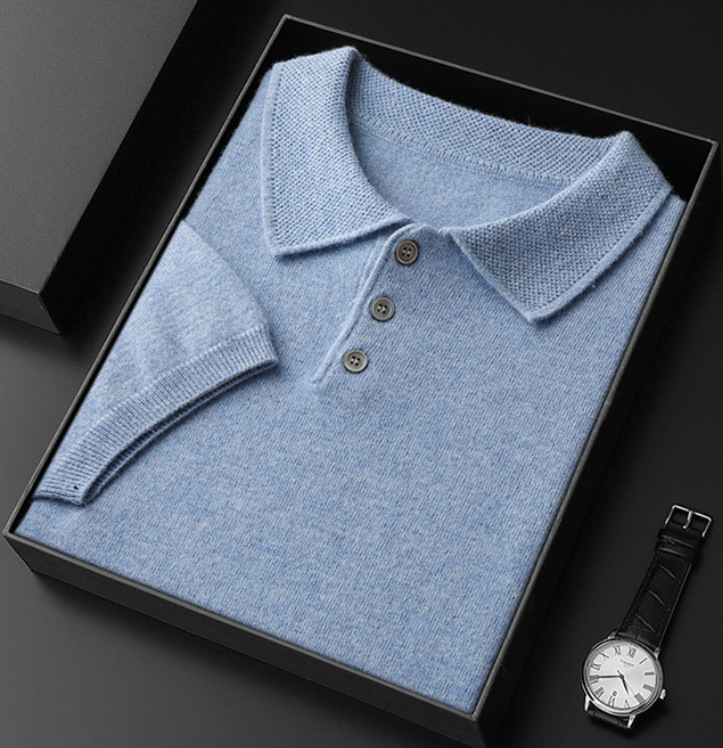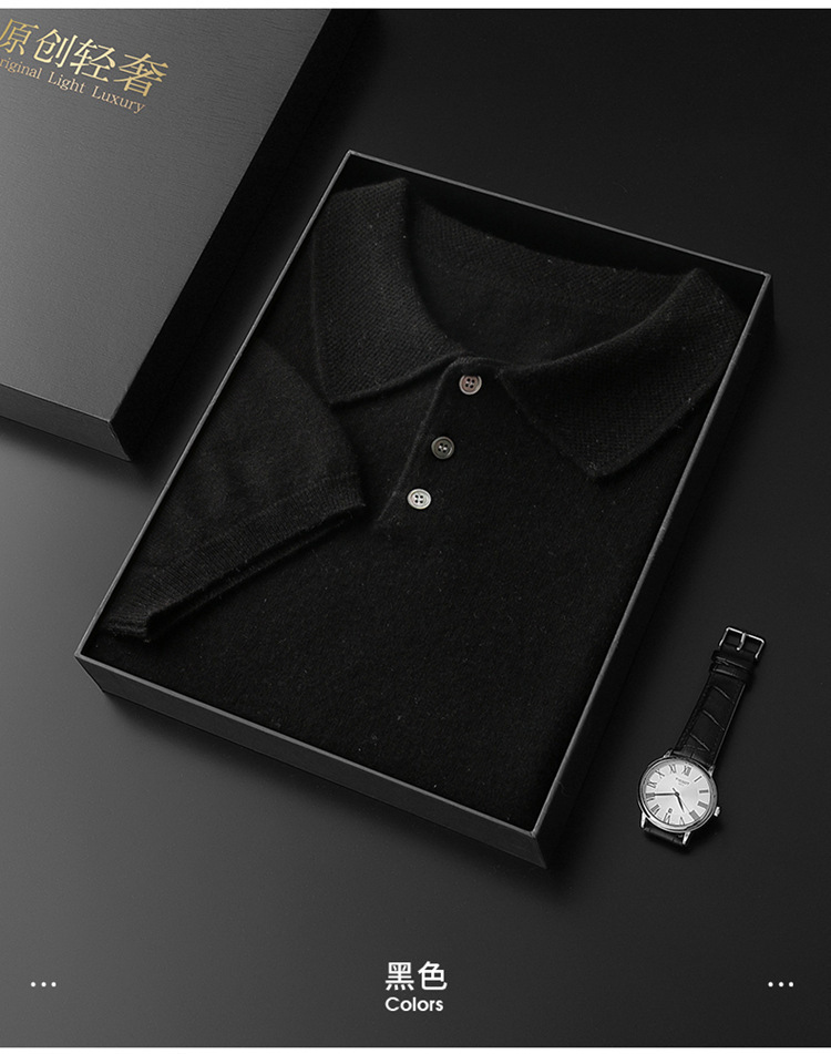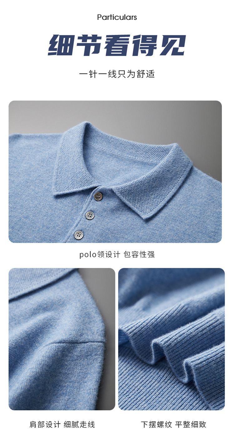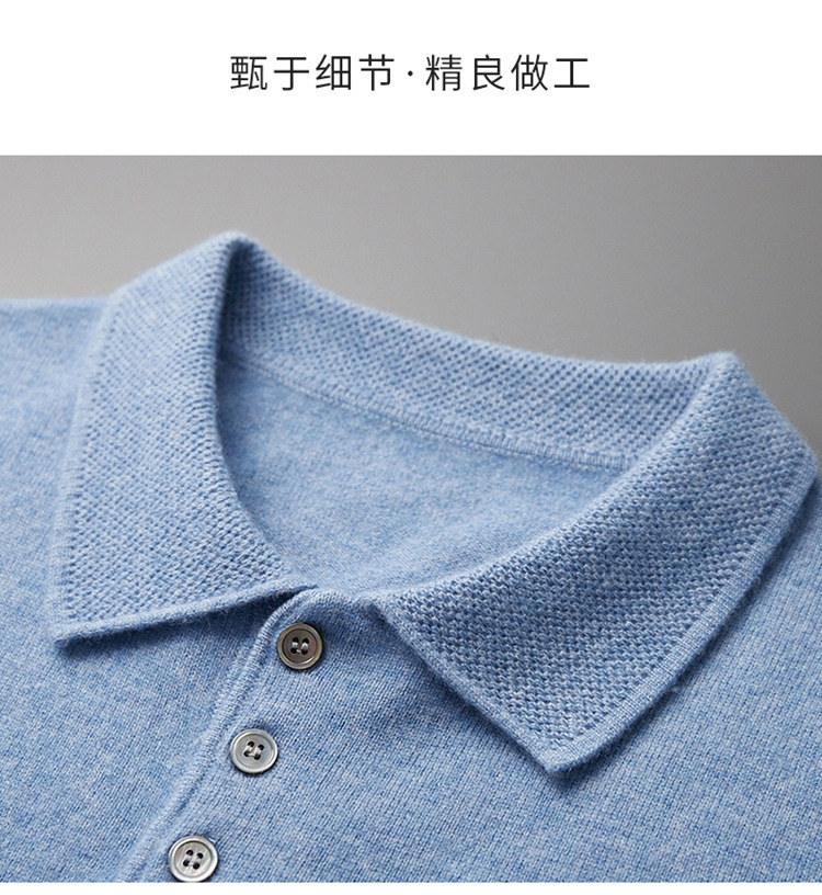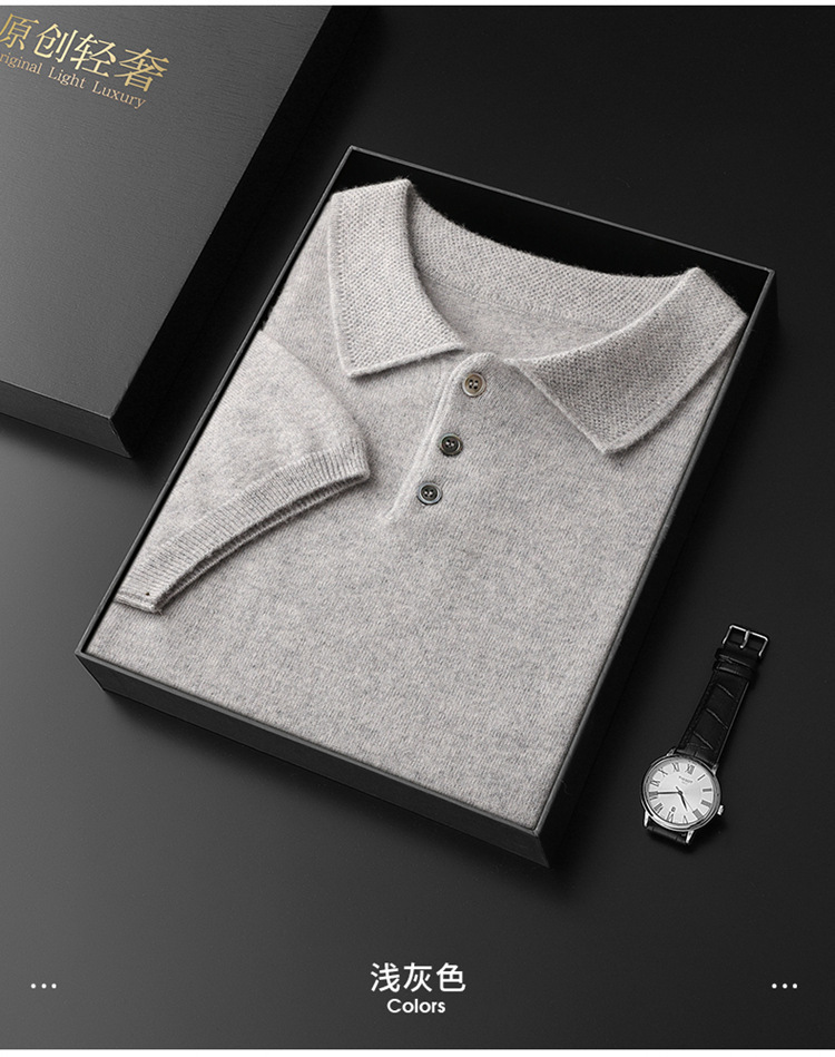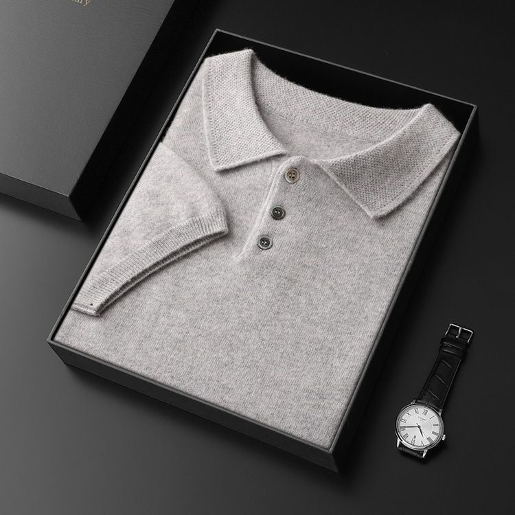 2025 новый большой размер кашемировый свитер с коротким рукавом, шерсть, однотонный, базовый, осенне-зимний свитер с воротником-поло, мужской вязаный