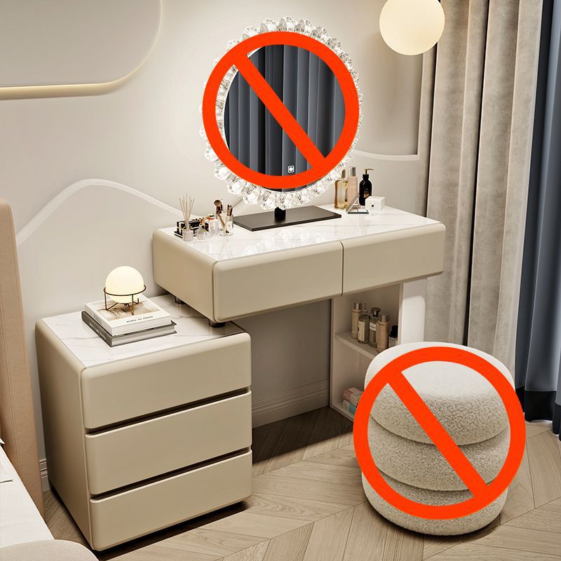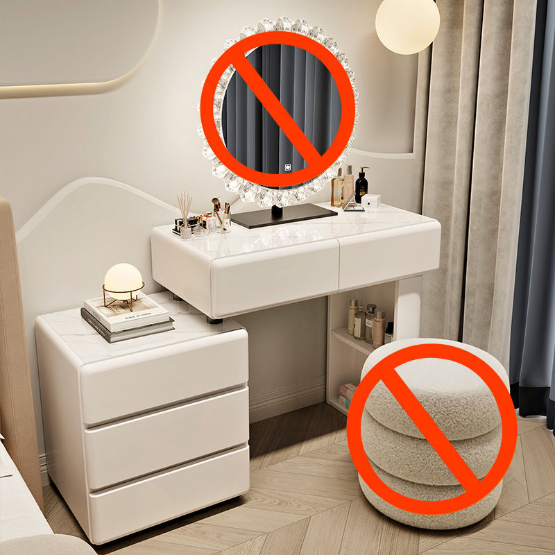 Трюмо-шкаф для спальни 2025 года, новый стиль, современный, простой, из массива дерева, с интегрированной тумбочкой, для маленькой квартиры, кремового цвета.