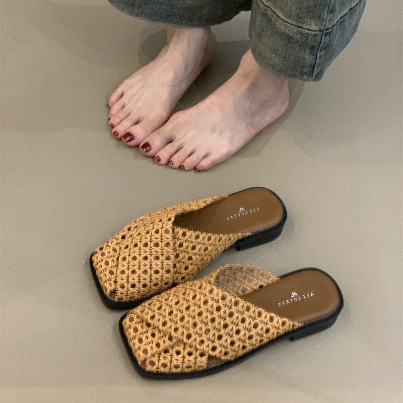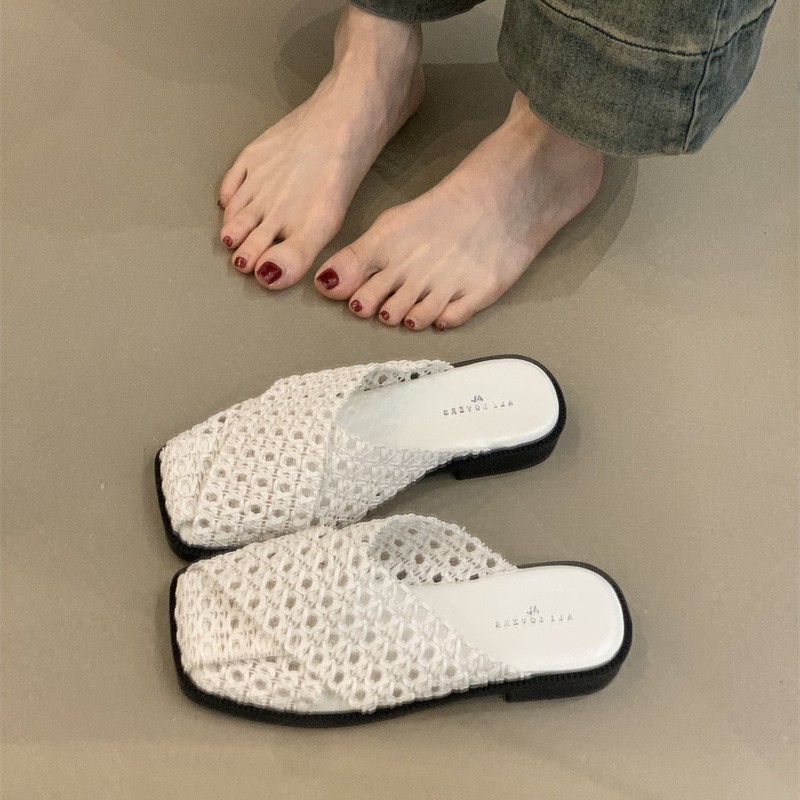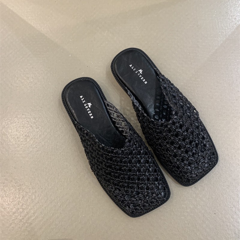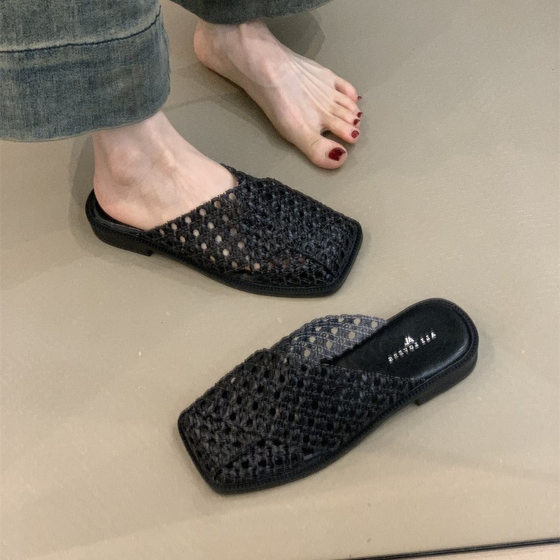 Дизайнерские мюли-тапочки 2025 года, новые французские нежные плетеные дышащие мюли на шнуровке.