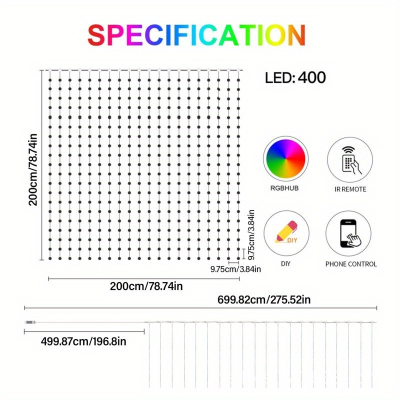 2025 новых трансграничных 1 программируемого источника питания, цветной светодиодный занавес, размер 78.74inch
