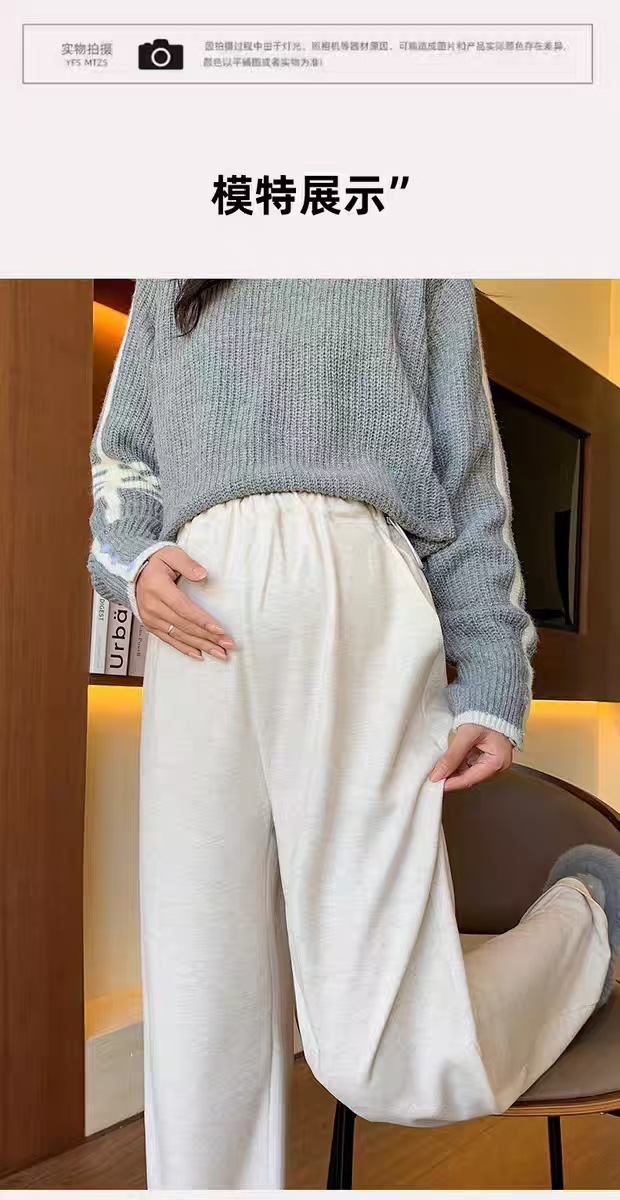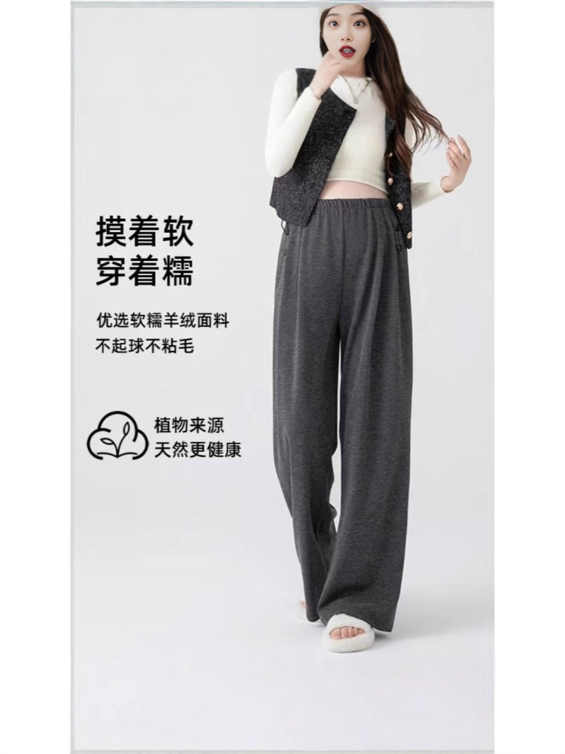 Брюки для беременных на весну, осень и зиму, свободного кроя с флисовой подкладкой, утолщенные широкие повседневные брюки для беременных, трансграничные в Юго-Восточной Азии.