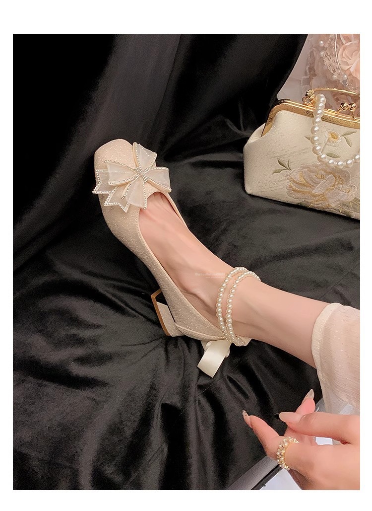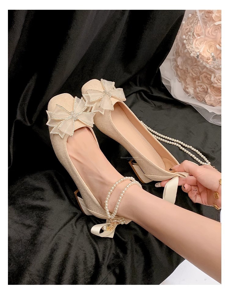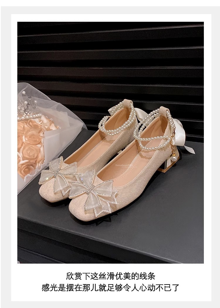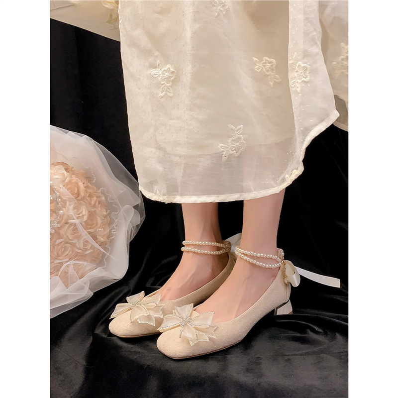 Женские туфли Мэри Джейн на массивном каблуке с бисером, лето 2025, фееричный стиль, квадратный носок, элегантные свадебные туфли