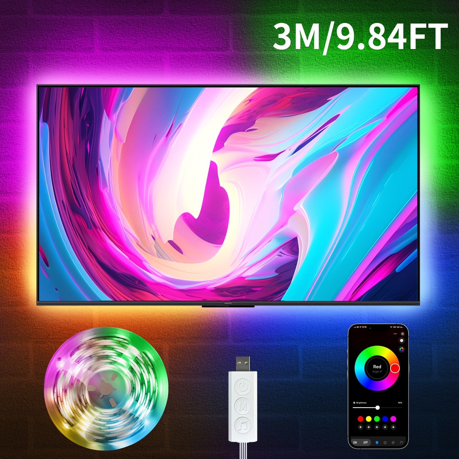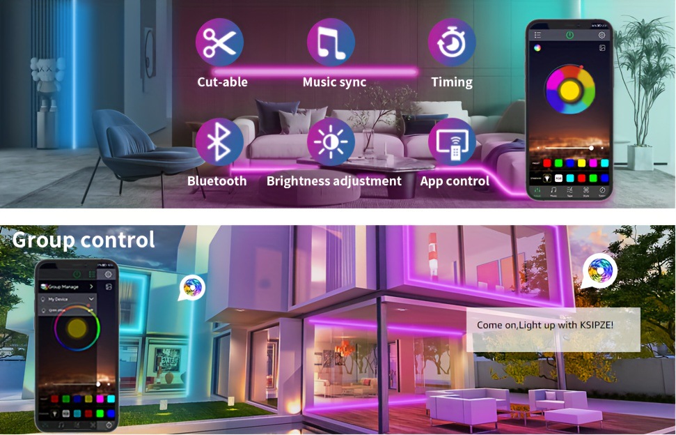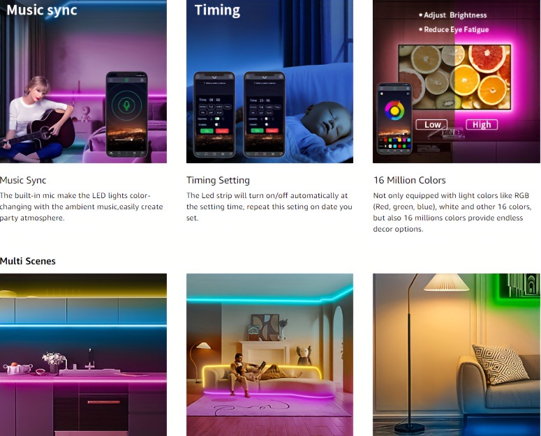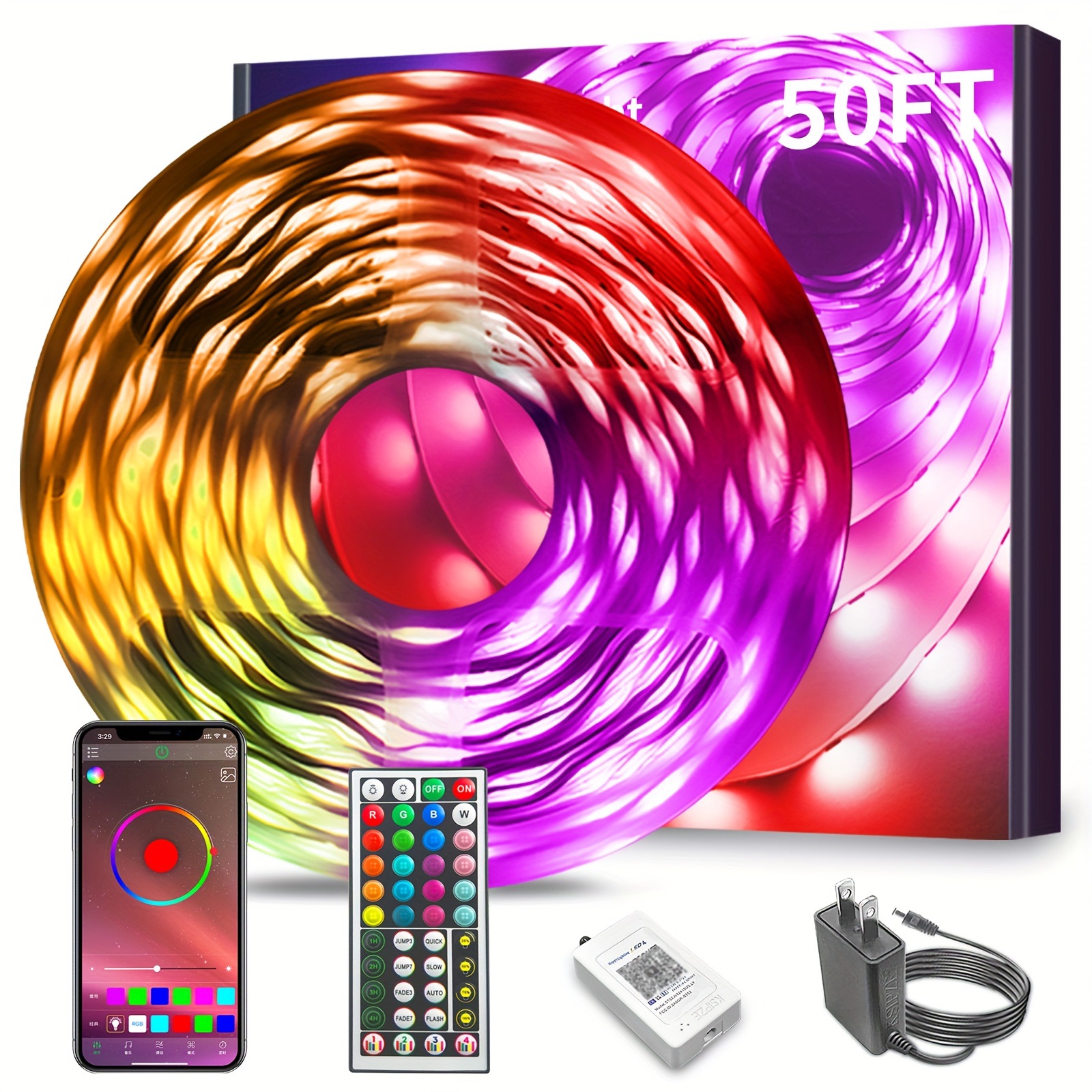 2025 новых кросс-бордерных светодиодных лент RGB длиной 200 футов, 100 футов и 50 футов с синхронизацией музыки и изменением цвета