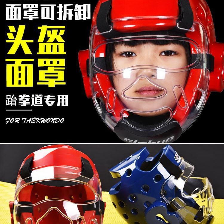Заводской шлем для тхэквондо, маска, защитное снаряжение, съемная защита головы, детская практичная защита лица, прозрачная санда