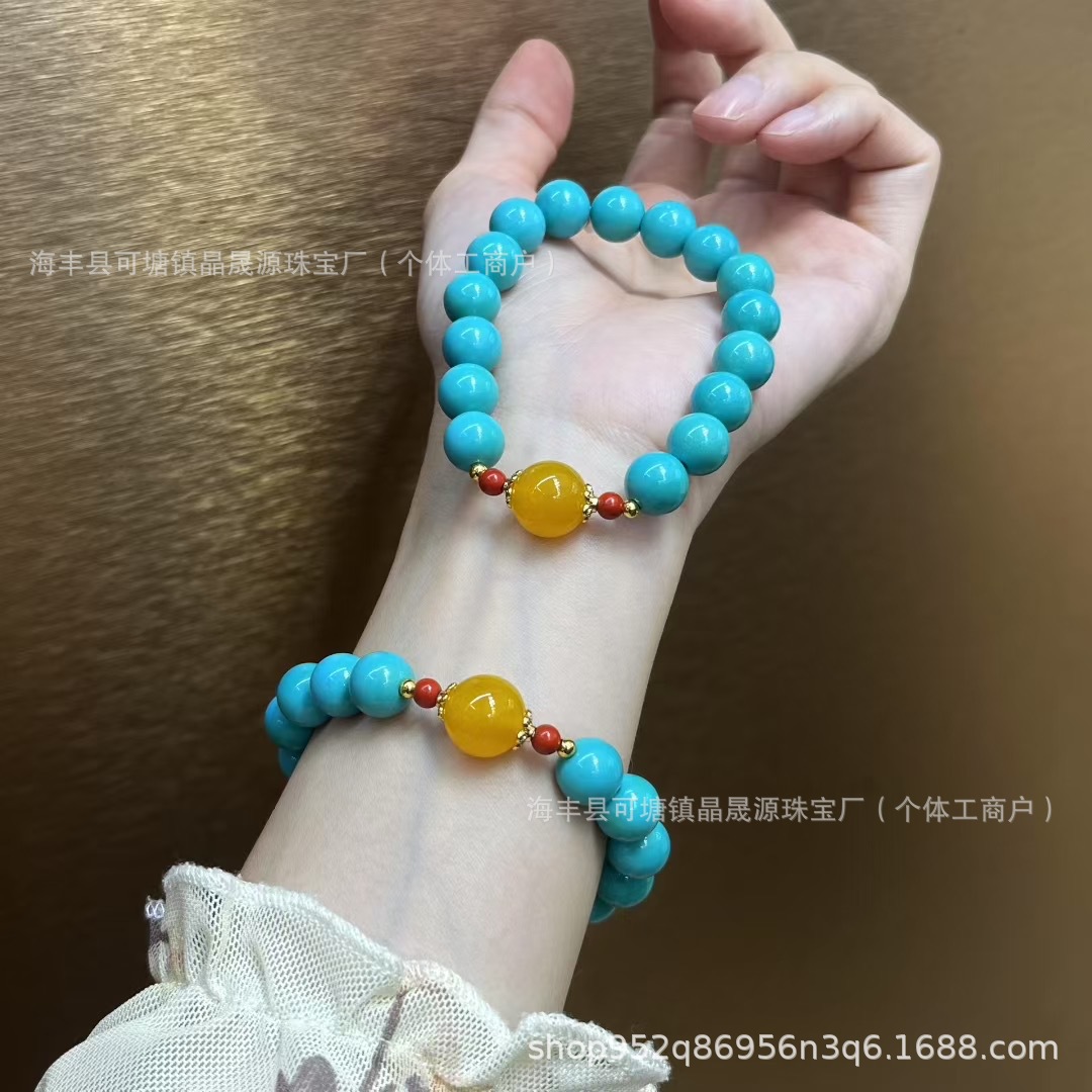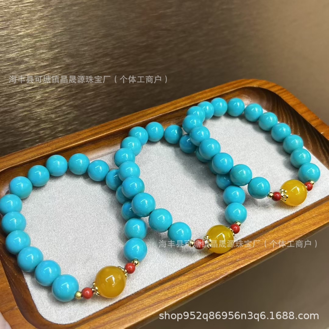 Браслет из агата с имитацией бирюзы и желтым агатом, браслет из одной бусины, высокий фарфоровый мужской и женский простой производитель, модель благосостояния в прямом эфире