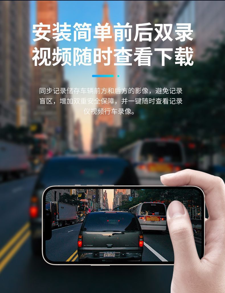 2025新款无线行车记录仪免安装前后双镜头循环录像倒车影像夜视