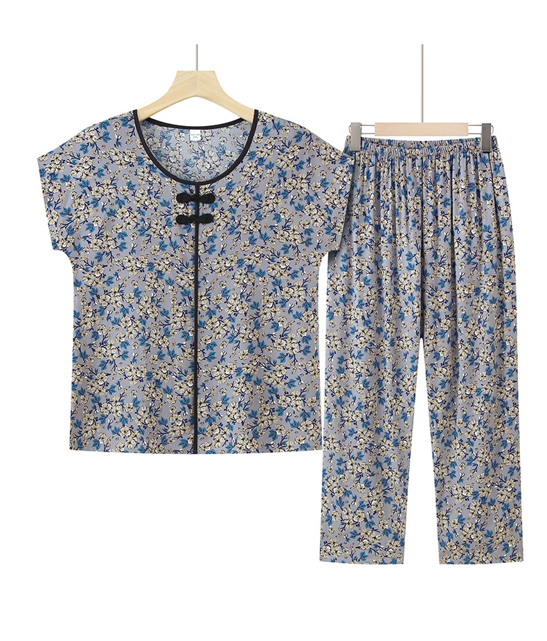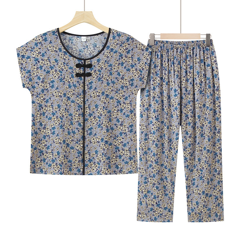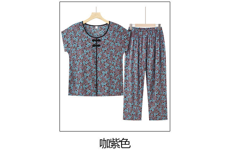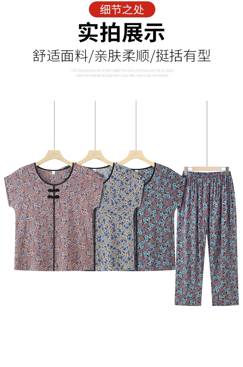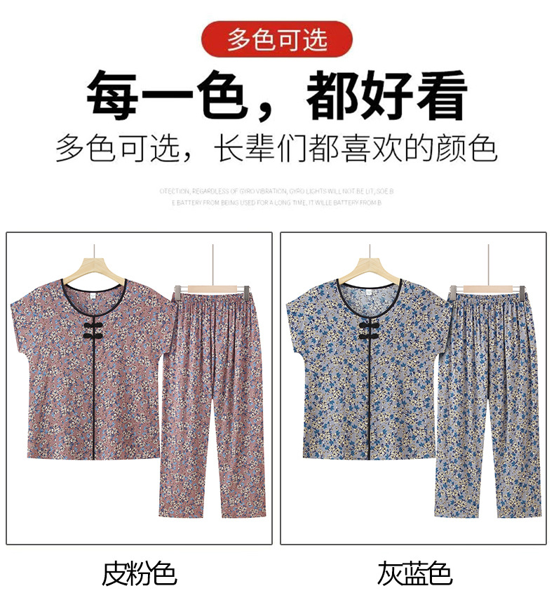 夏装套装奶奶七分裤睡衣妈妈薄款绵绸家居服中老年女老太太两件套