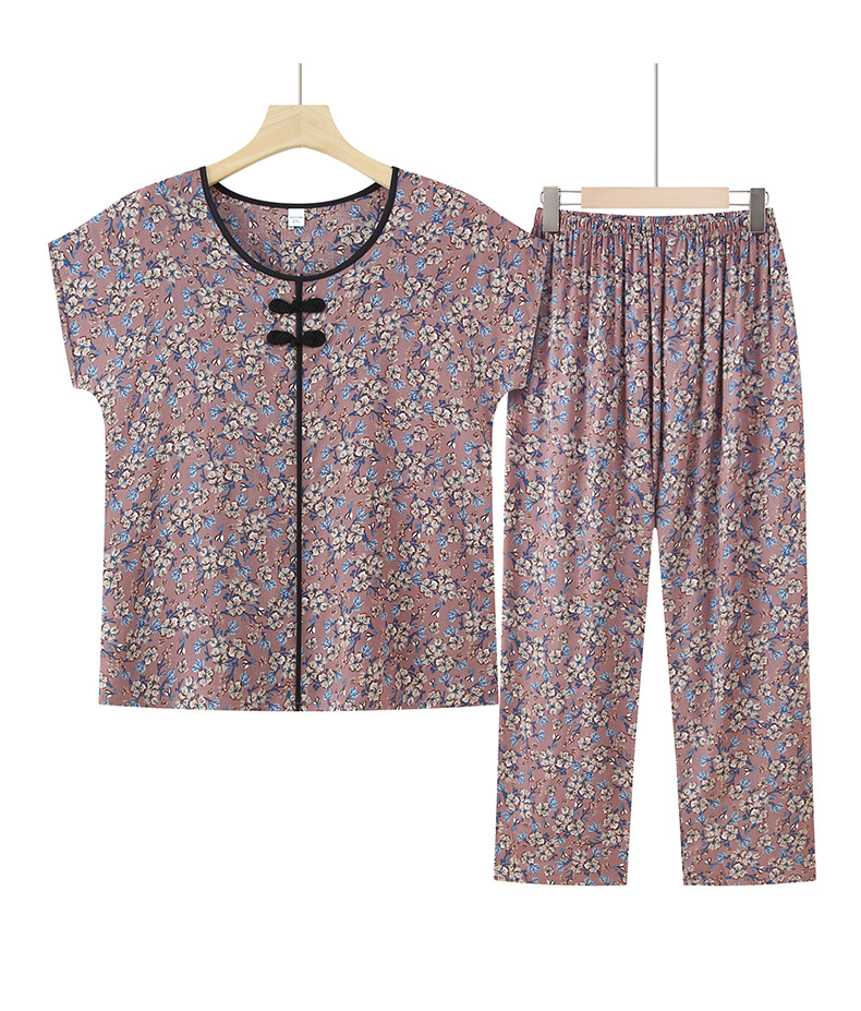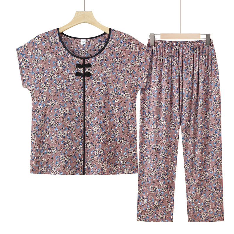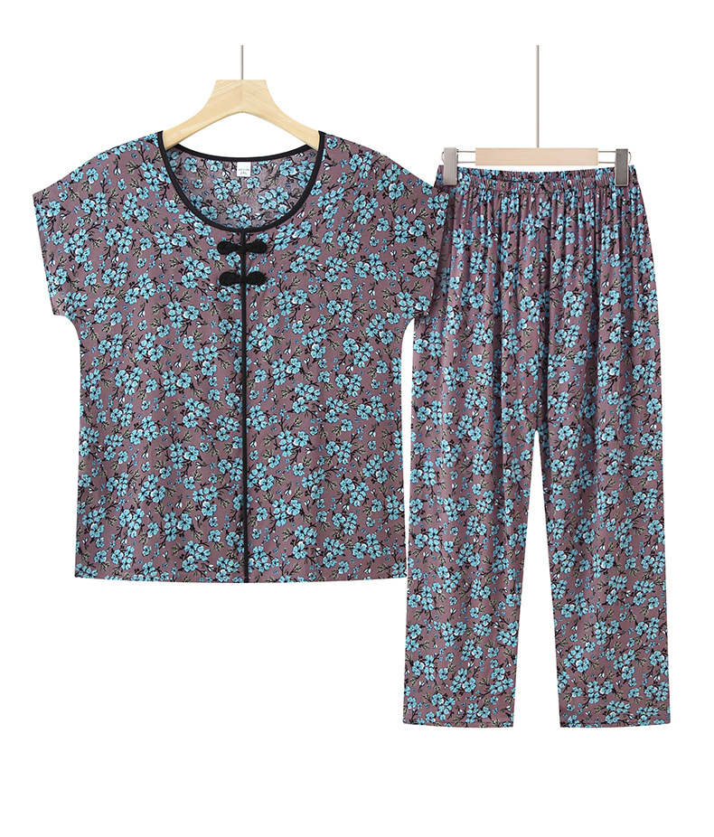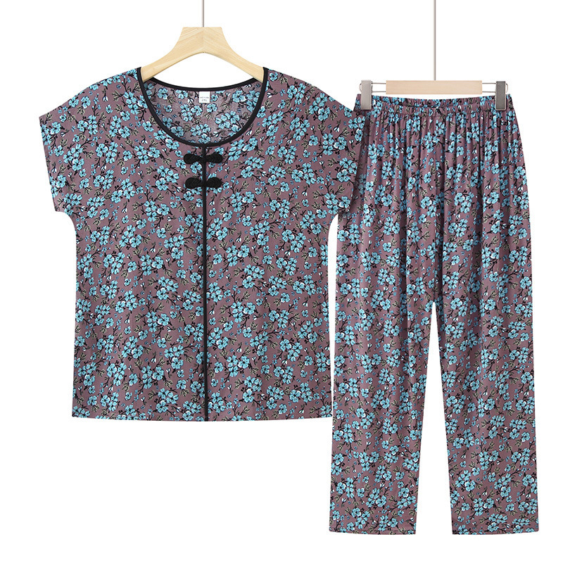夏装套装奶奶七分裤睡衣妈妈薄款绵绸家居服中老年女老太太两件套